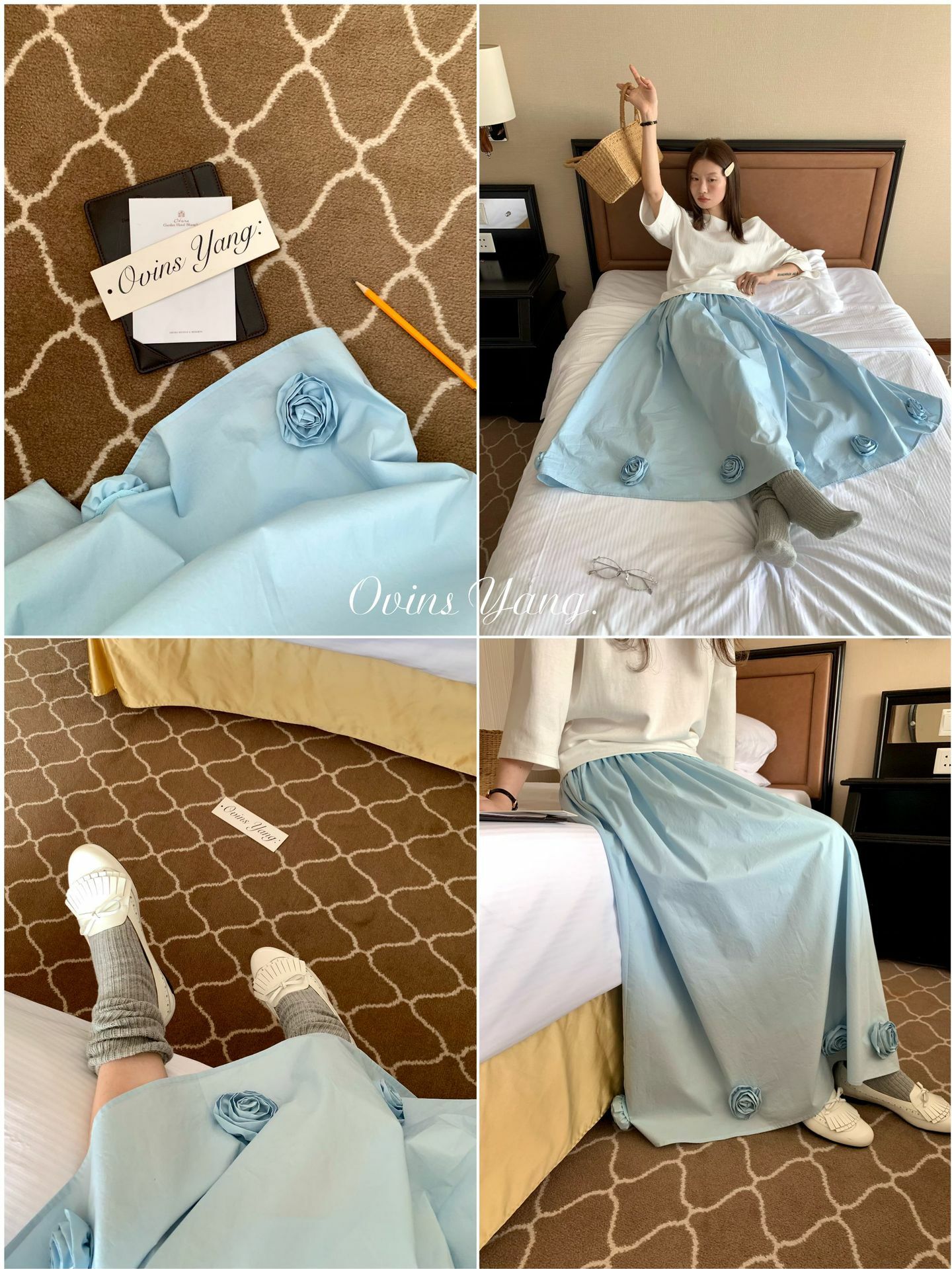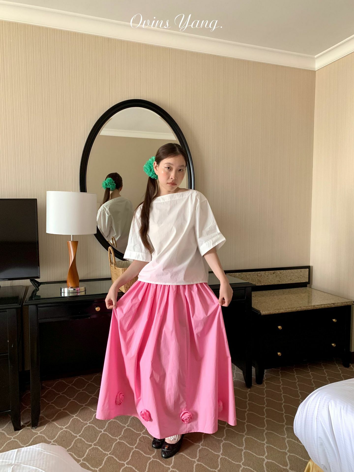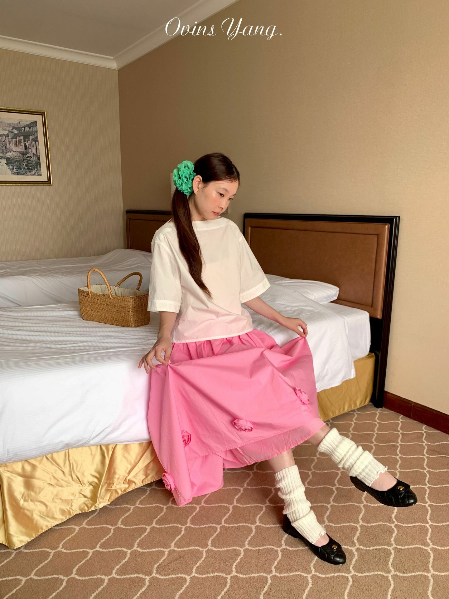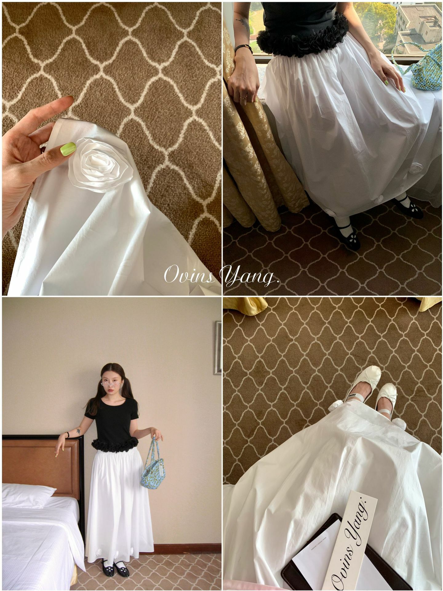 *o-ha-you*【FOY100879】玫瑰花半身裙設計感小眾甜美少女風穿搭中長百褶裙-3色