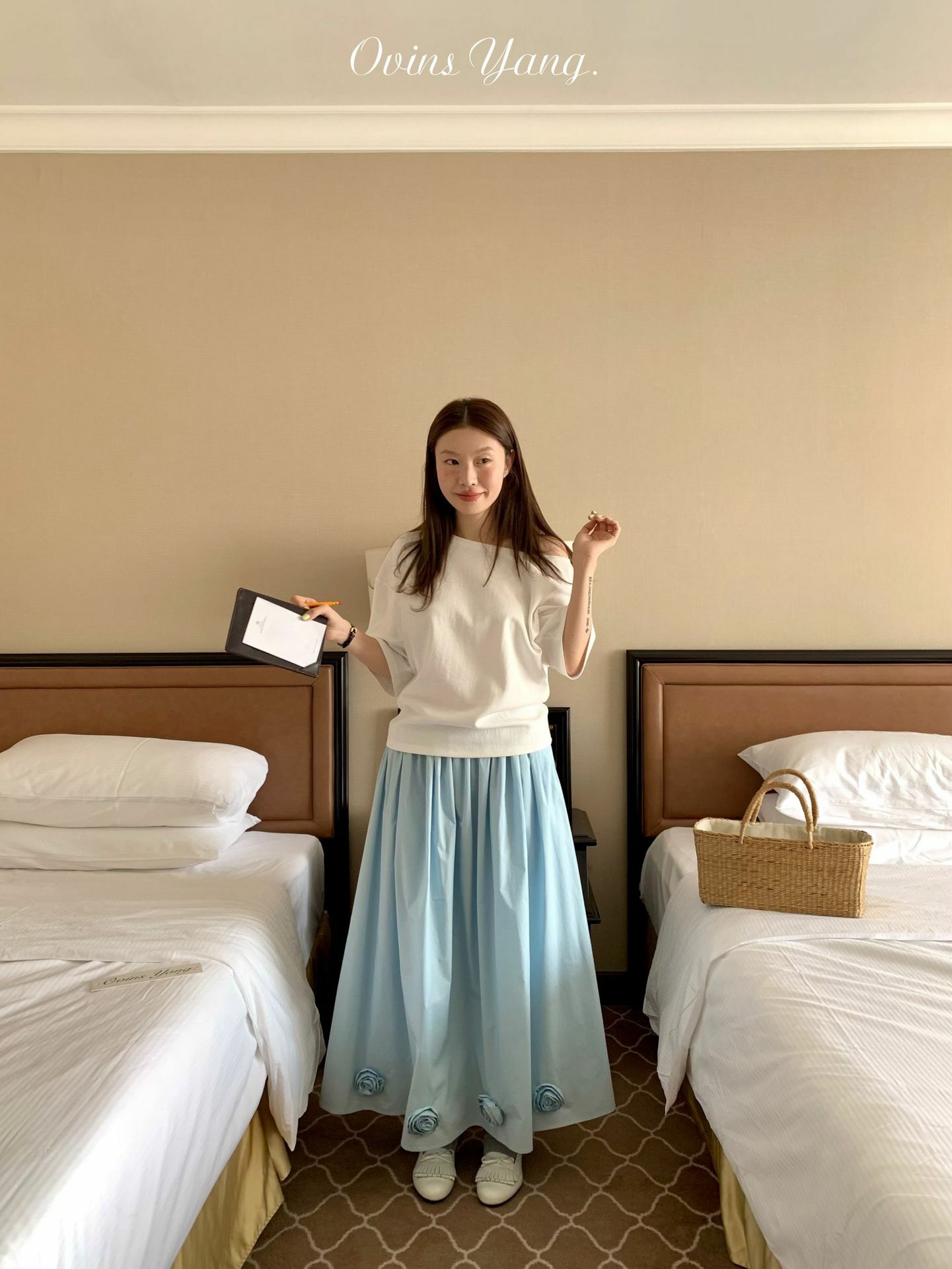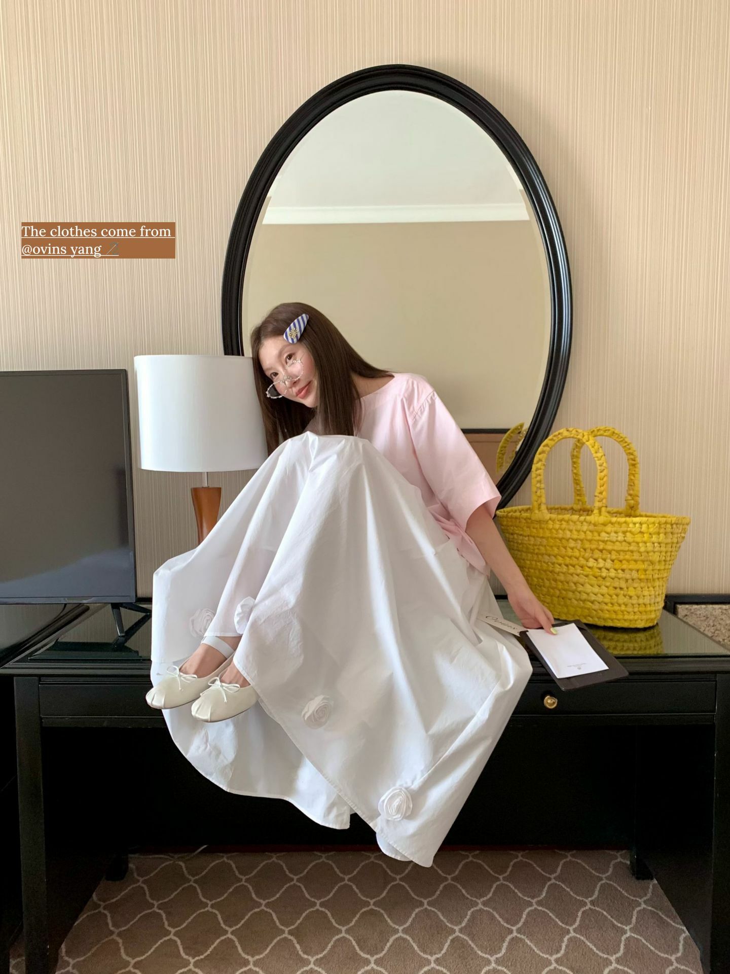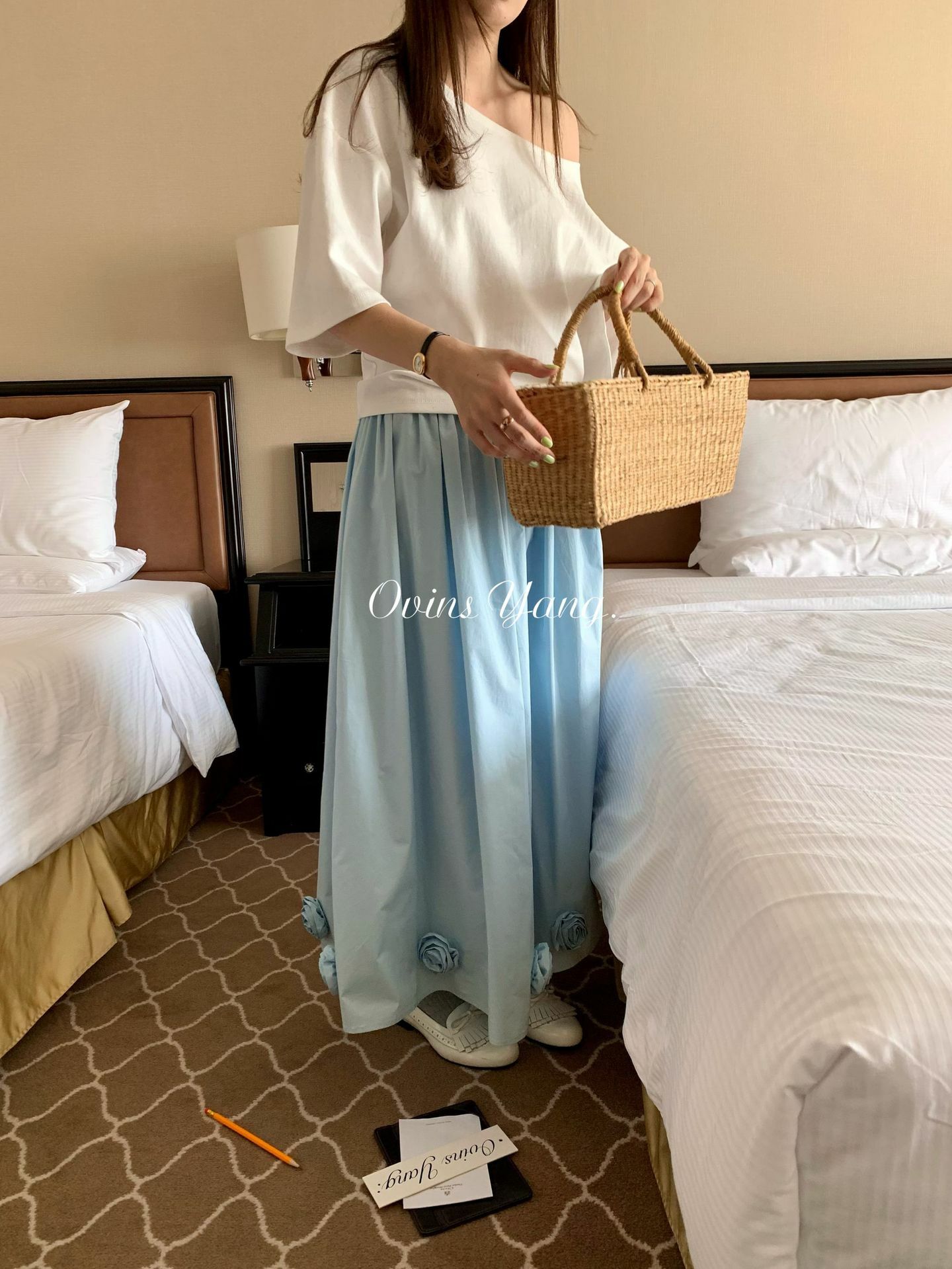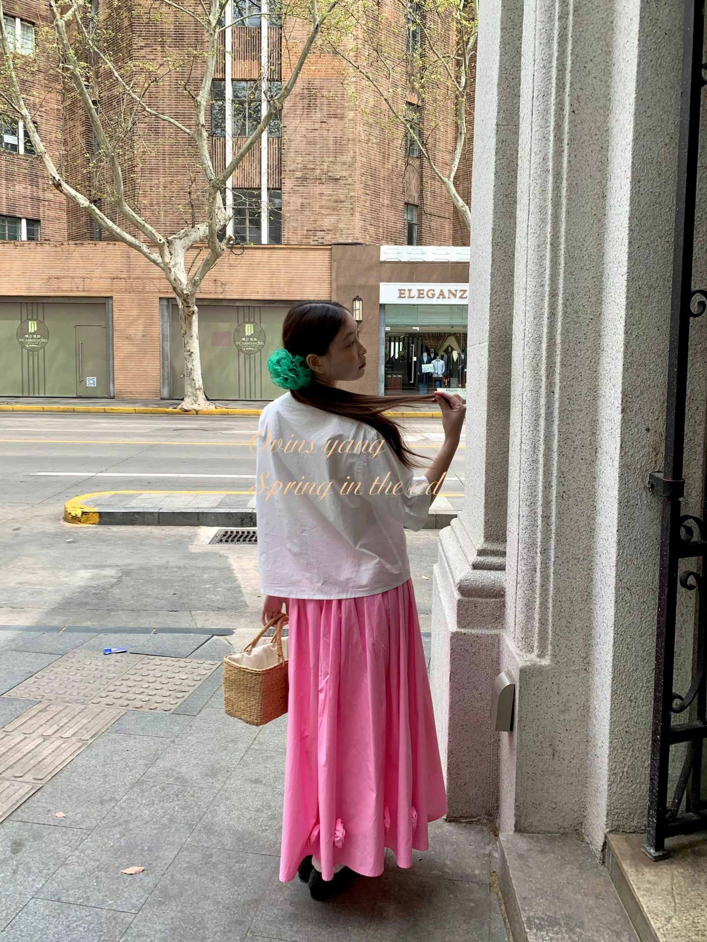 *o-ha-you*【FOY100879】玫瑰花半身裙設計感小眾甜美少女風穿搭中長百褶裙-3色