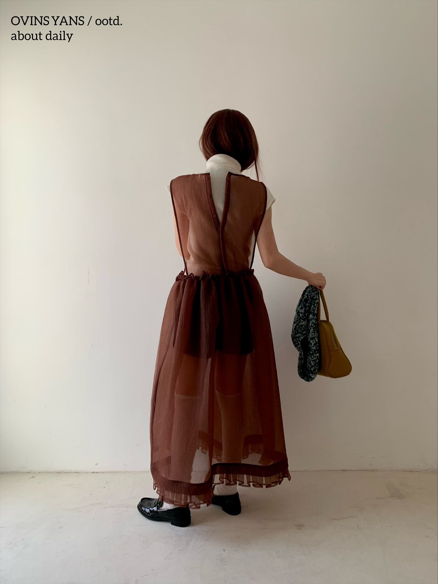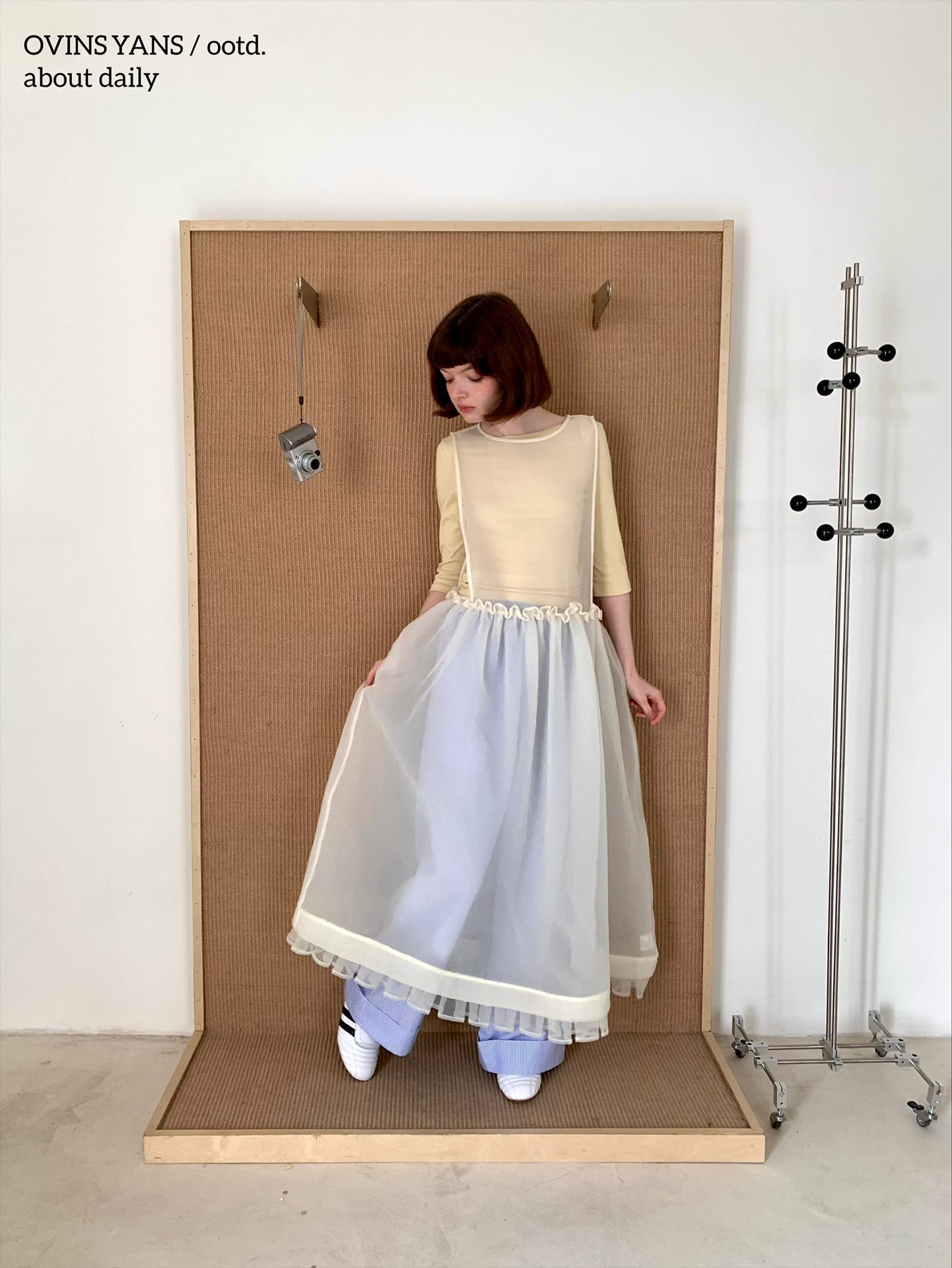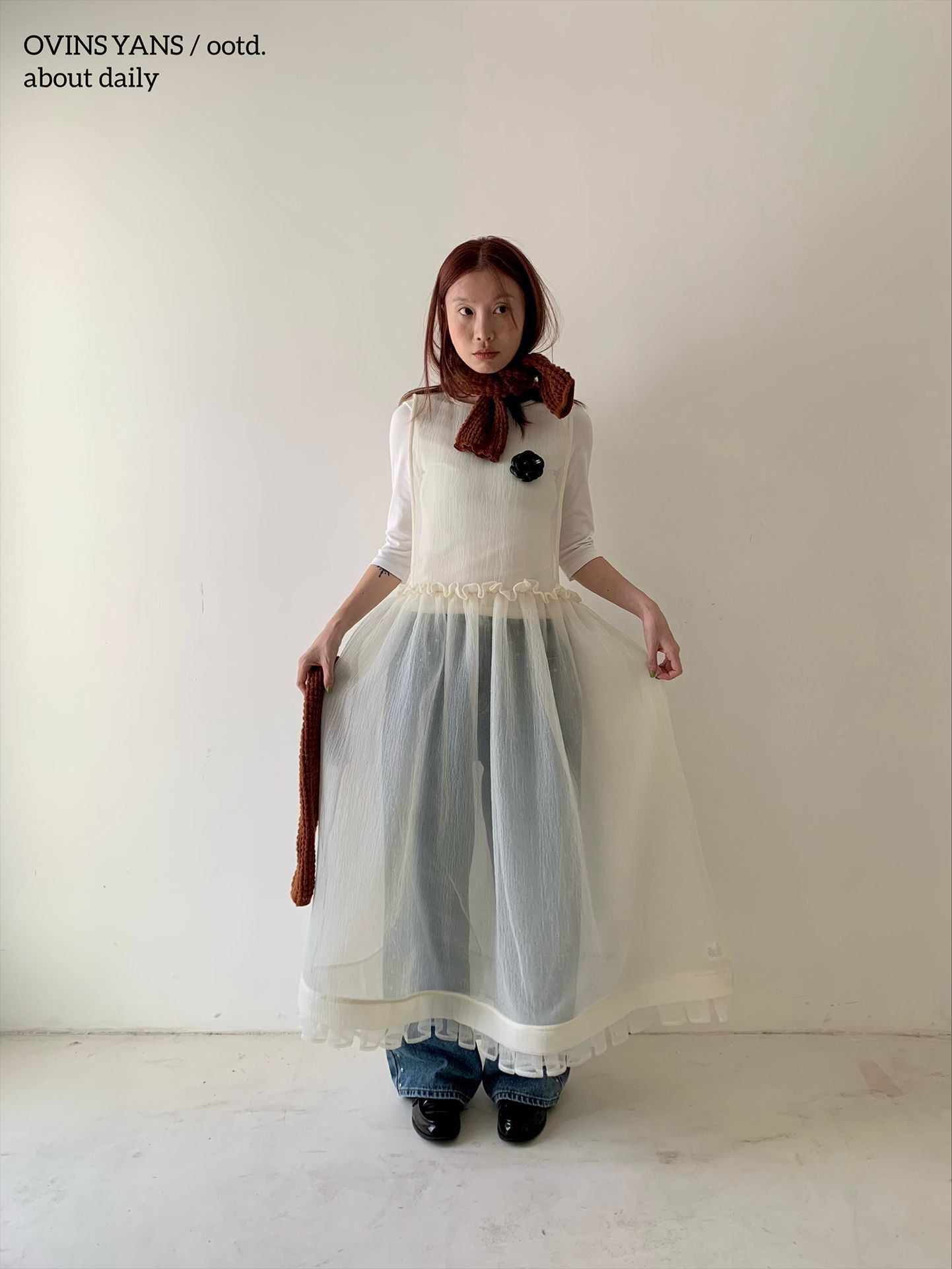 *o-ha-you*【FOY100885】秋季新款紗紗連衣裙疊穿韓國甜美少女感蓬蓬無袖背心裙洋裝-2色