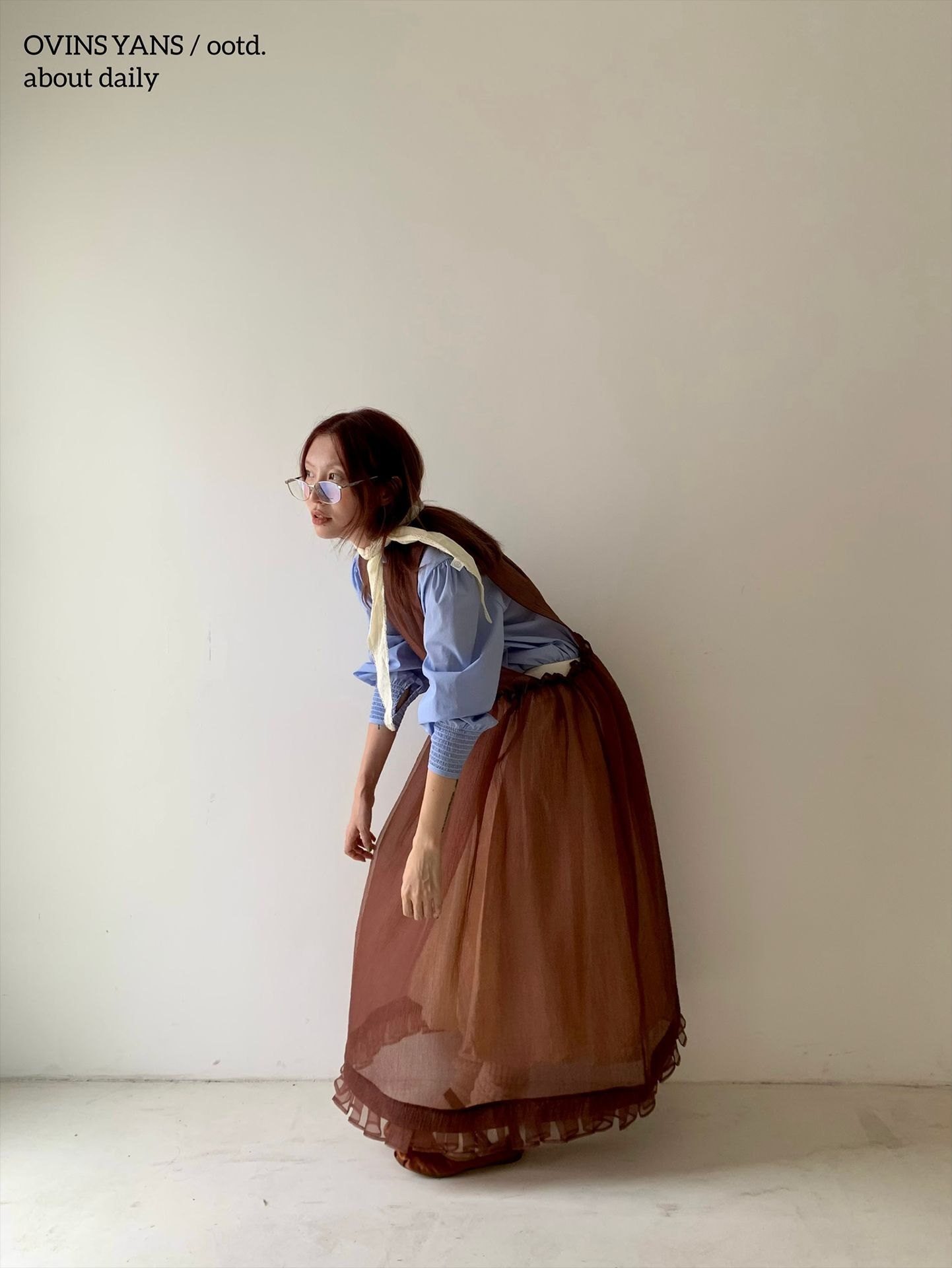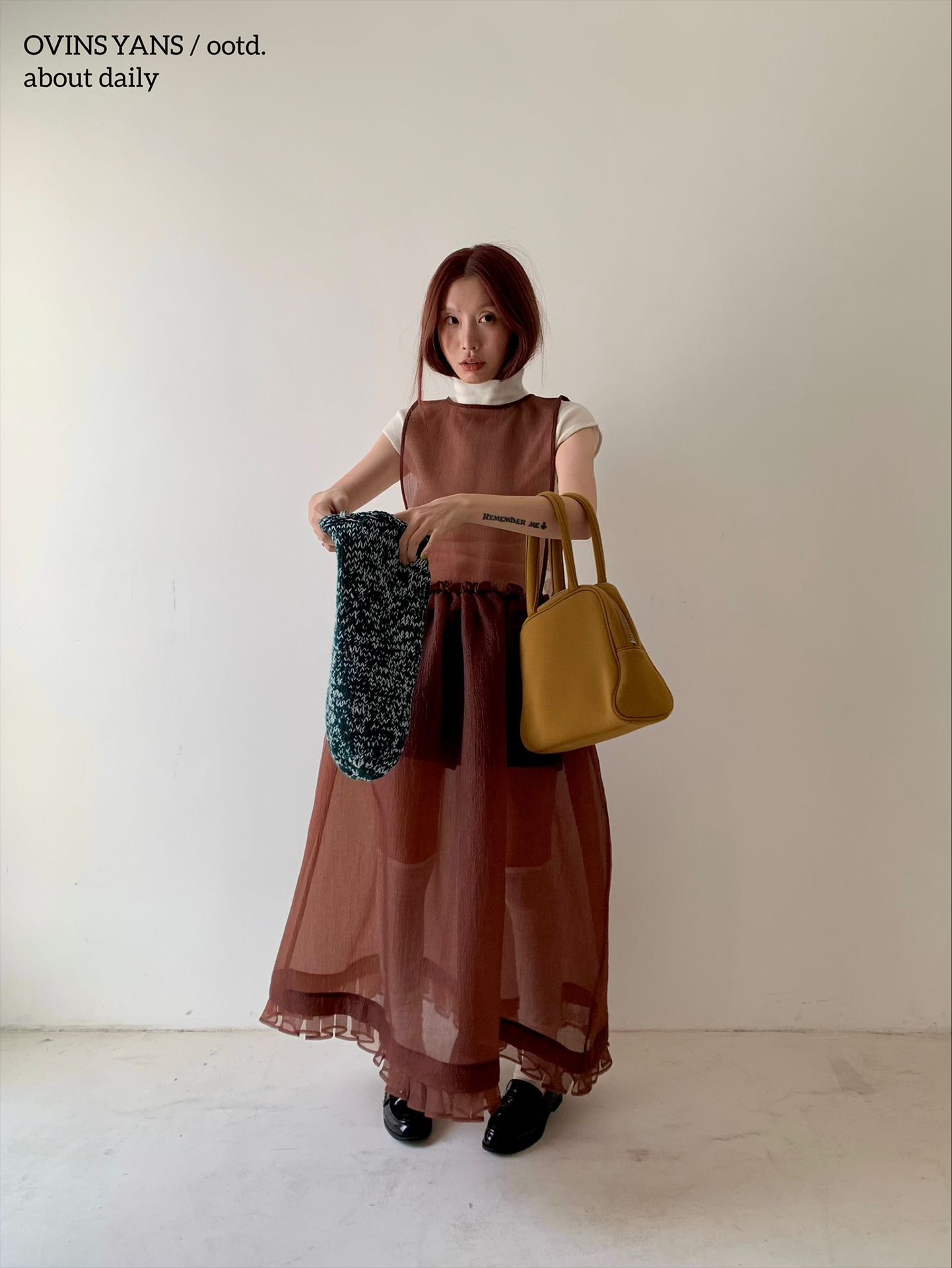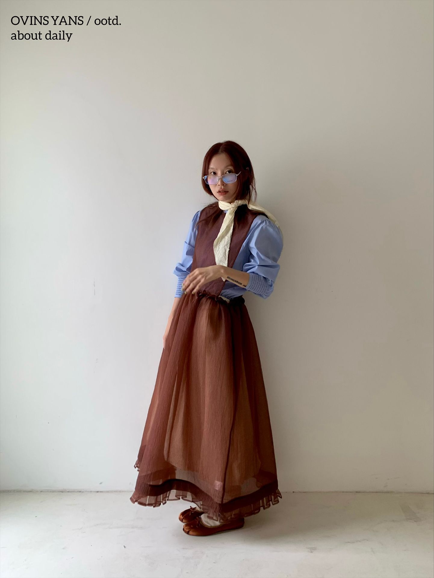 *o-ha-you*【FOY100885】秋季新款紗紗連衣裙疊穿韓國甜美少女感蓬蓬無袖背心裙洋裝-2色