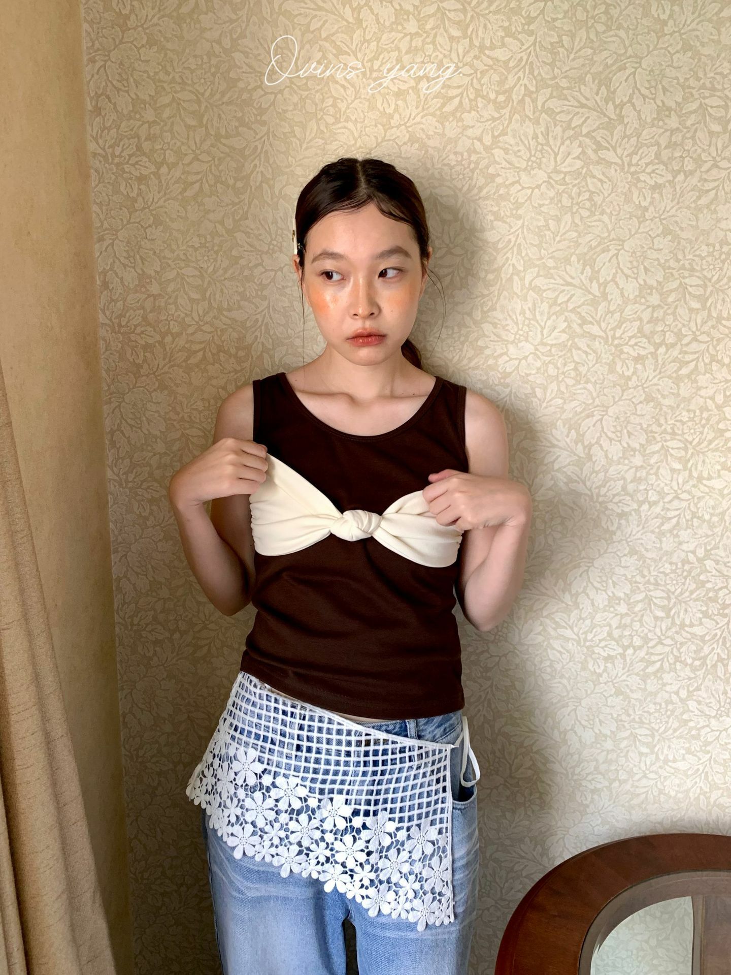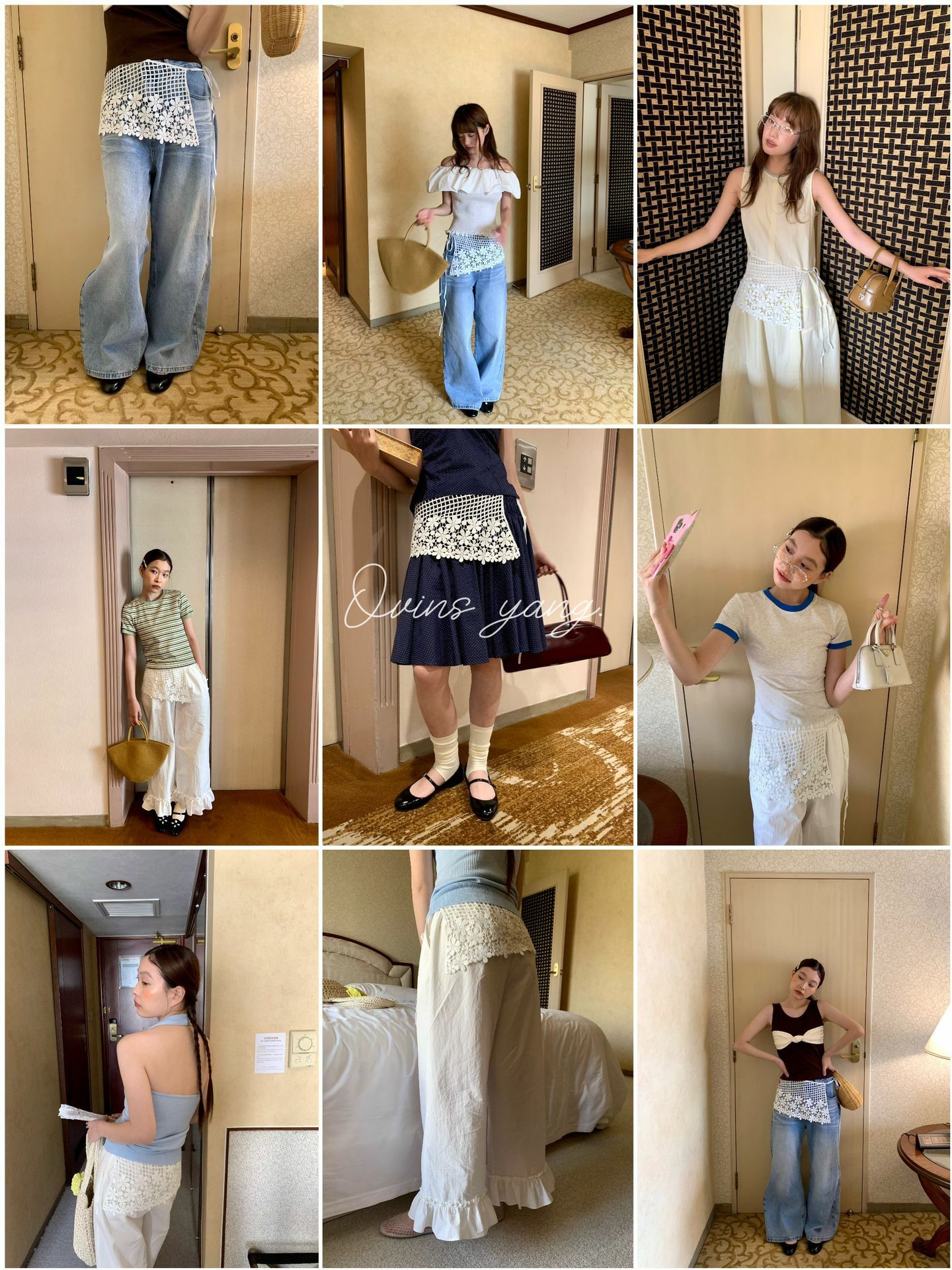 *o-ha-you*【FOY100939】鏤空碎花屁簾裙疊穿外搭設計感小眾韓式穿搭半身裙