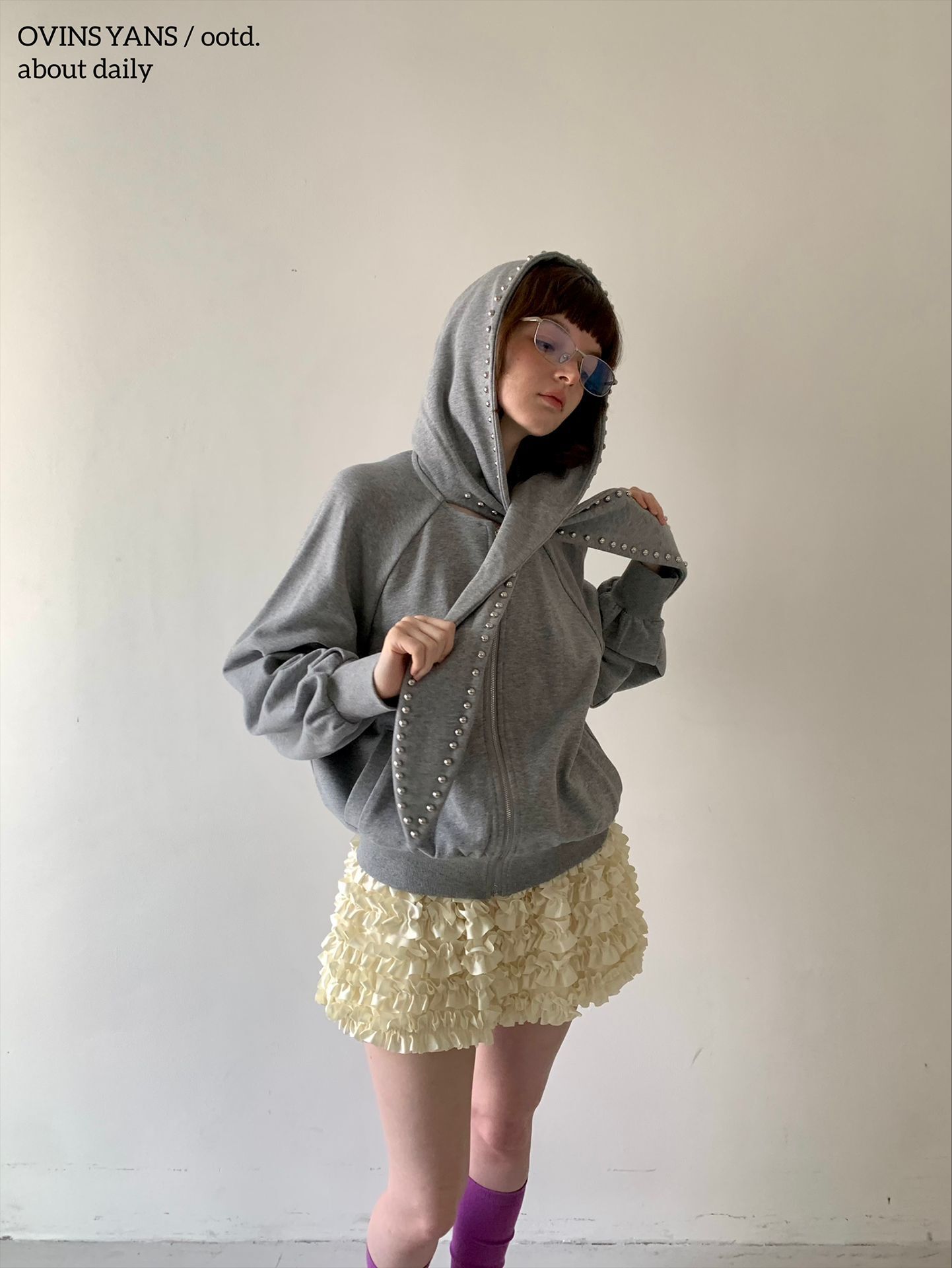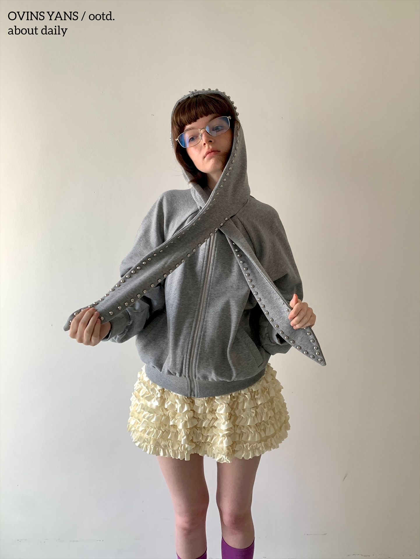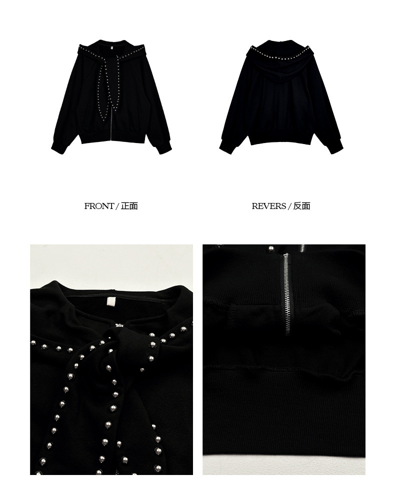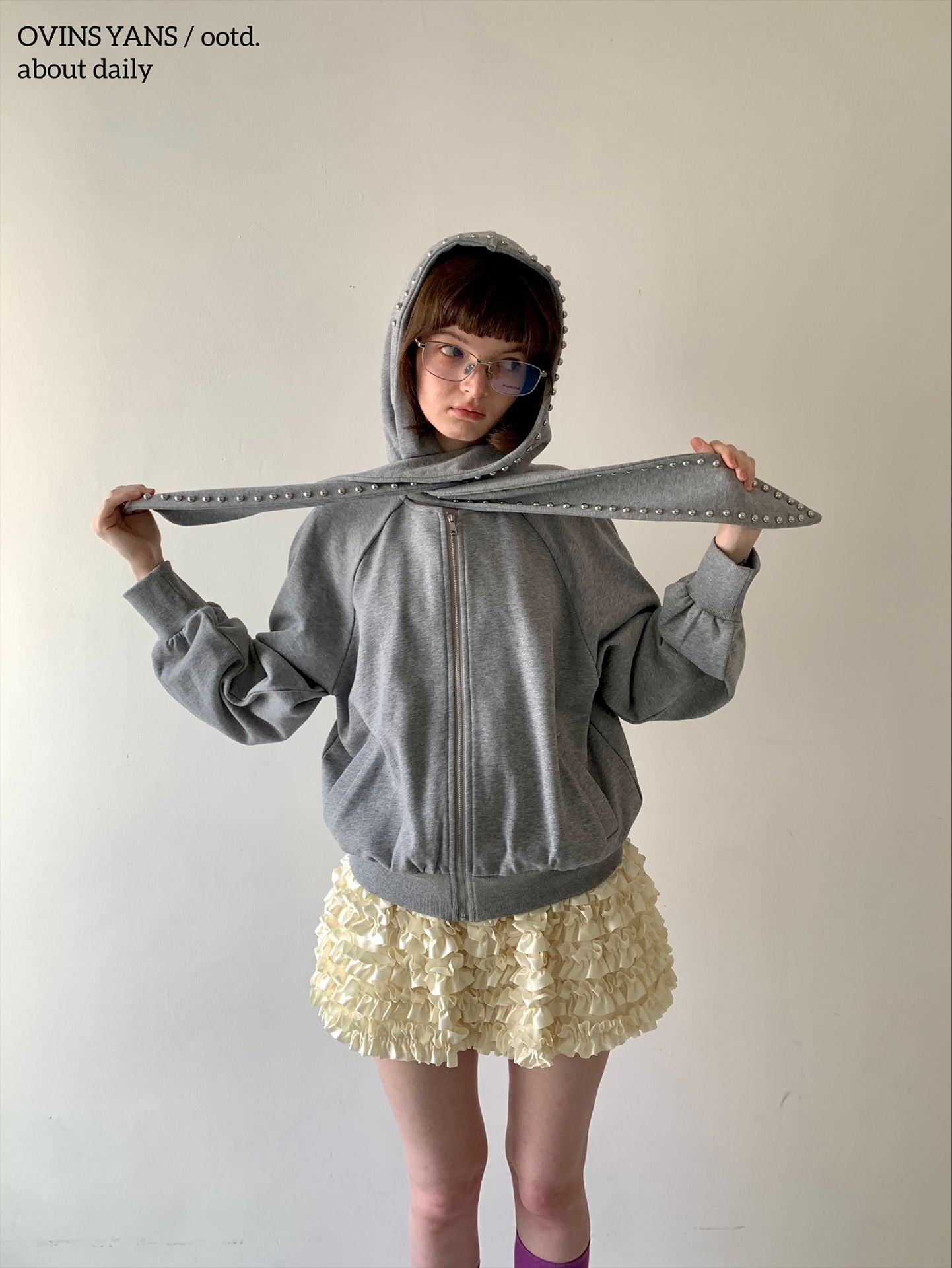 *o-ha-you*【FOY101038】鉚釘兔耳連帽衛衣2025秋款寬鬆休閒百搭長袖上衣-2色
