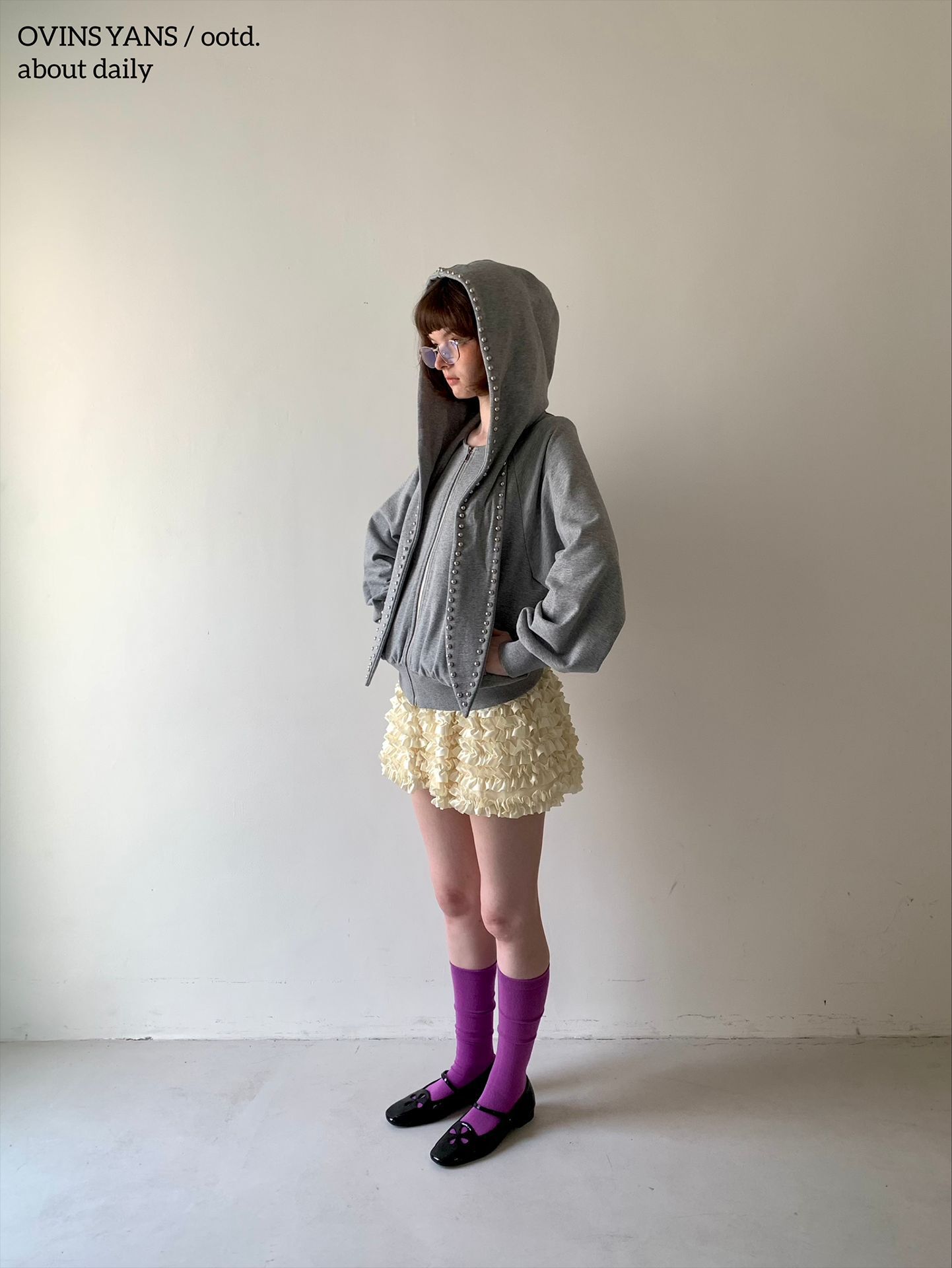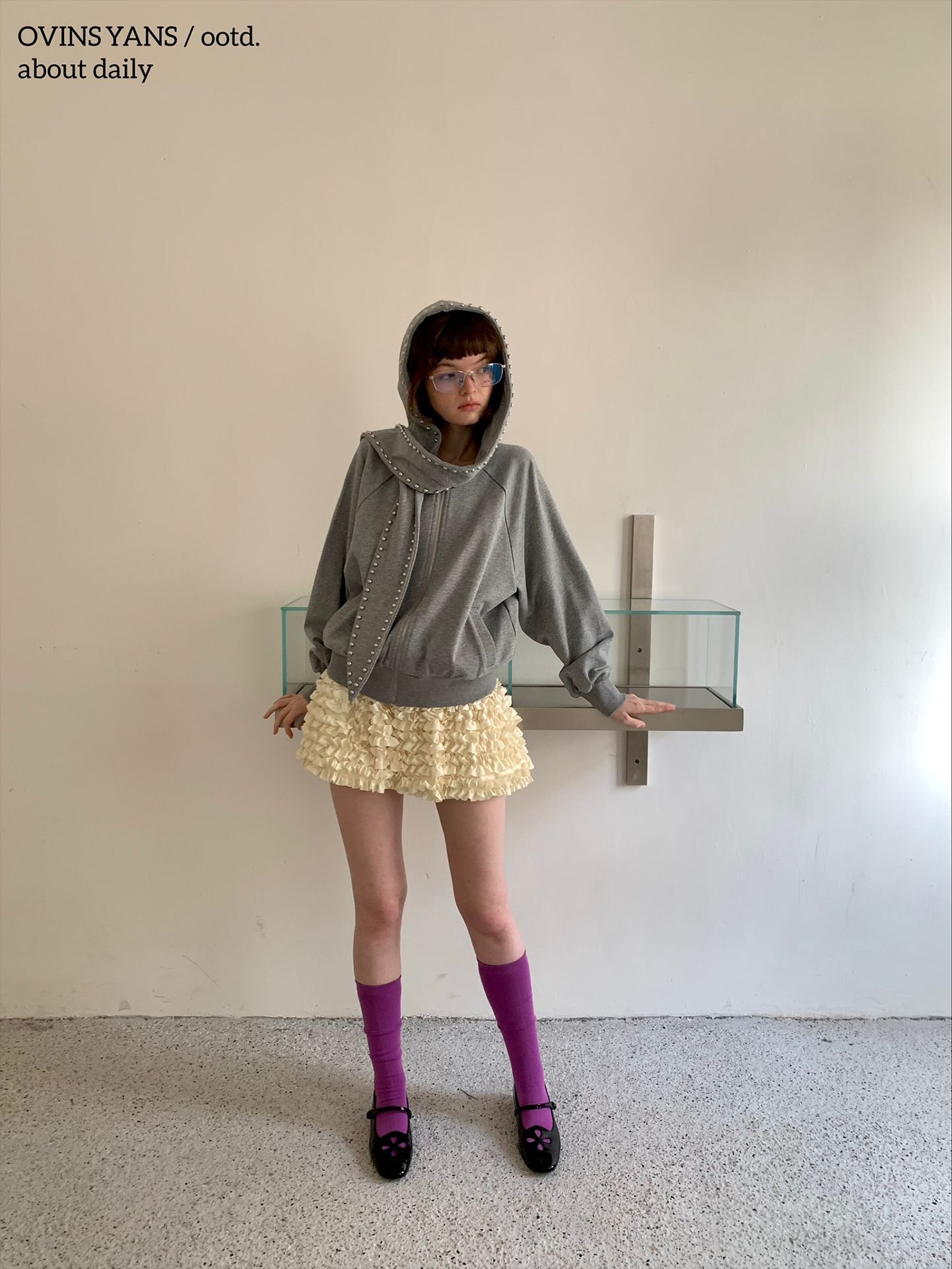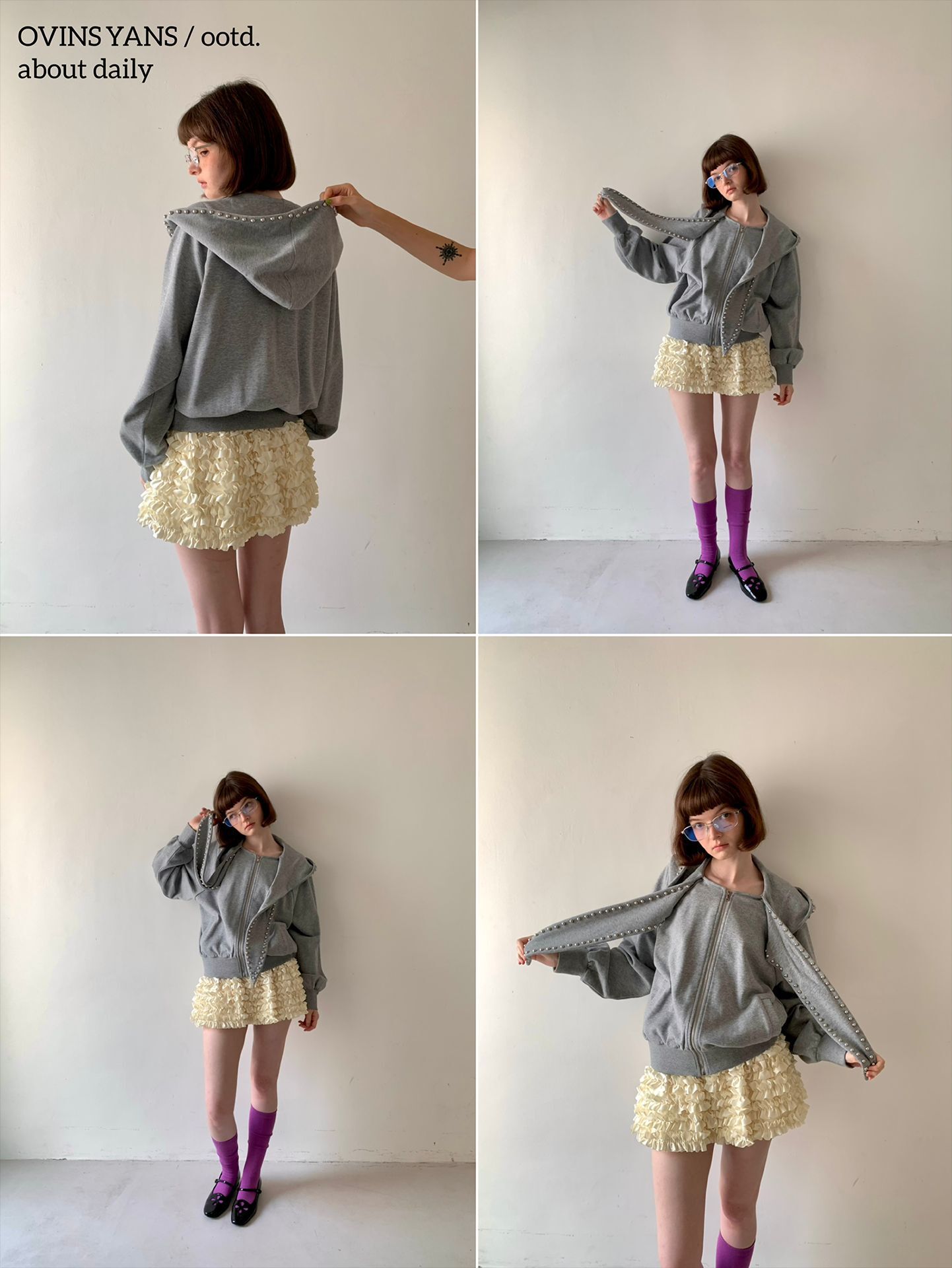 *o-ha-you*【FOY101038】鉚釘兔耳連帽衛衣2025秋款寬鬆休閒百搭長袖上衣-2色