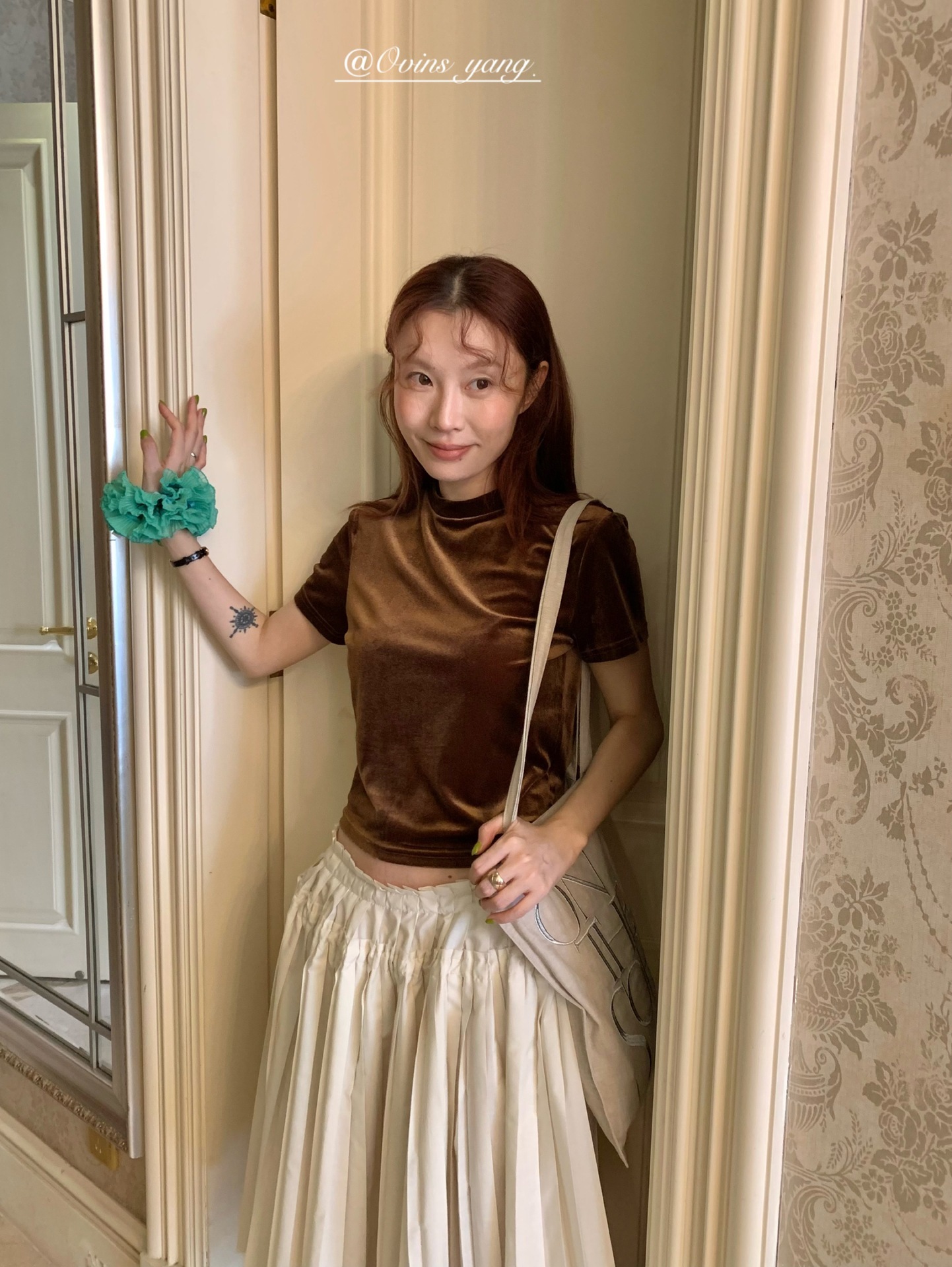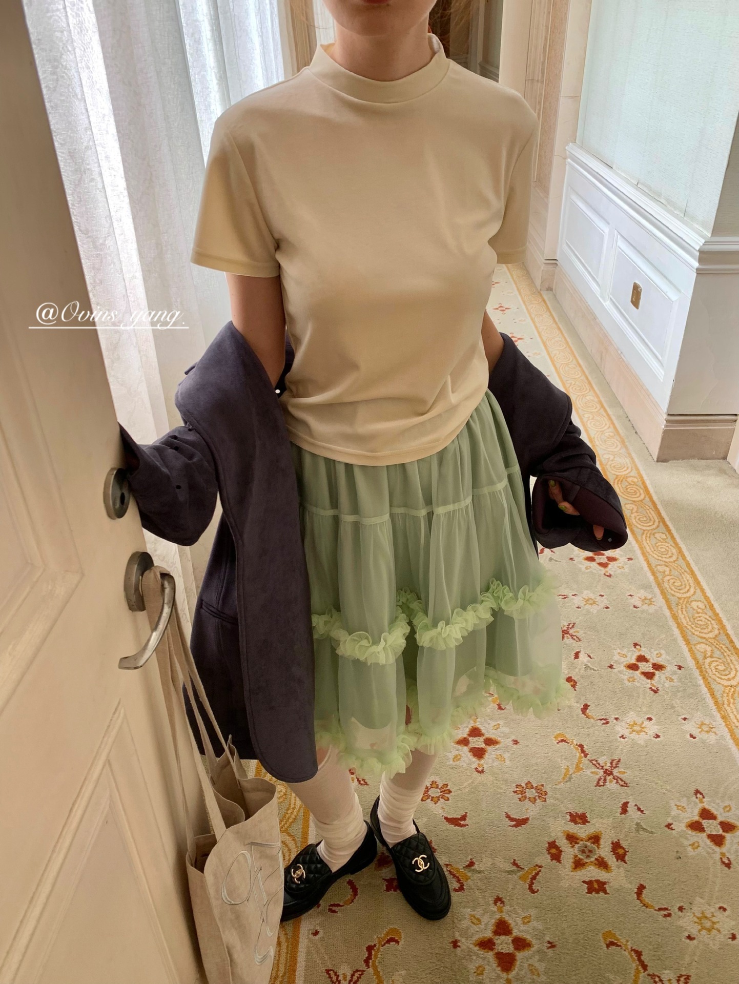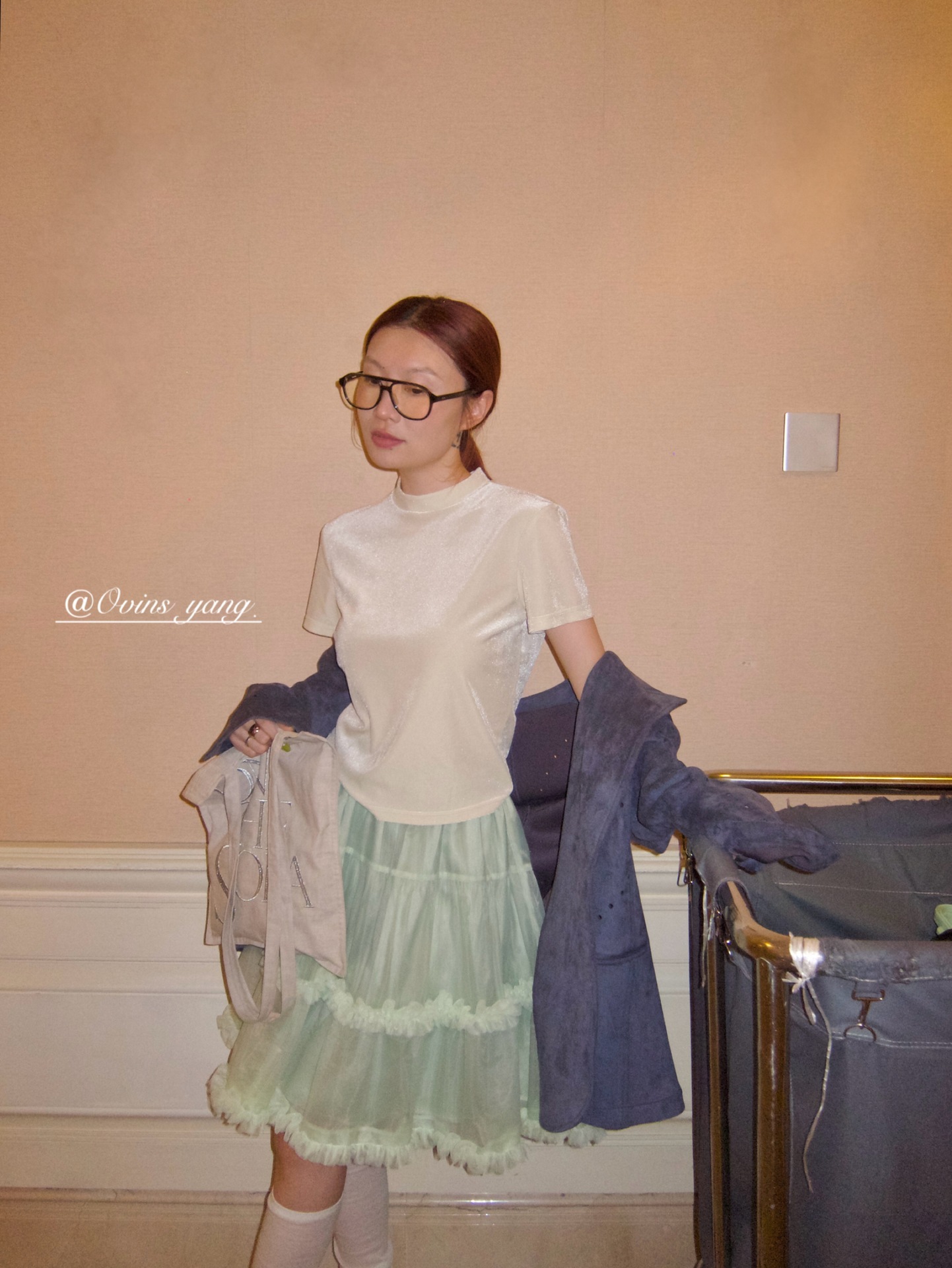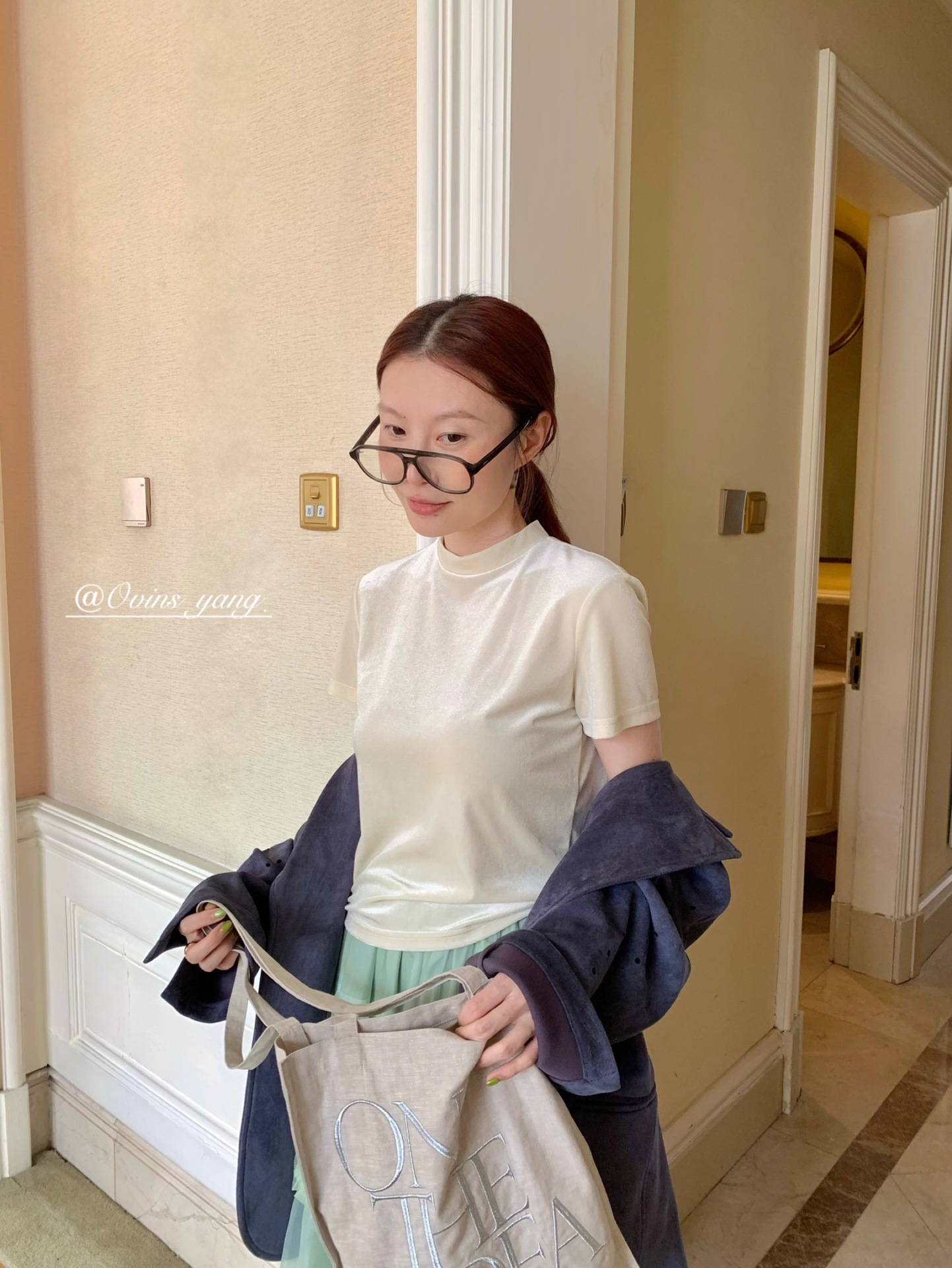 *o-ha-you*【FOY101058】2025秋季新款純色絲絨半高領短袖T恤韓系簡約百搭上衣-3色