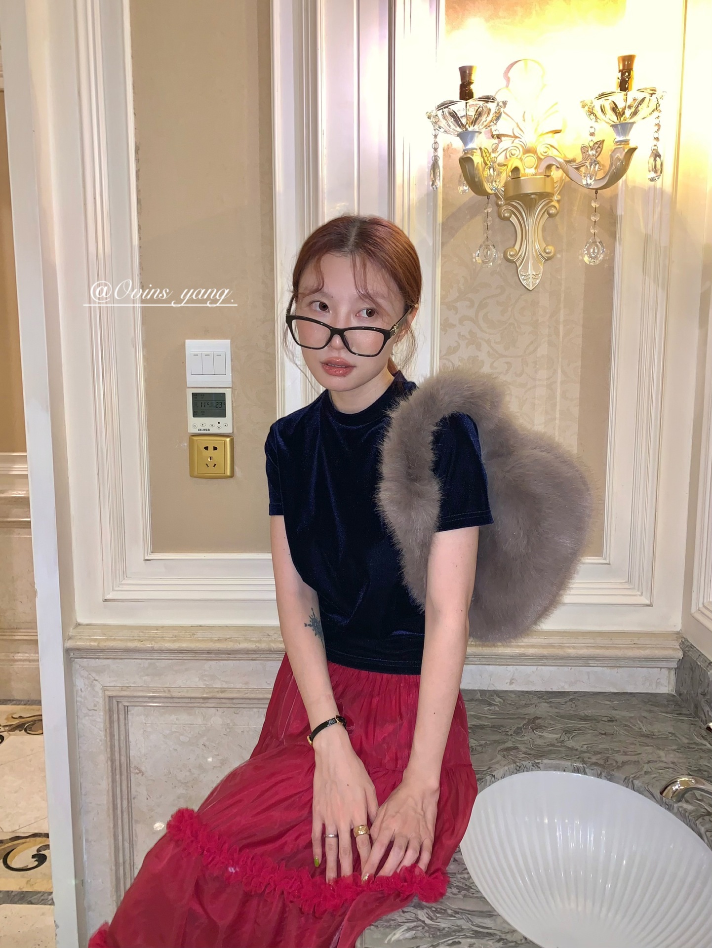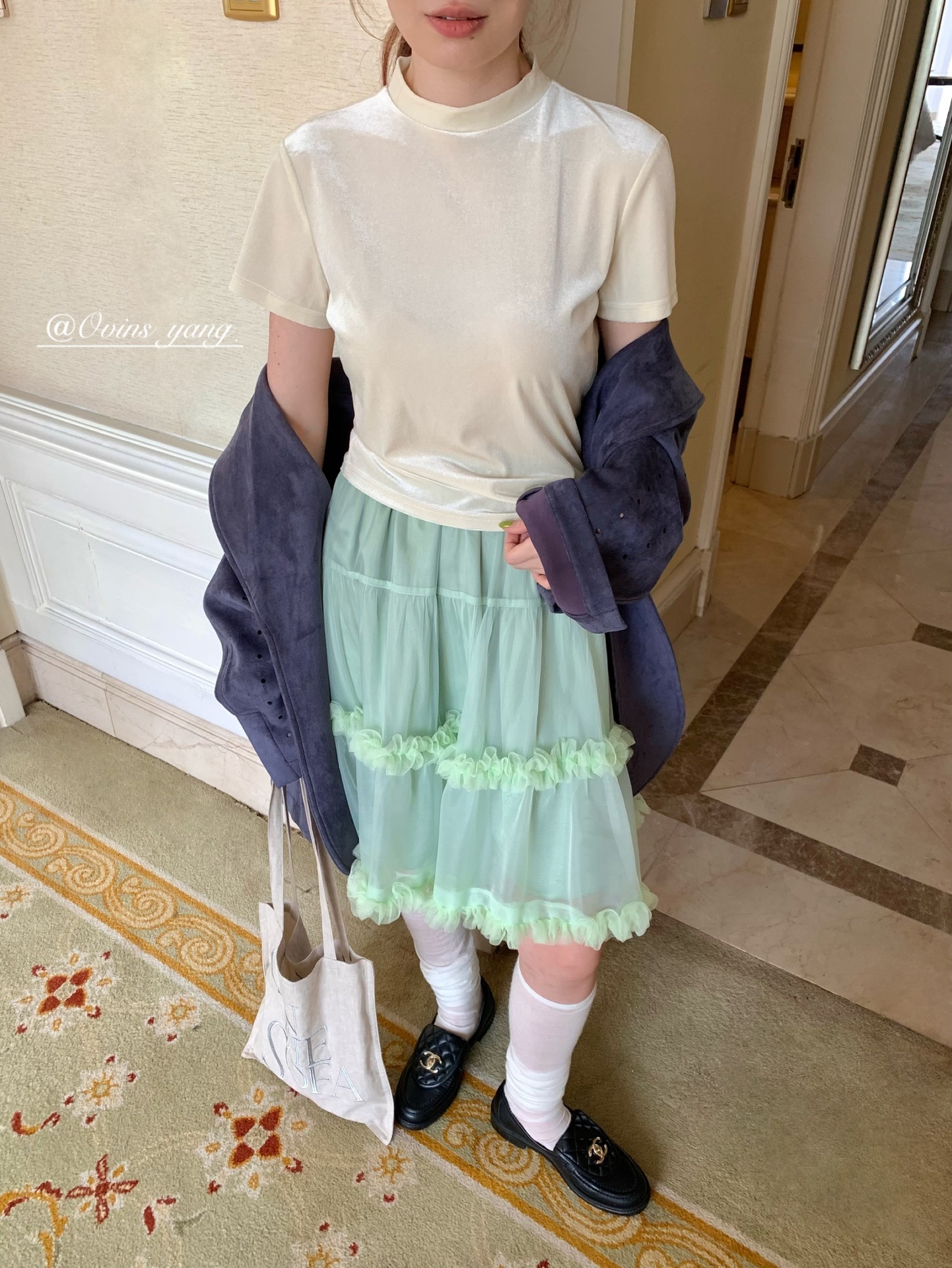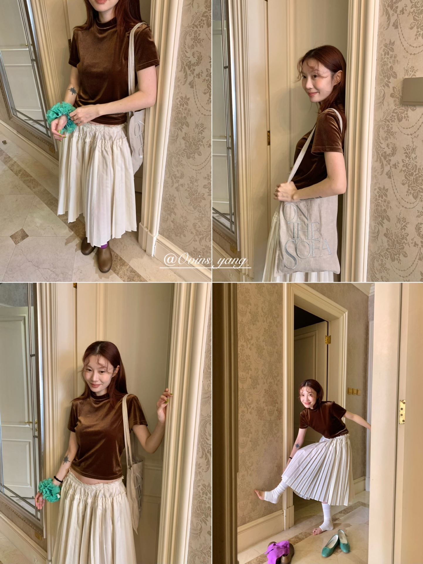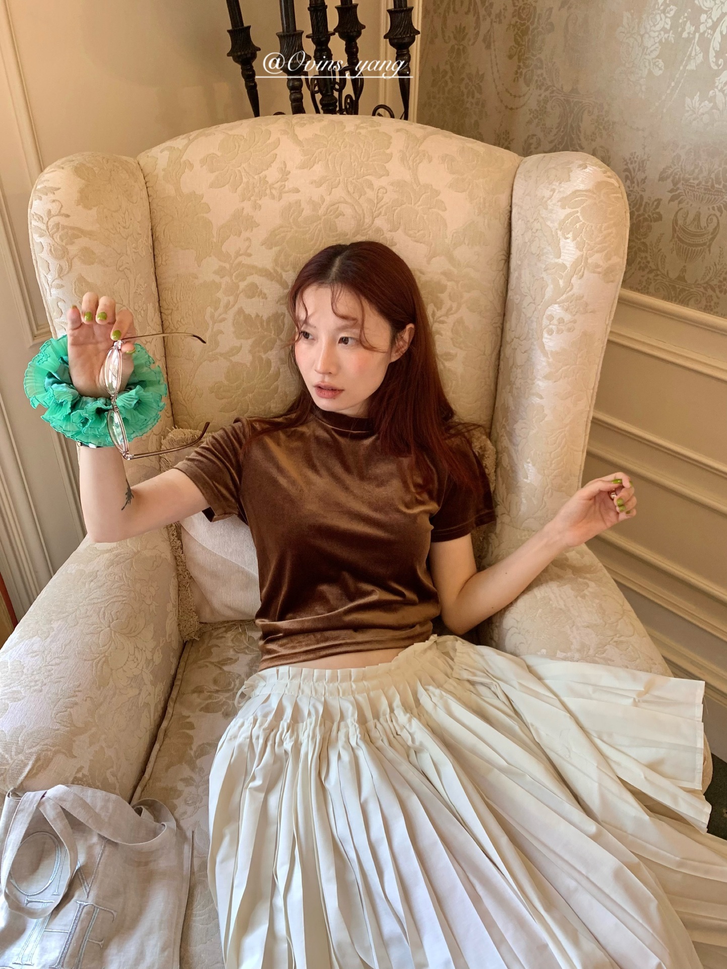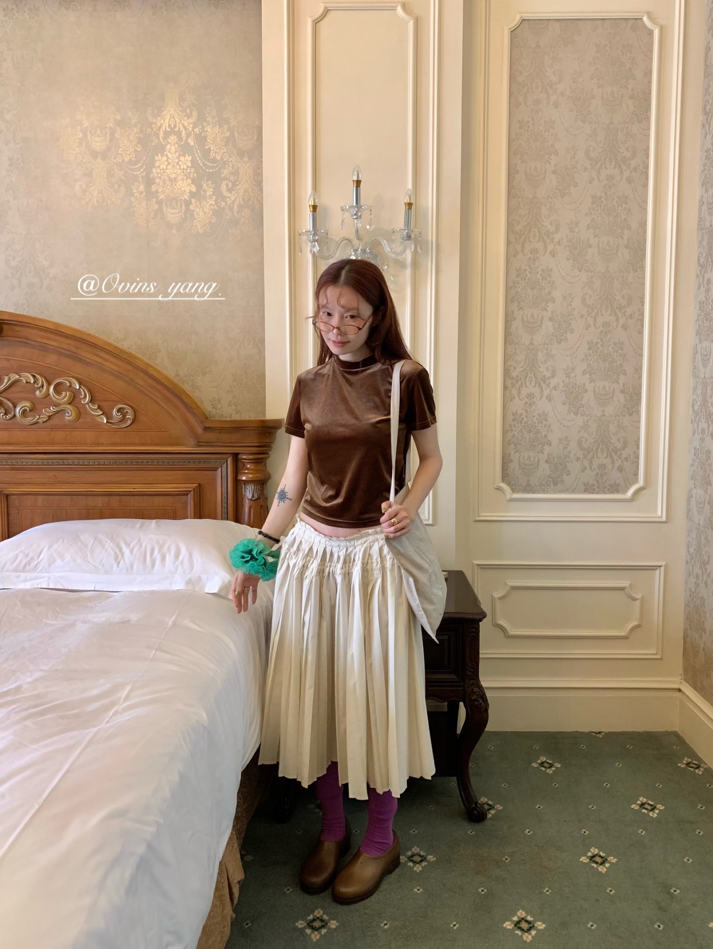 *o-ha-you*【FOY101058】2025秋季新款純色絲絨半高領短袖T恤韓系簡約百搭上衣-3色