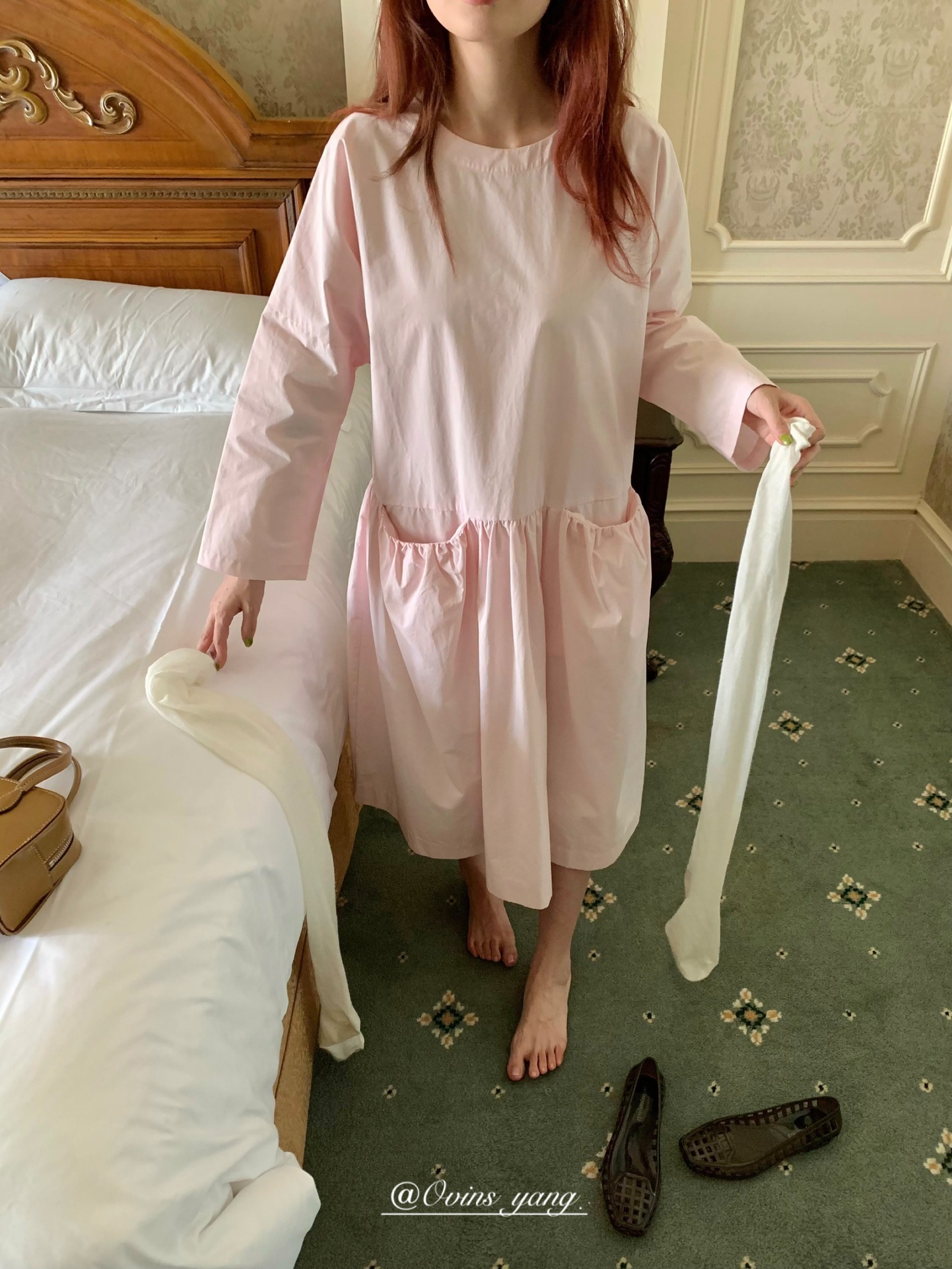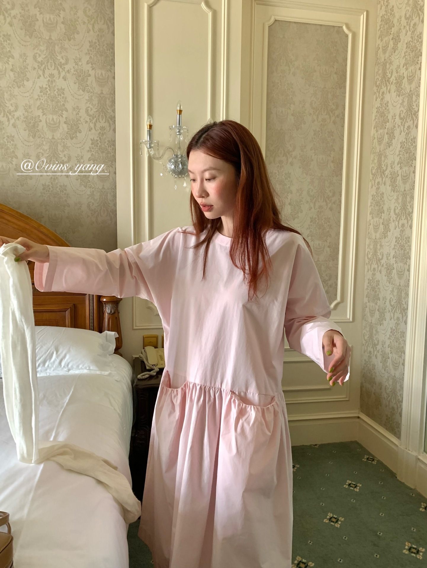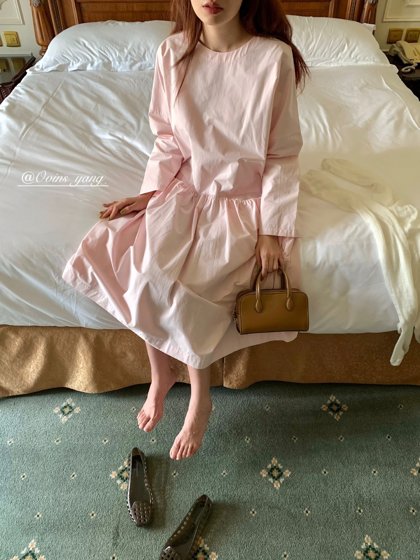 *o-ha-you*【FOY101066】粉色連衣裙子秋2025新款法式氣質寬鬆慵懶風中長裙洋裝