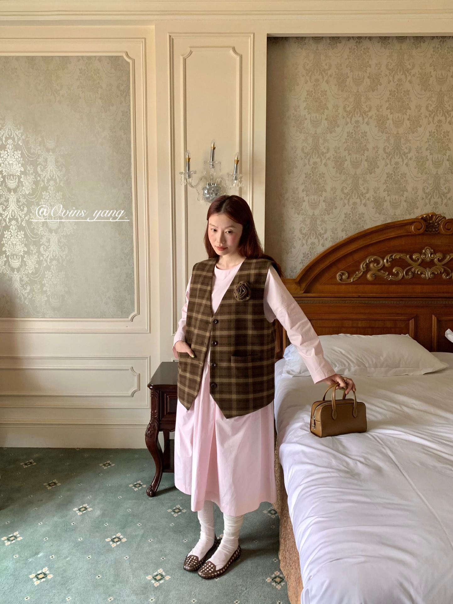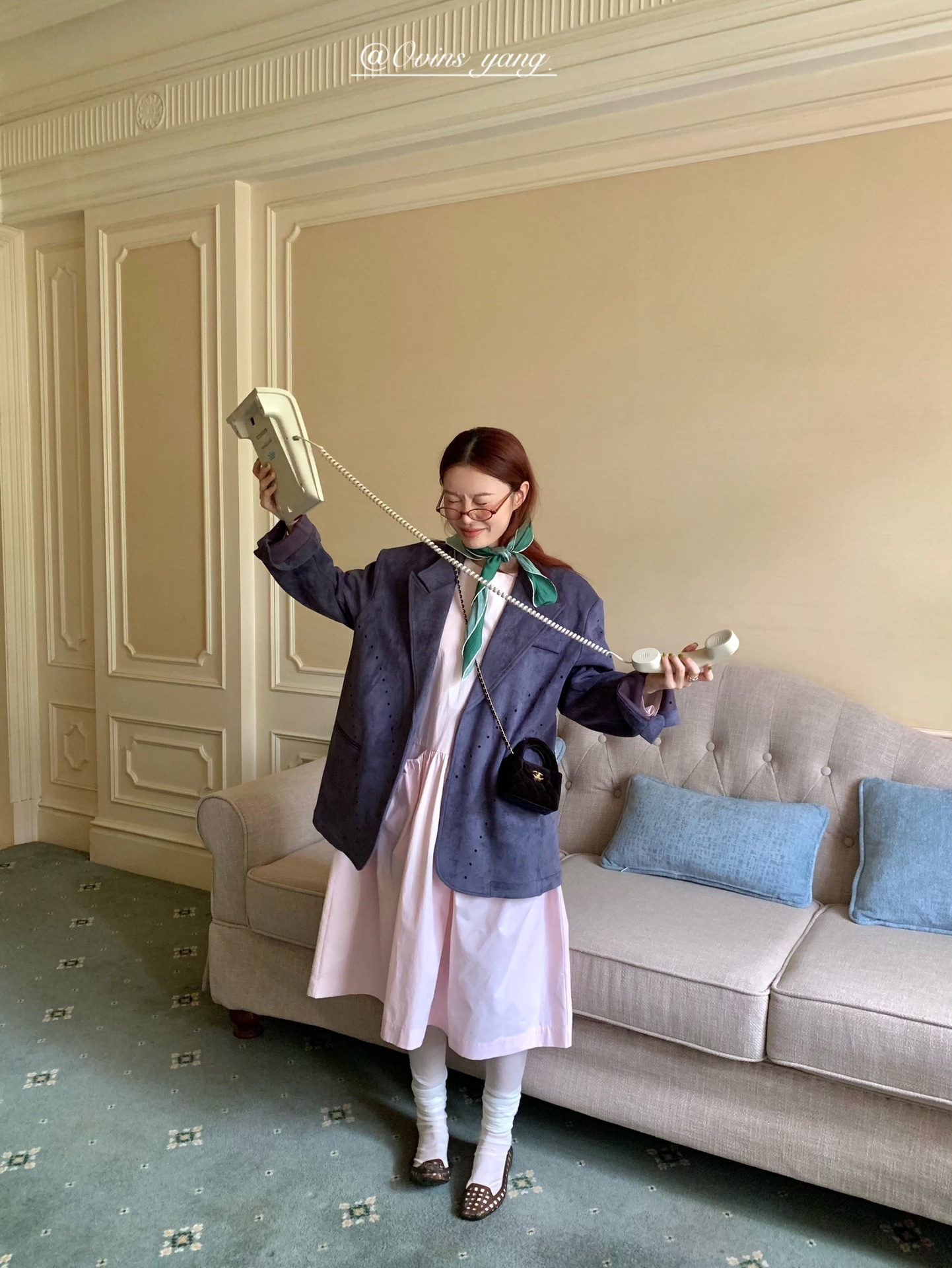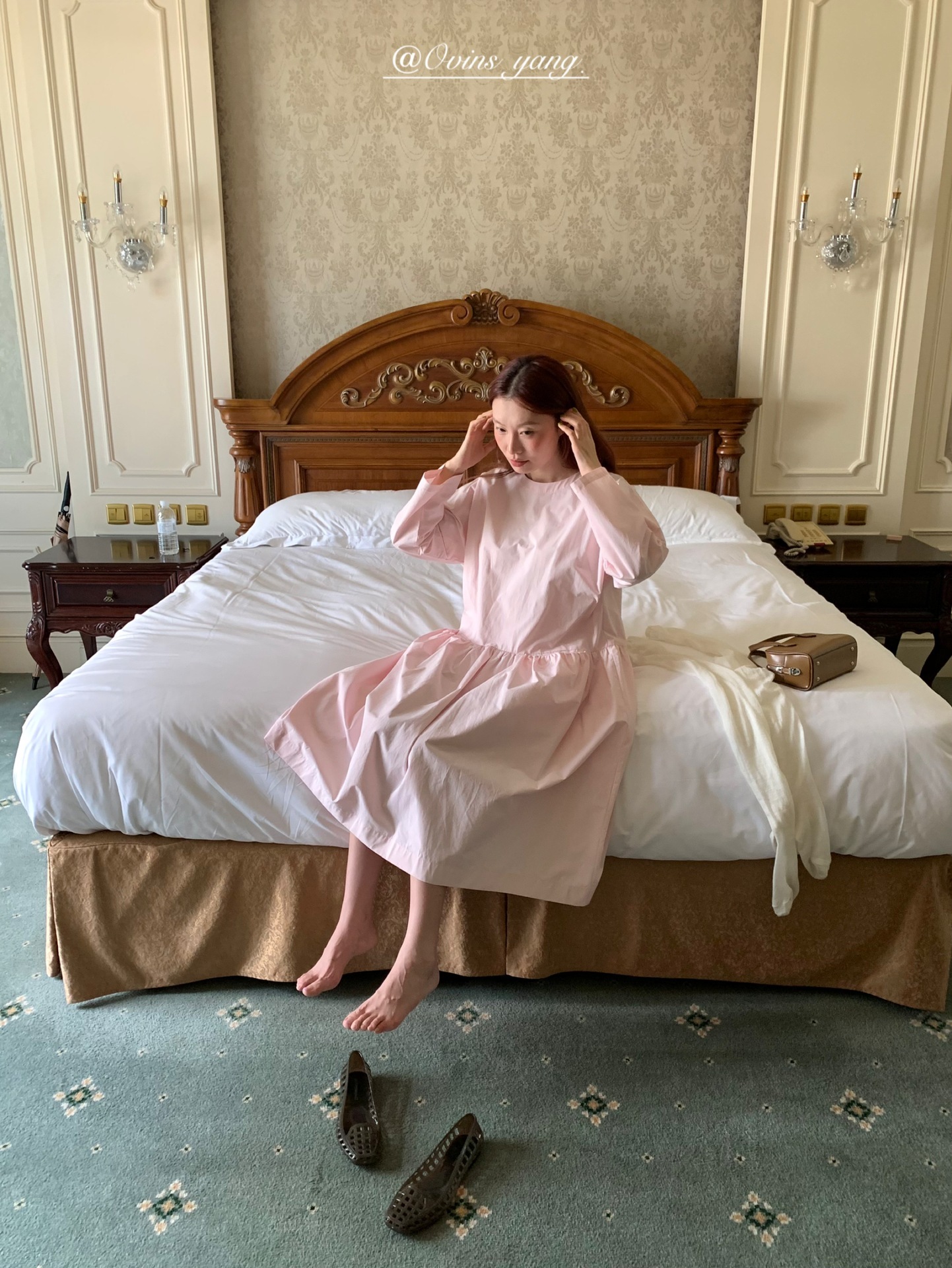 *o-ha-you*【FOY101066】粉色連衣裙子秋2025新款法式氣質寬鬆慵懶風中長裙洋裝