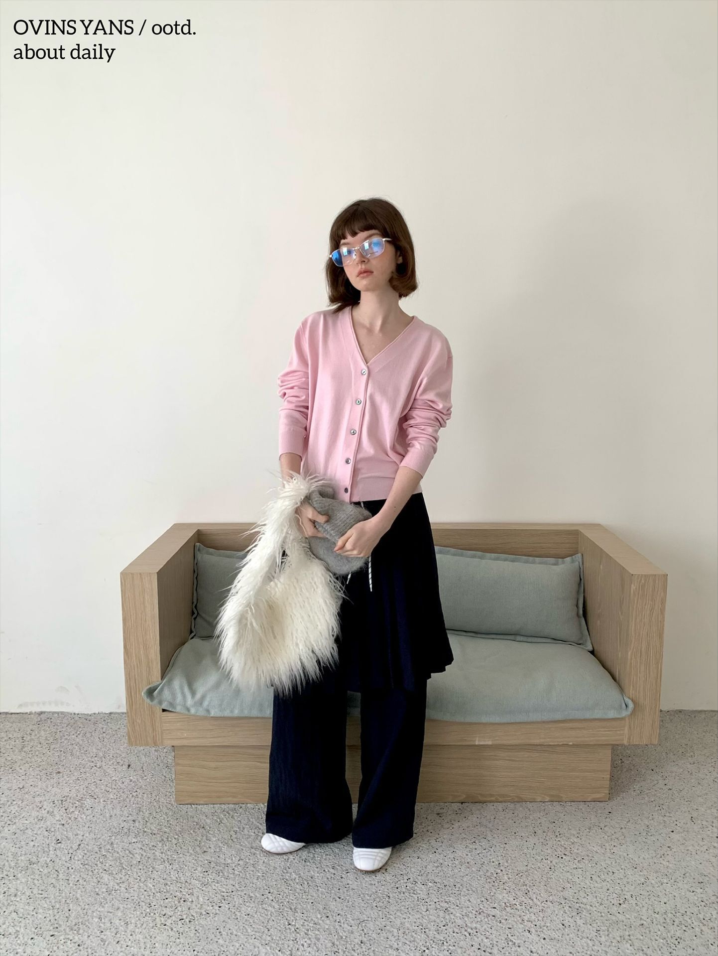 *o-ha-you*【FOY101078】V領針織開襟衫外套女2025秋款韓系慵懶風長袖上衣-2色