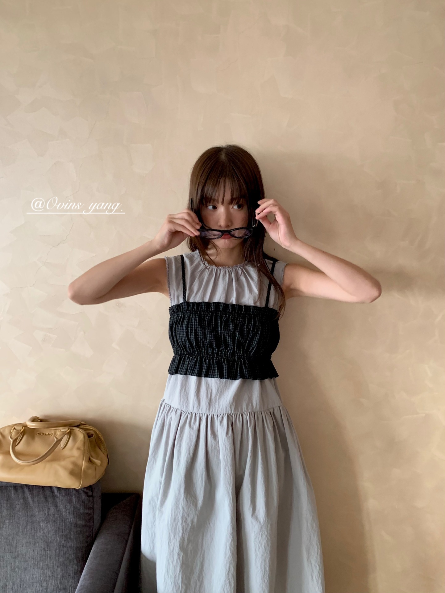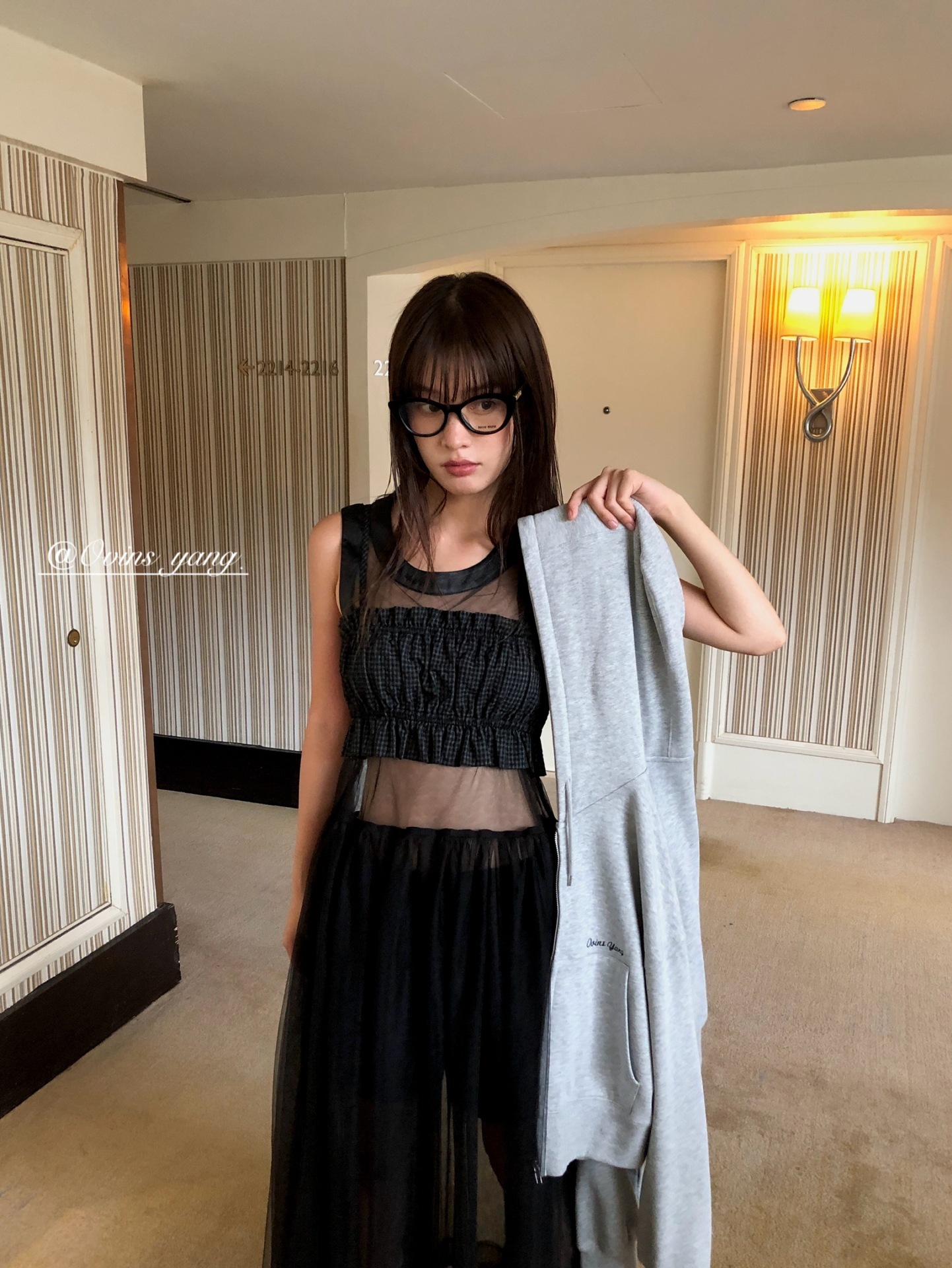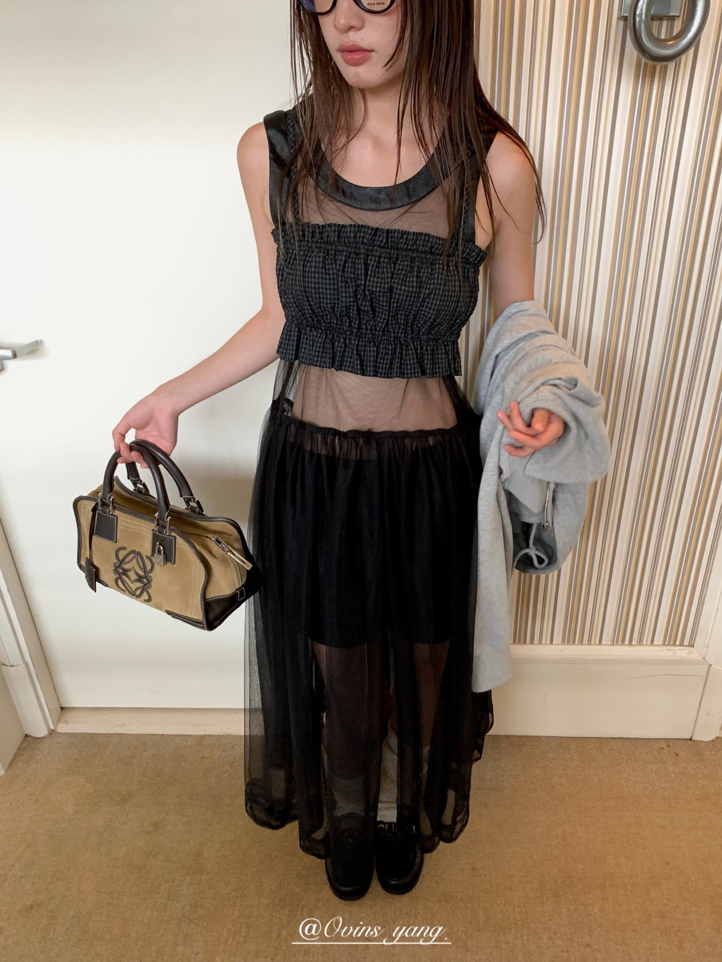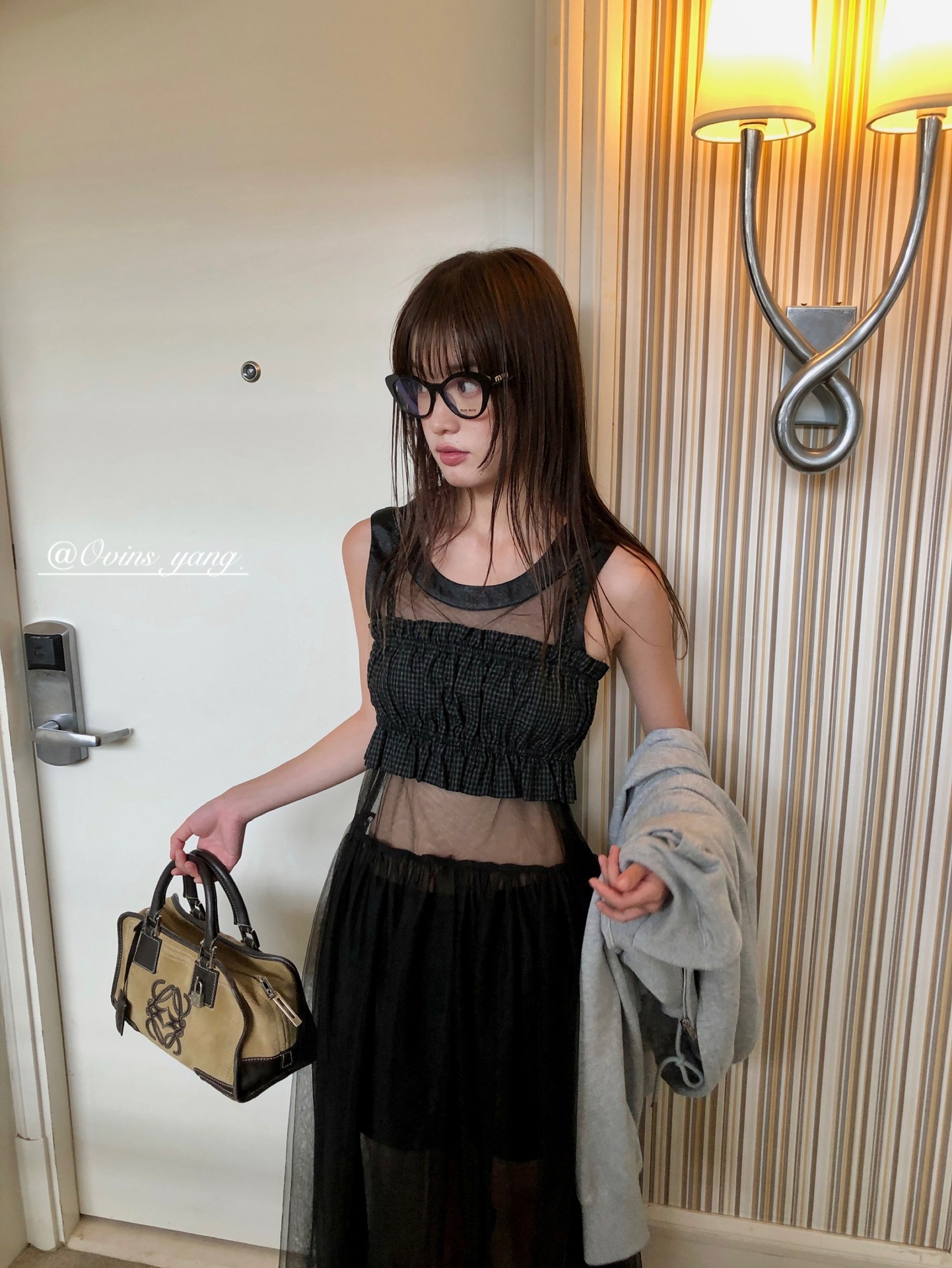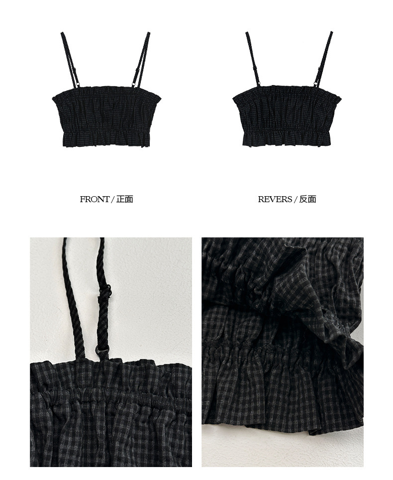 *o-ha-you*【FOY101103】甜美辣妹百搭秋季新款抹胸黑色格紋吊帶背心上衣