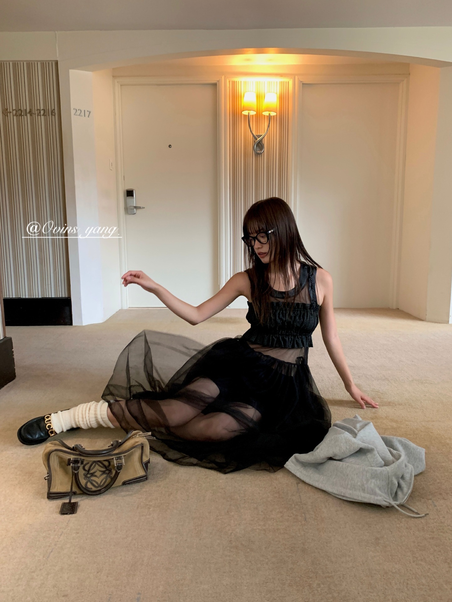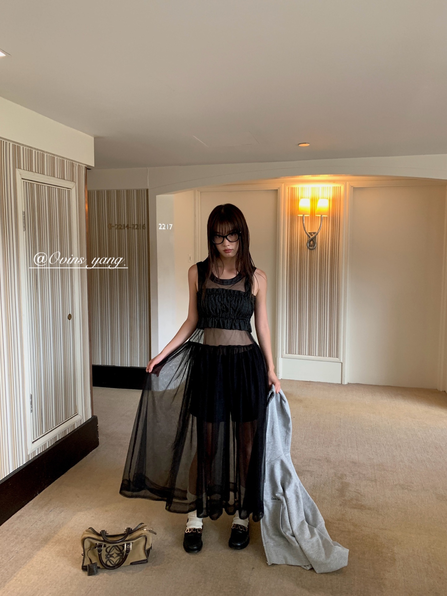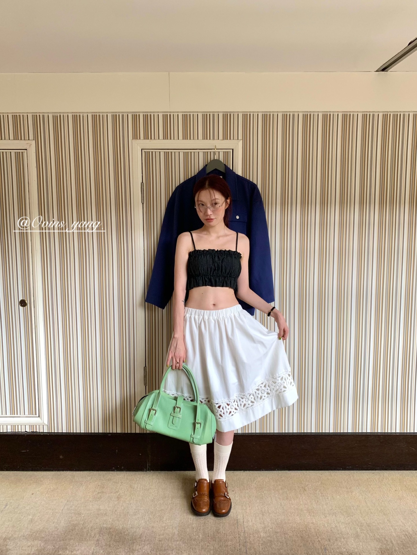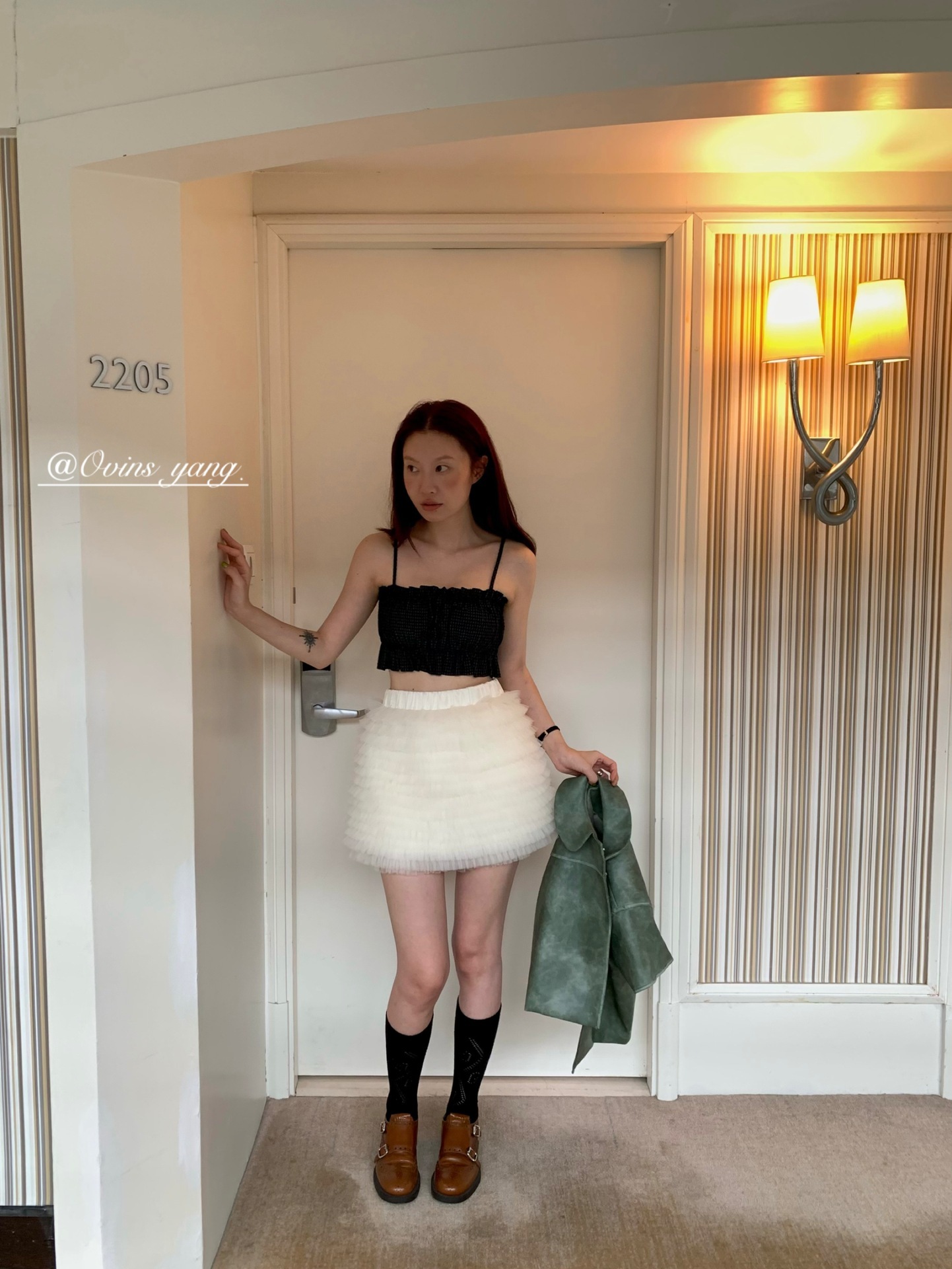 *o-ha-you*【FOY101103】甜美辣妹百搭秋季新款抹胸黑色格紋吊帶背心上衣