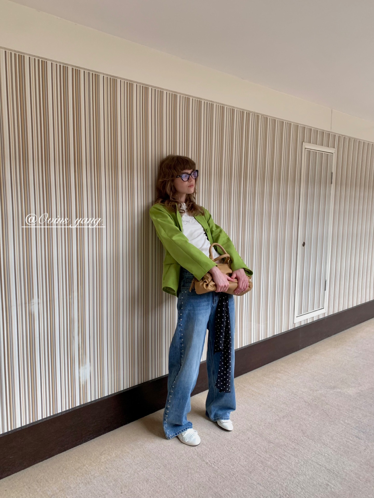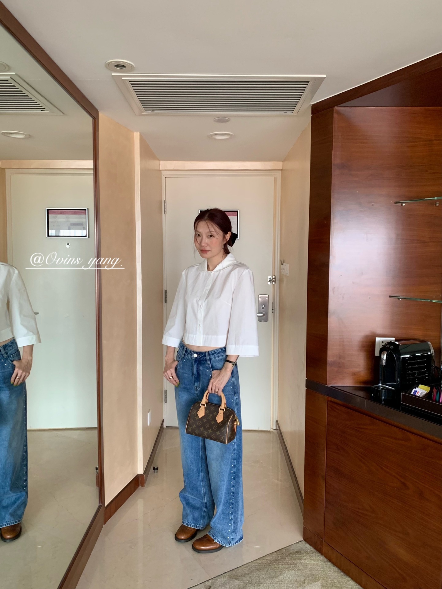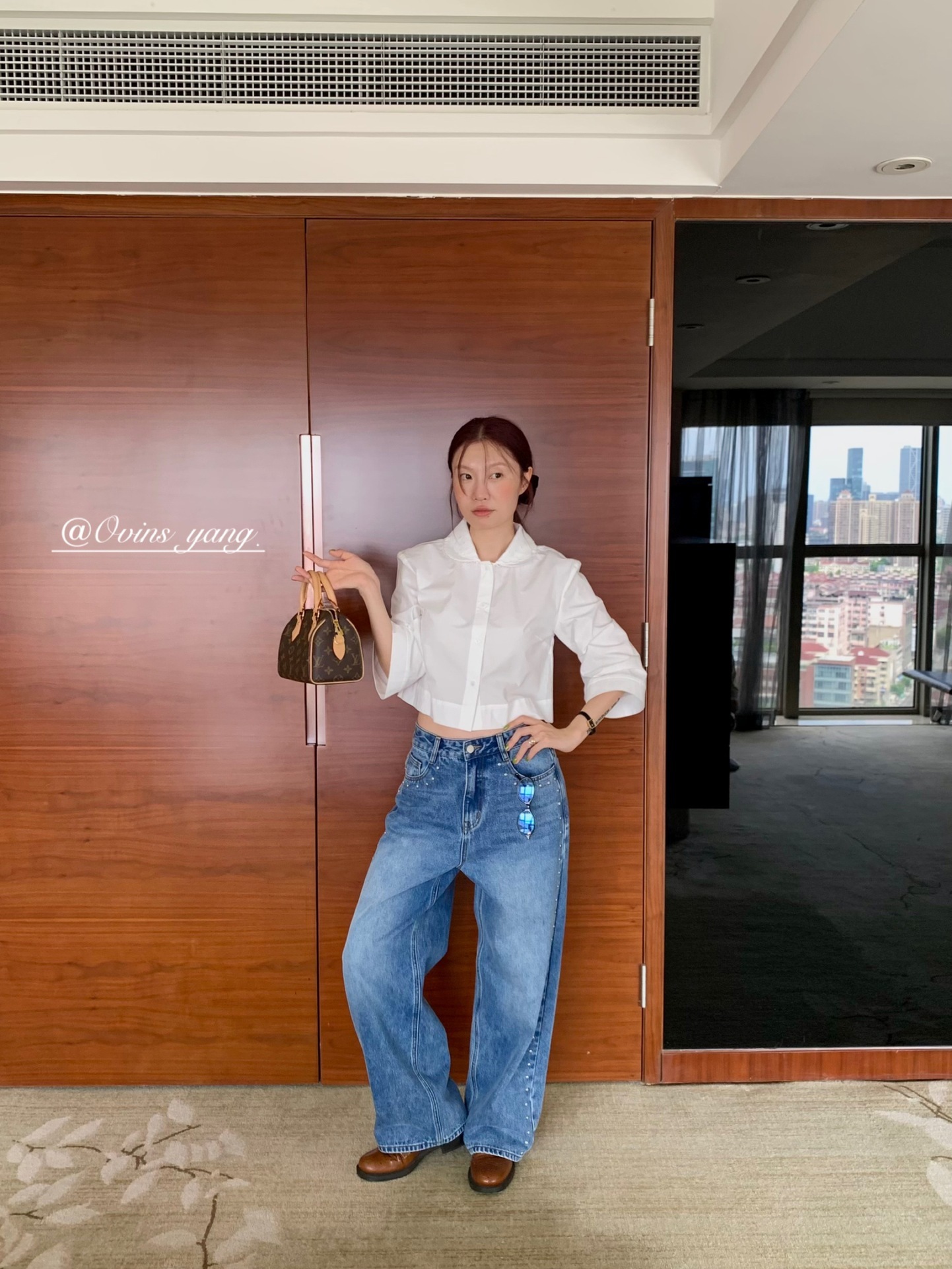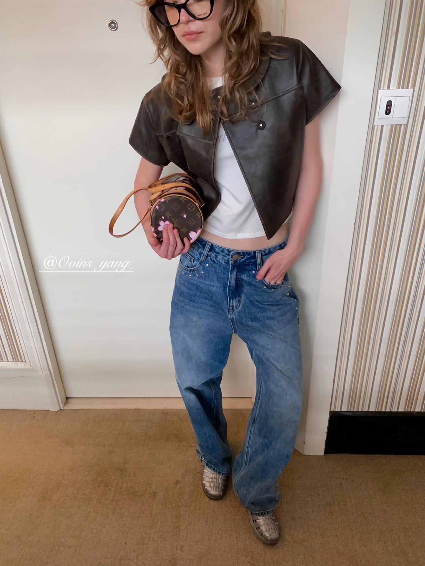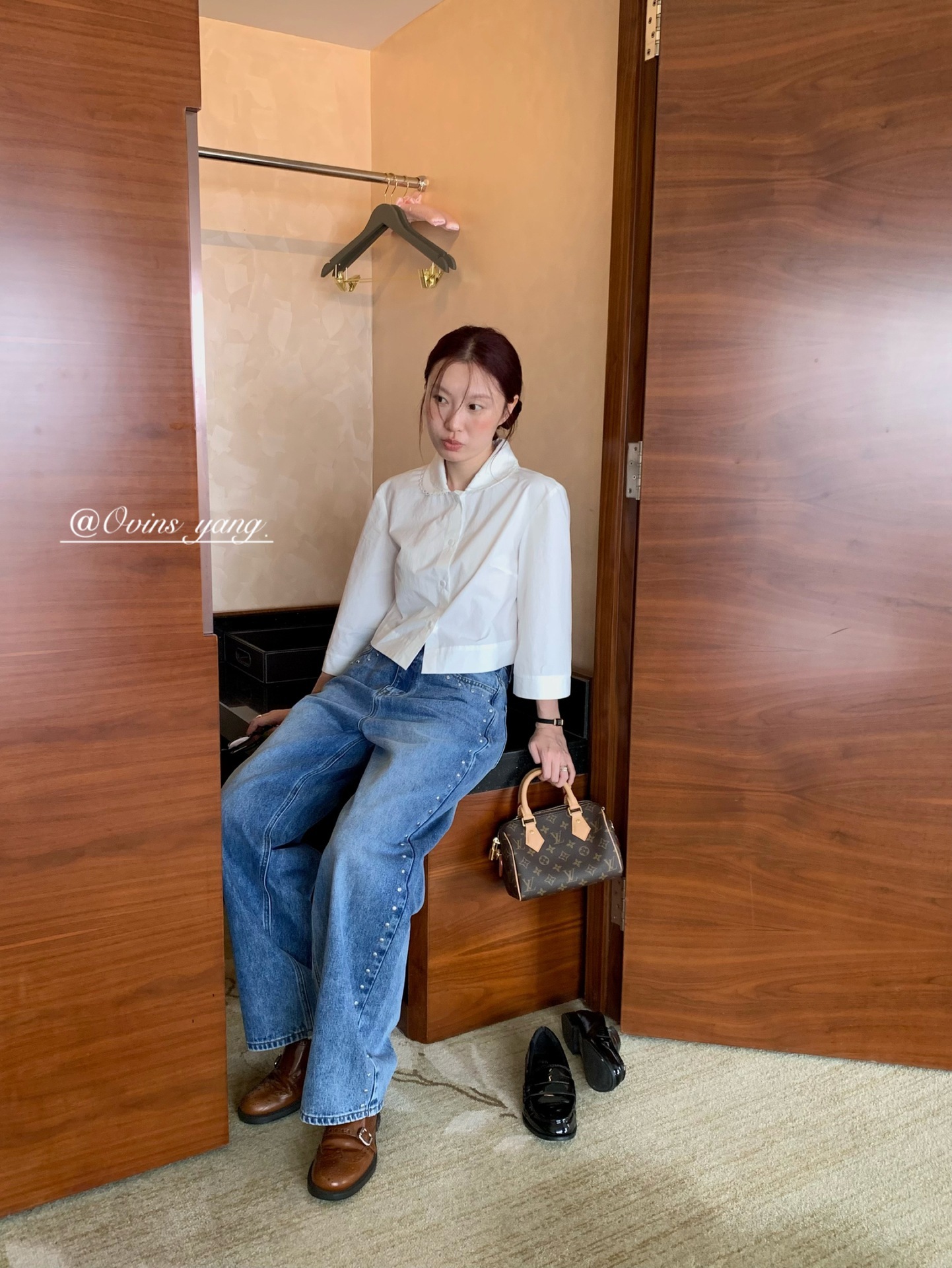 *o-ha-you*【FOY101118】藍色牛仔褲女2025秋季新款顯瘦鉚釘設計感直筒褲子
