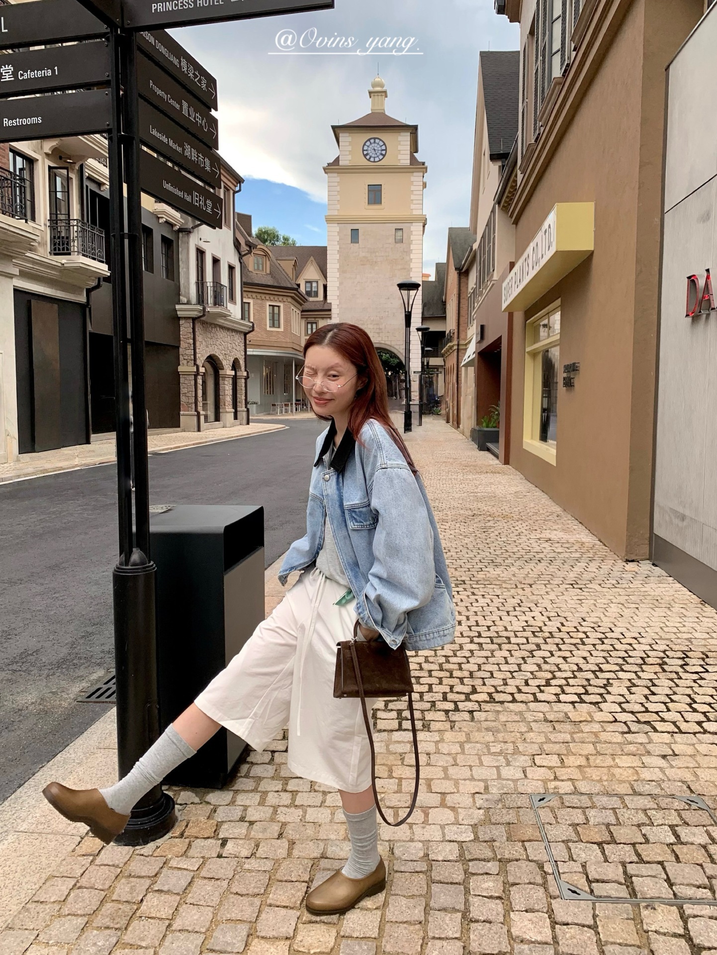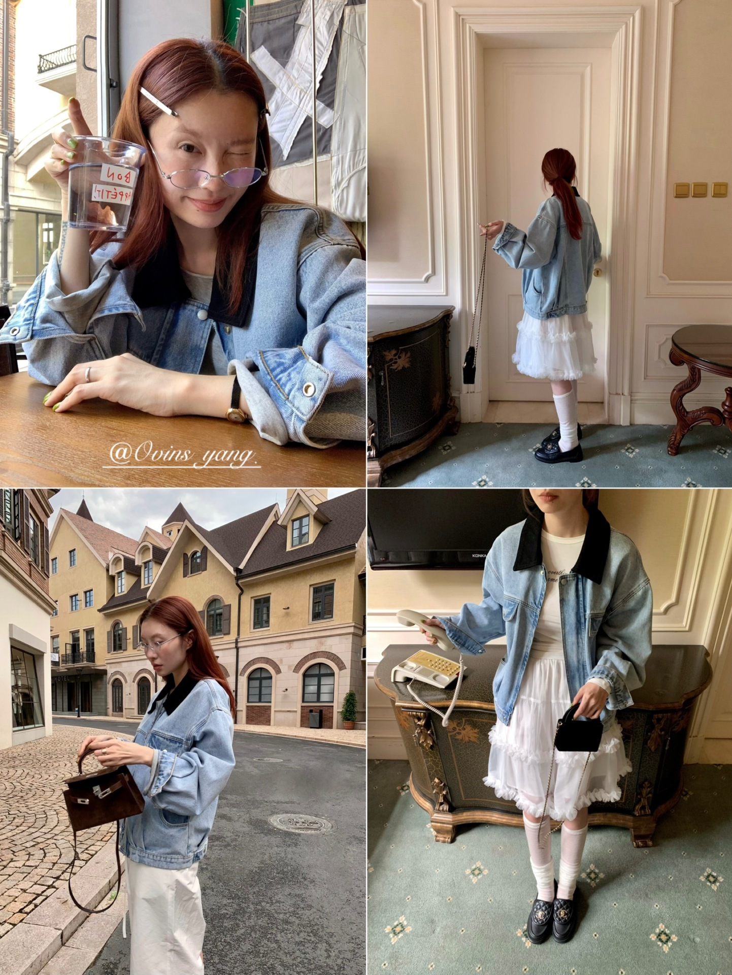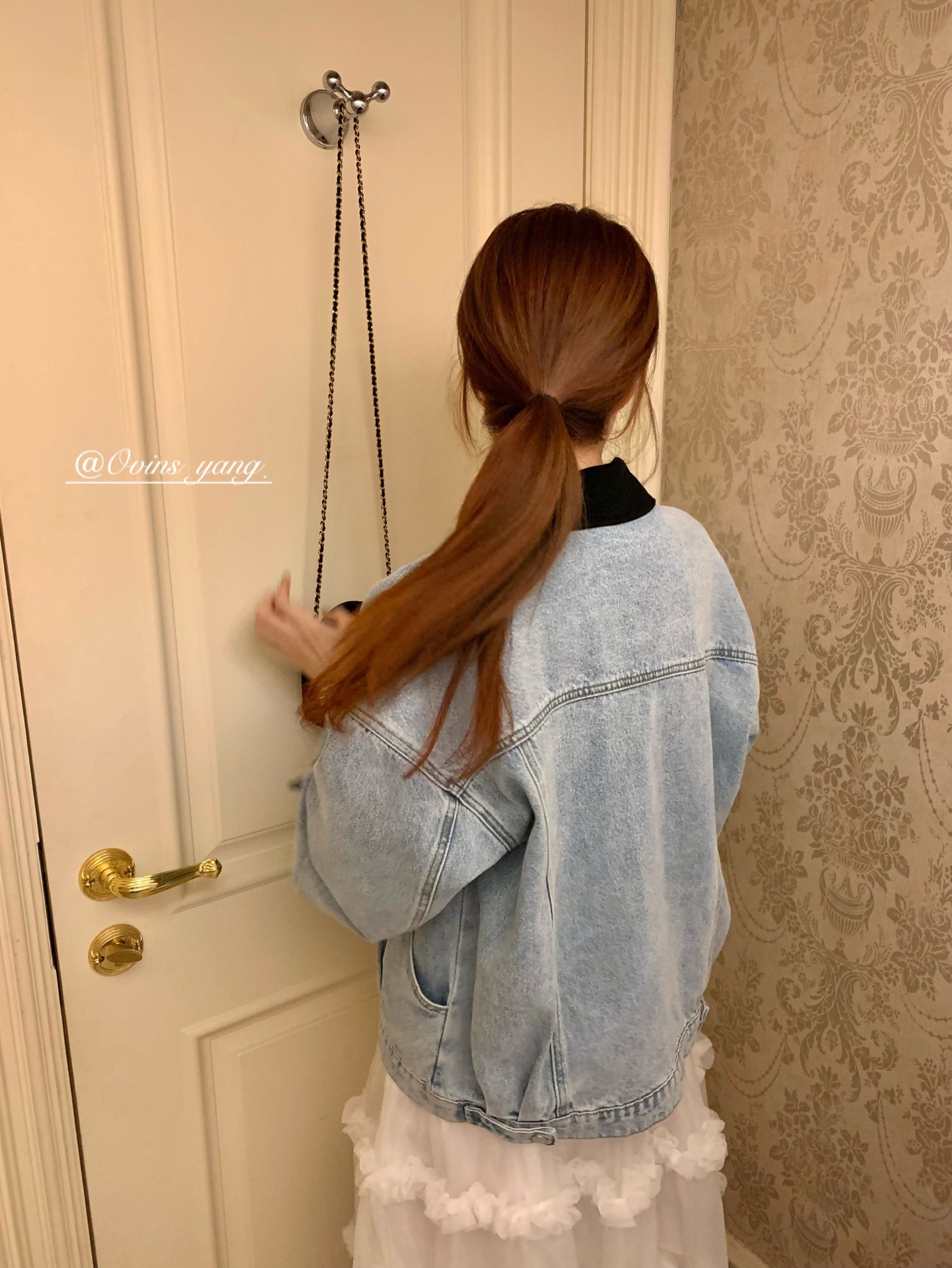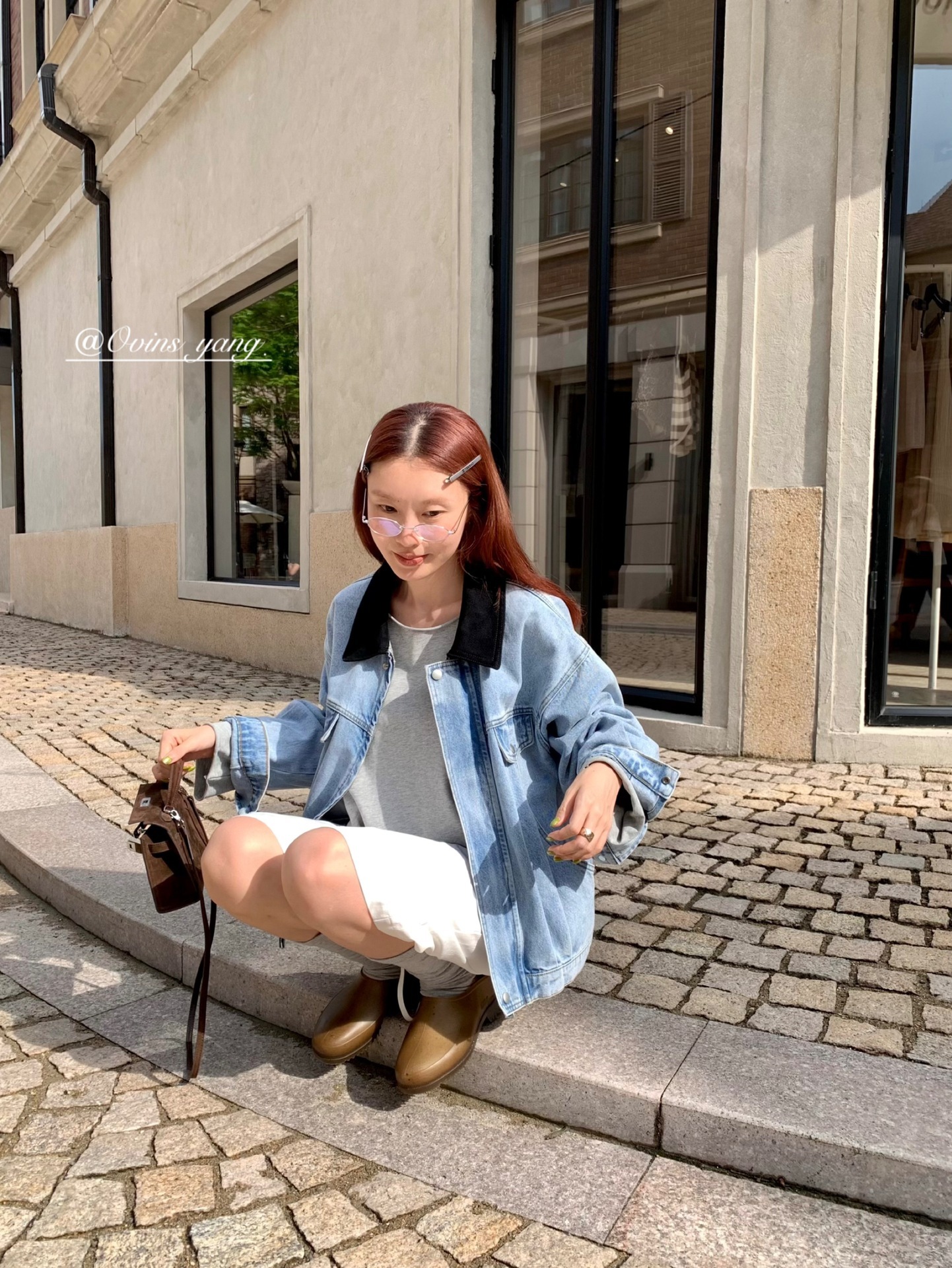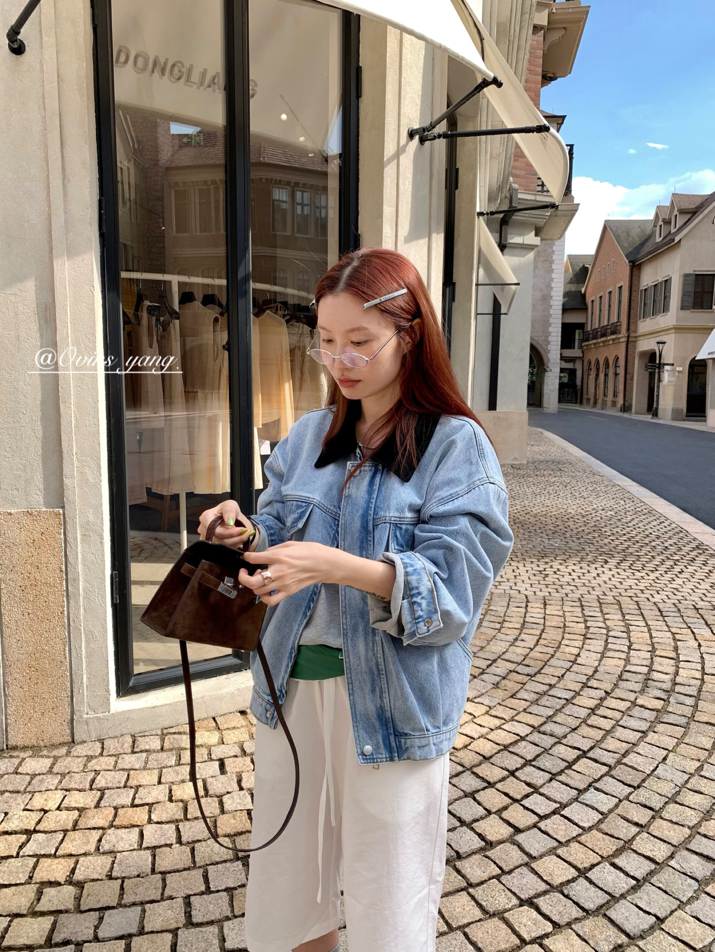 *o-ha-you*【FOY101121】秋季撞色翻領牛仔外套韓系寬鬆百搭休閒工裝夾克上衣
