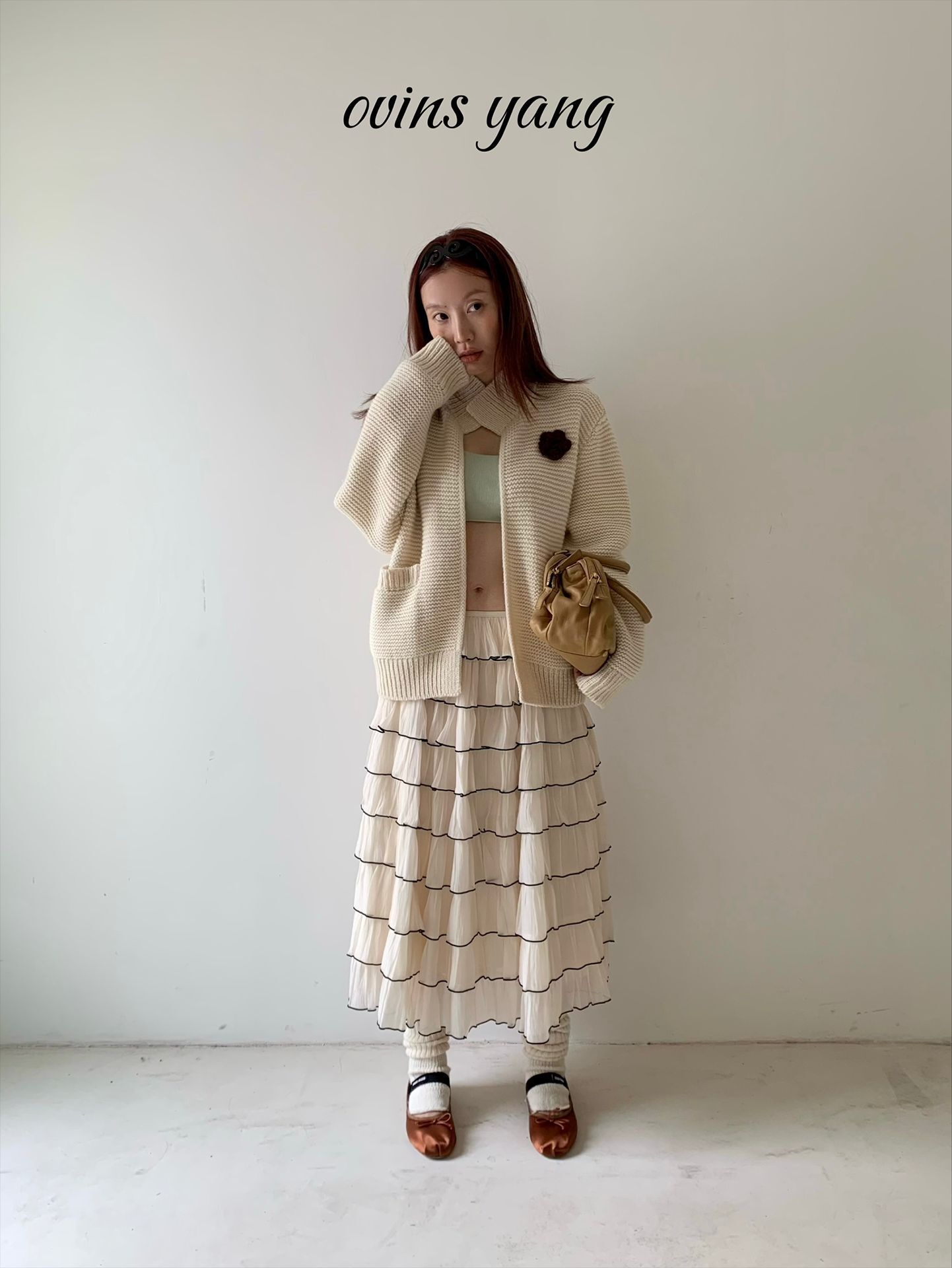 *o-ha-you*【FOY101158】立體花朵毛衣秋季甜美慵懶風高級感針織開襟衫外套