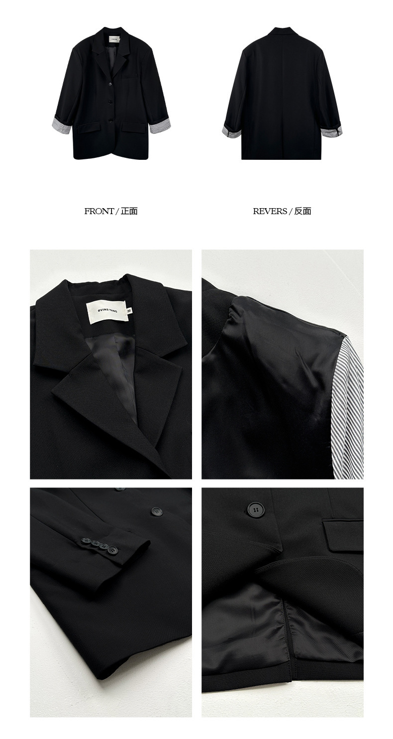 *o-ha-you*【FOY90706】豎條紋內襯西裝外套春秋寬鬆慵懶風甜美休閒西服上衣-2色