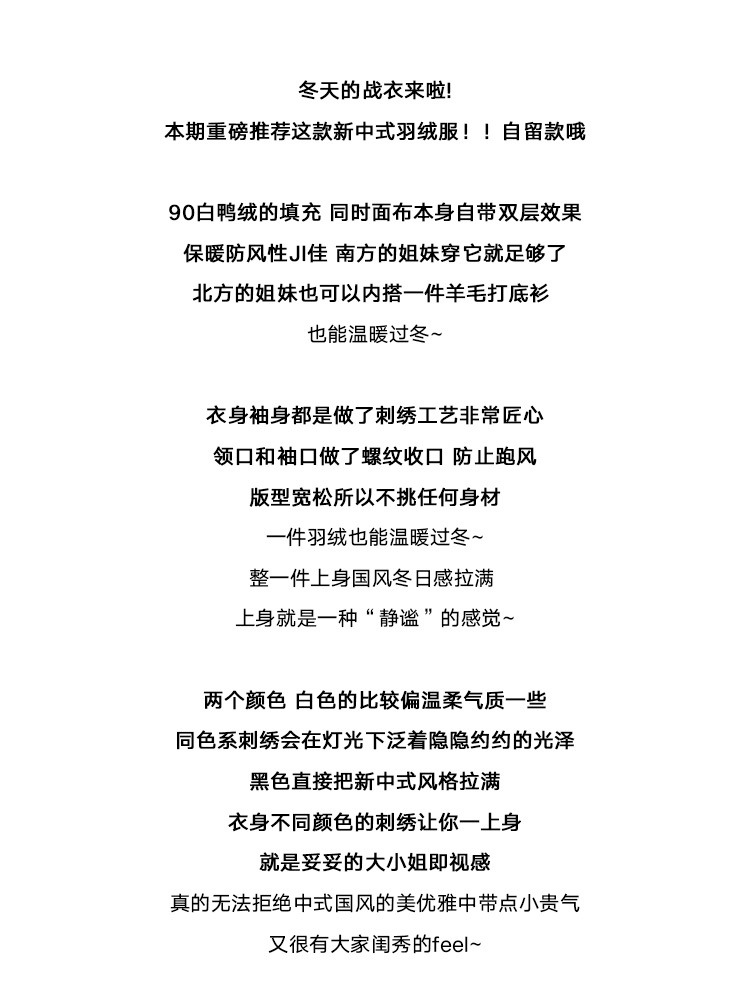 *o-ha-you*【FSJ0002】新式中國風羽絨衣冬季2023新款90%白鴨絨高級感超好看