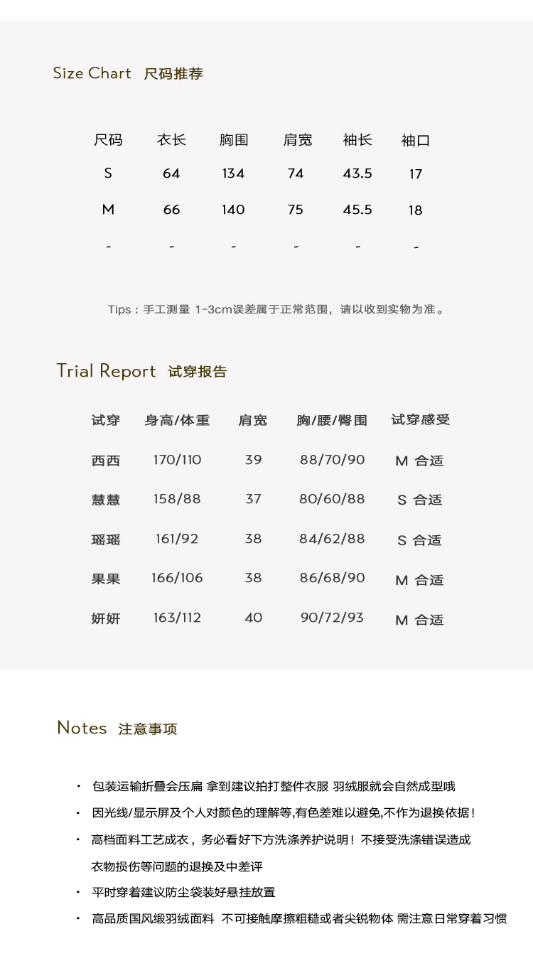 衣長/肩寬/袖長為平量,其他為一圈(單位:公分)