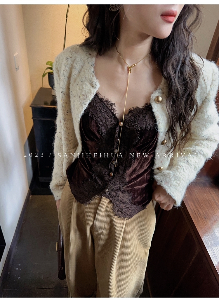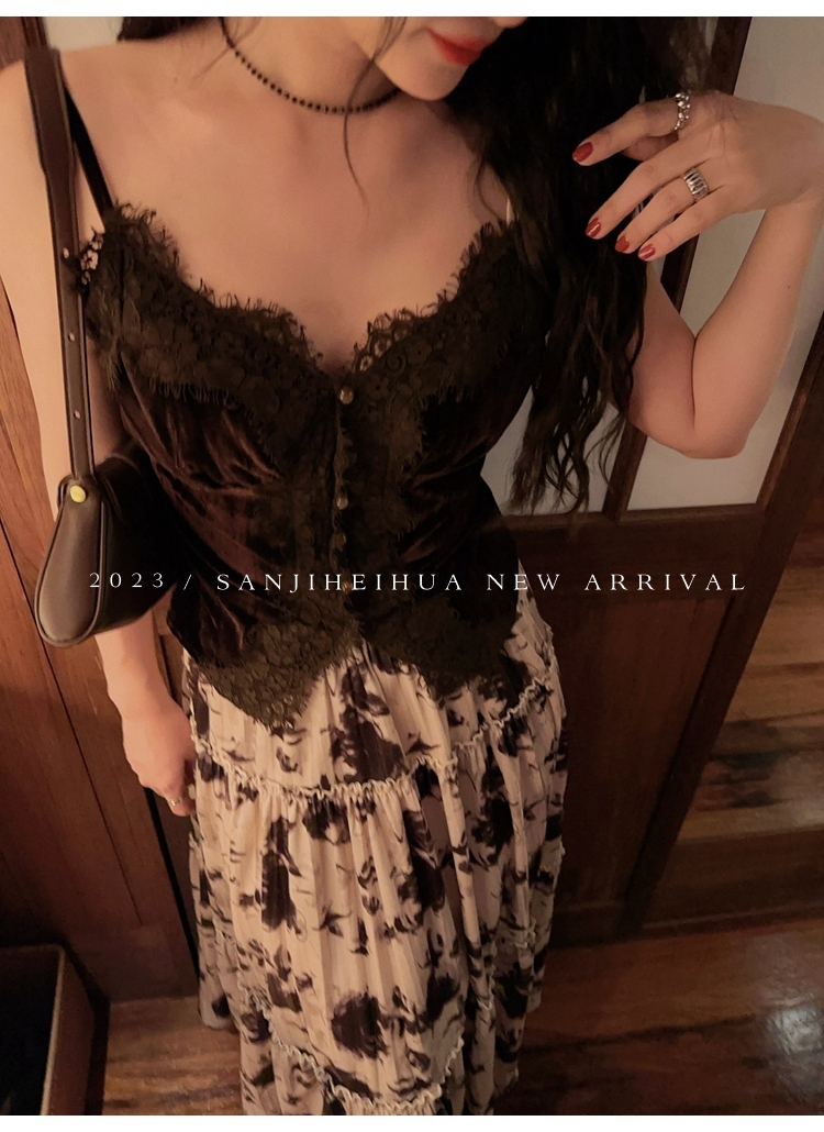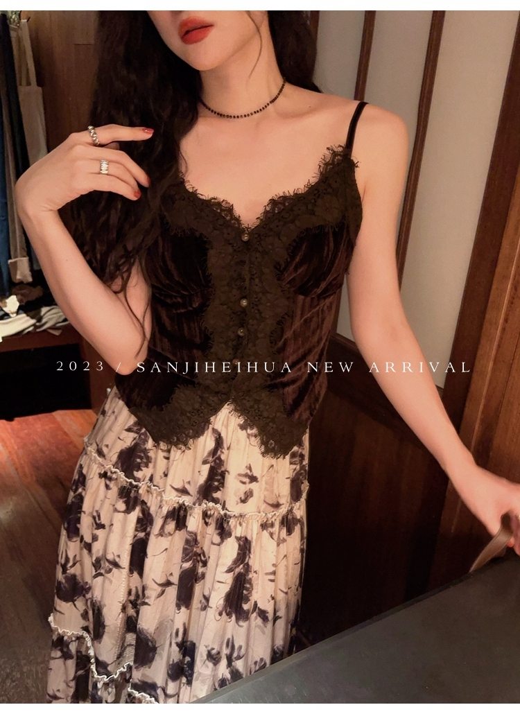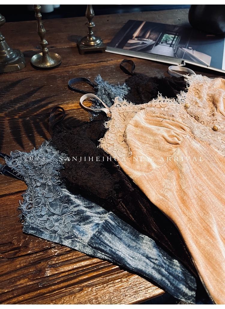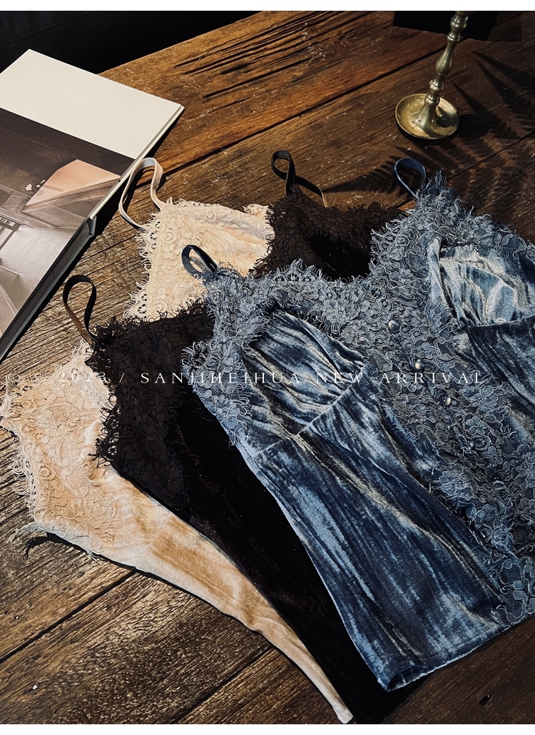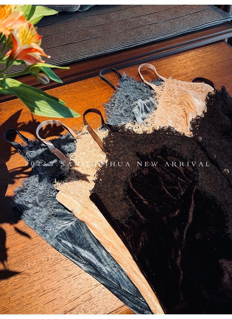 *o-ha-you*【FSJ0004】絲絨蕾絲吊帶內搭打底背心2023新款美背胸罩一體打底