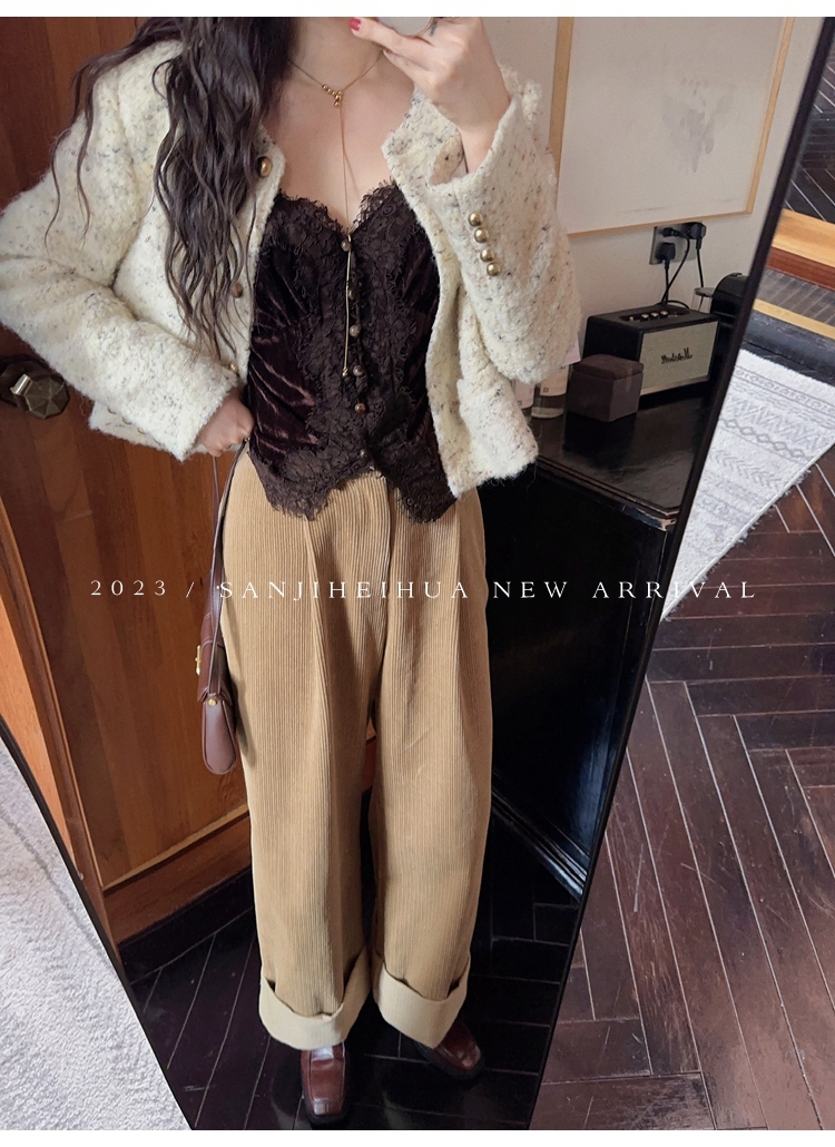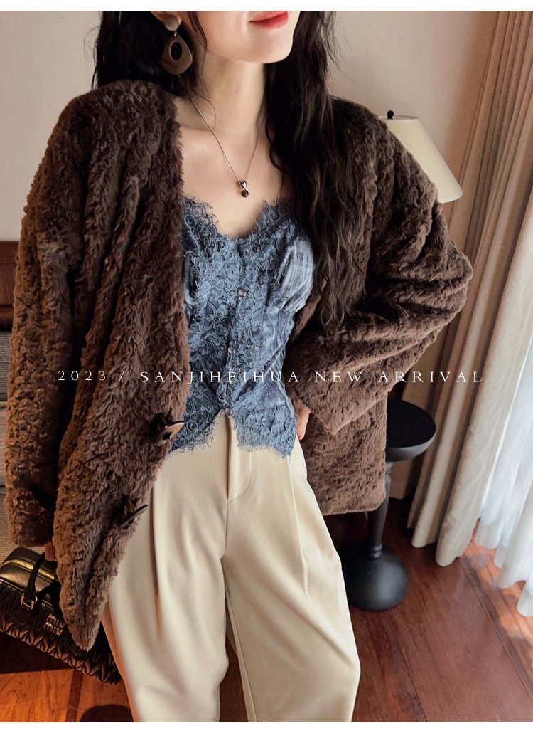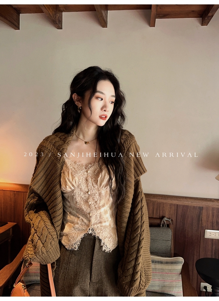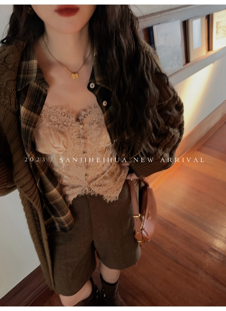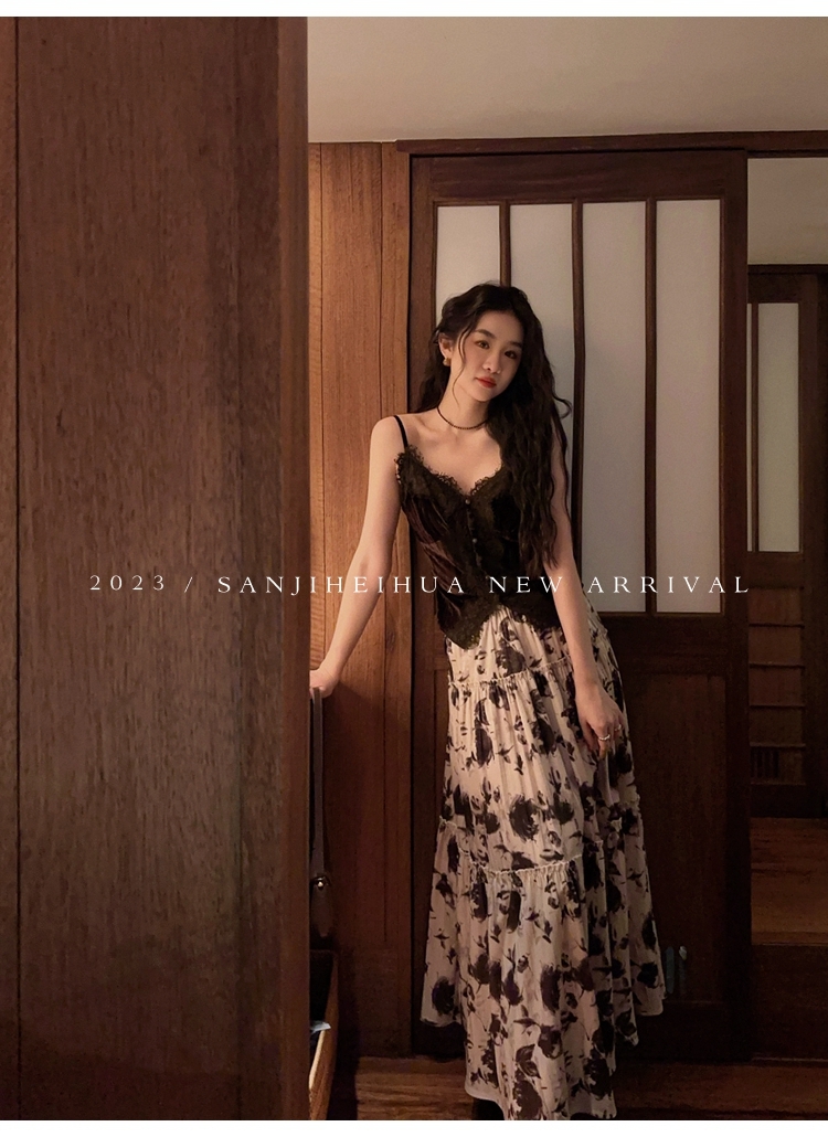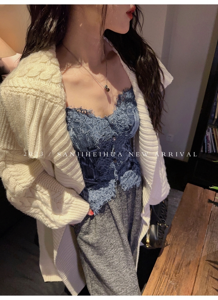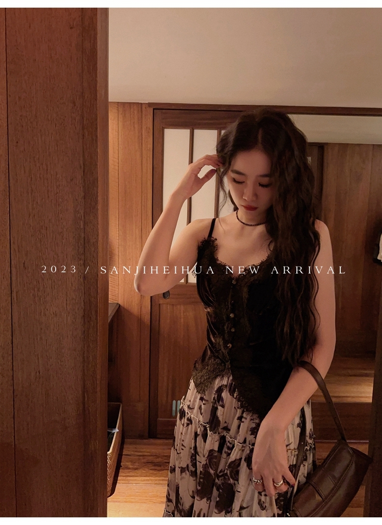*o-ha-you*【FSJ0004】絲絨蕾絲吊帶內搭打底背心2023新款美背胸罩一體打底
