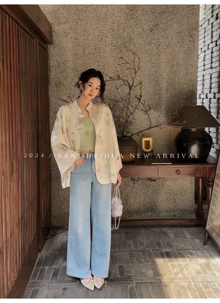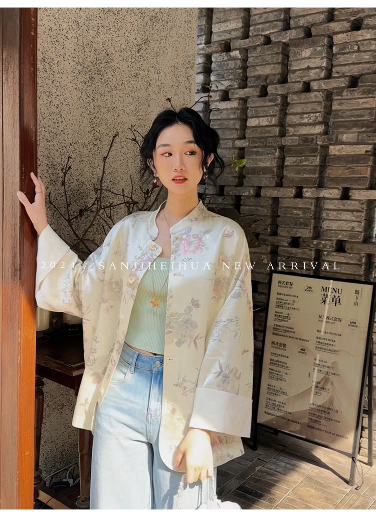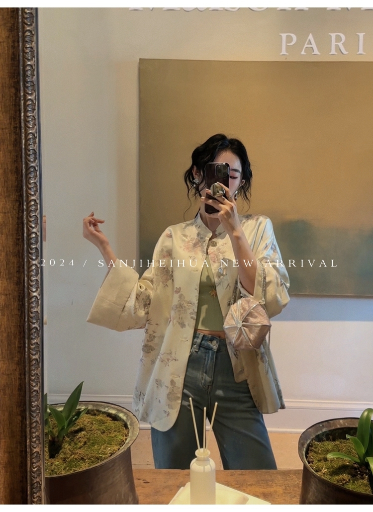 *o-ha-you*【FSJ0042】新中式花卉薄款短外套女款2024新款爆款春國風上衣
