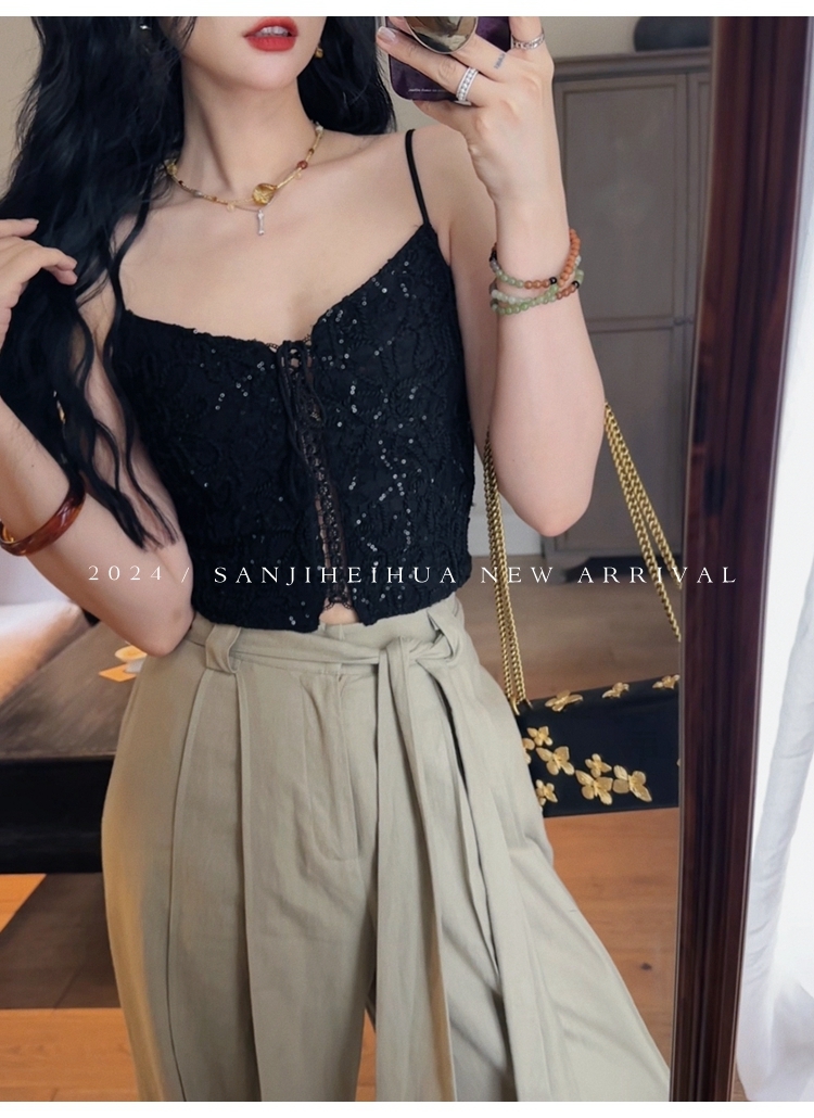 *o-ha-you*【FSJ0043】鏤空蕾絲吊帶背心內搭夏季外穿打底2024新款美背上衣-2色