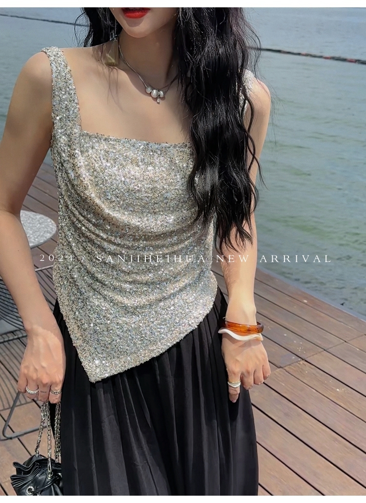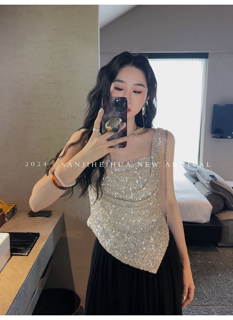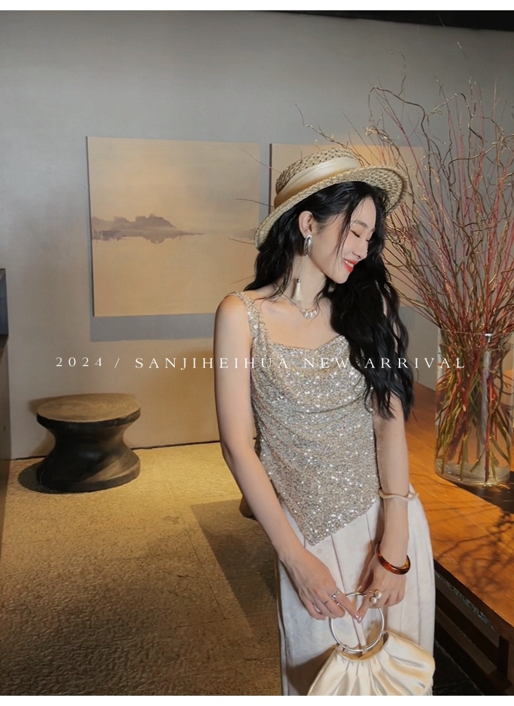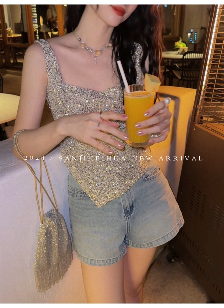 *o-ha-you*【FSJ0058】【星河】不規則閃閃吊帶背心