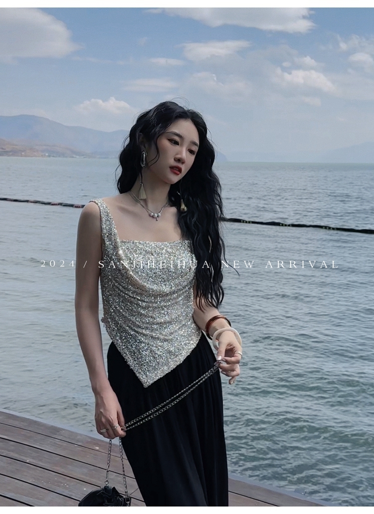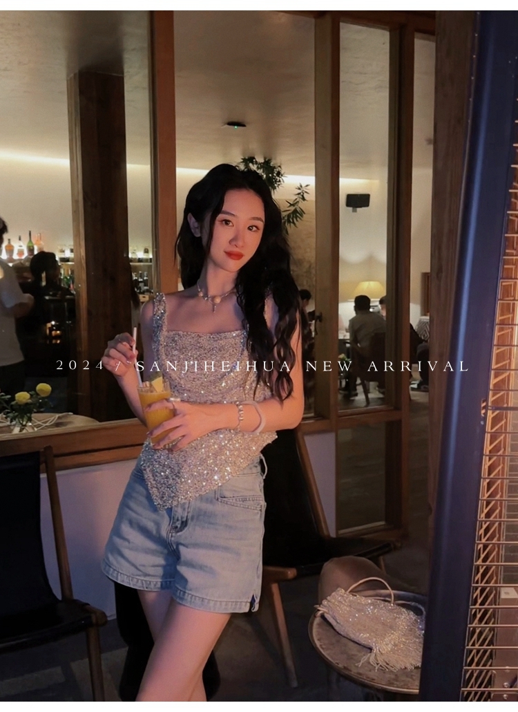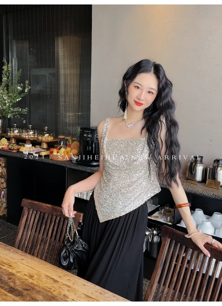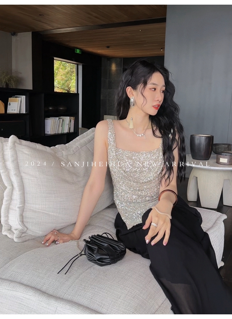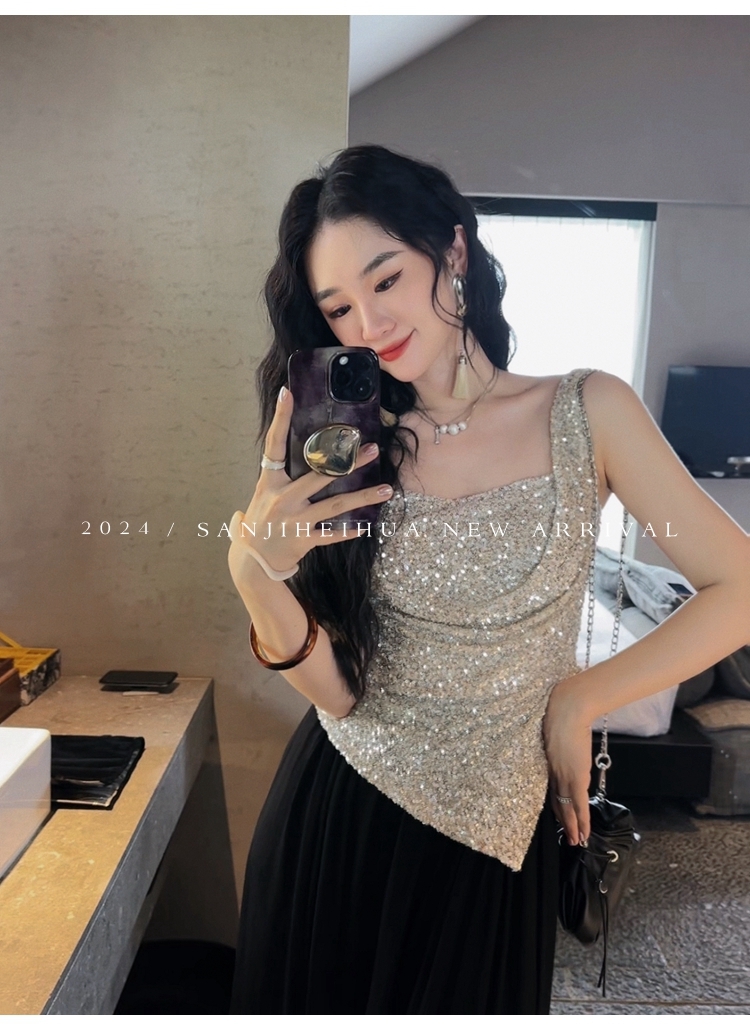 *o-ha-you*【FSJ0058】【星河】不規則閃閃吊帶背心