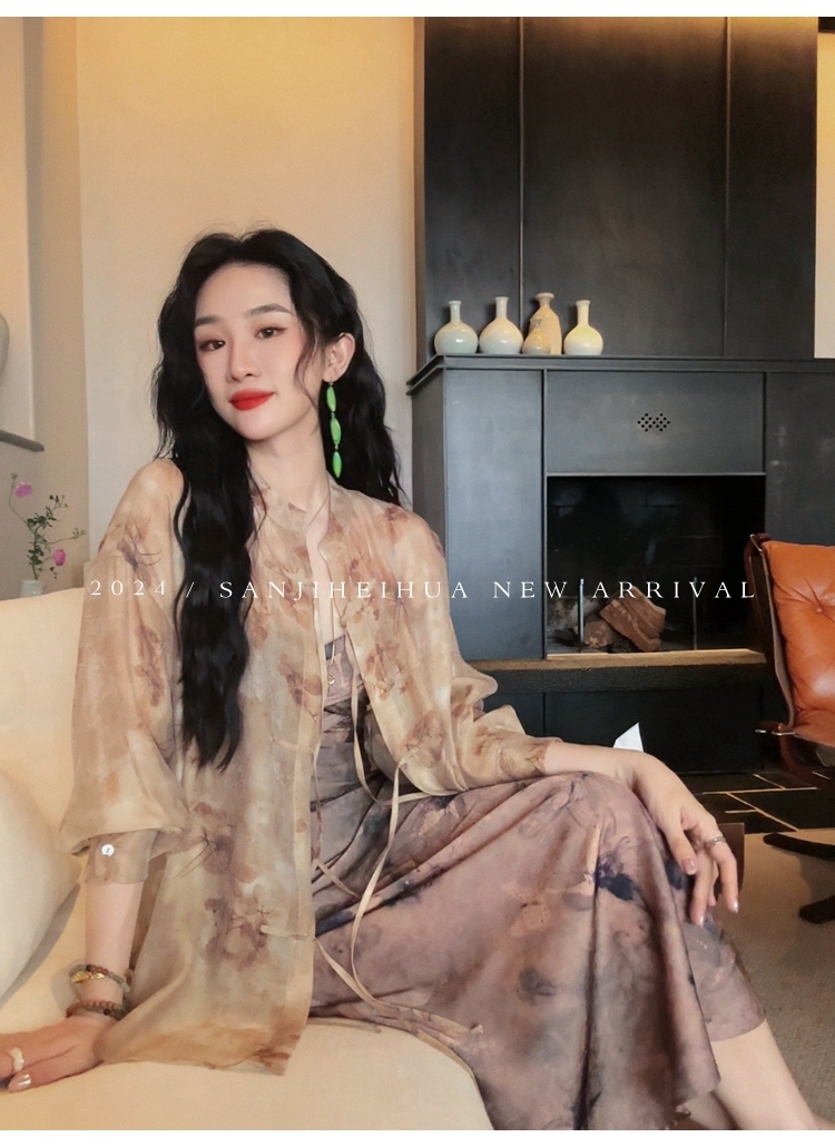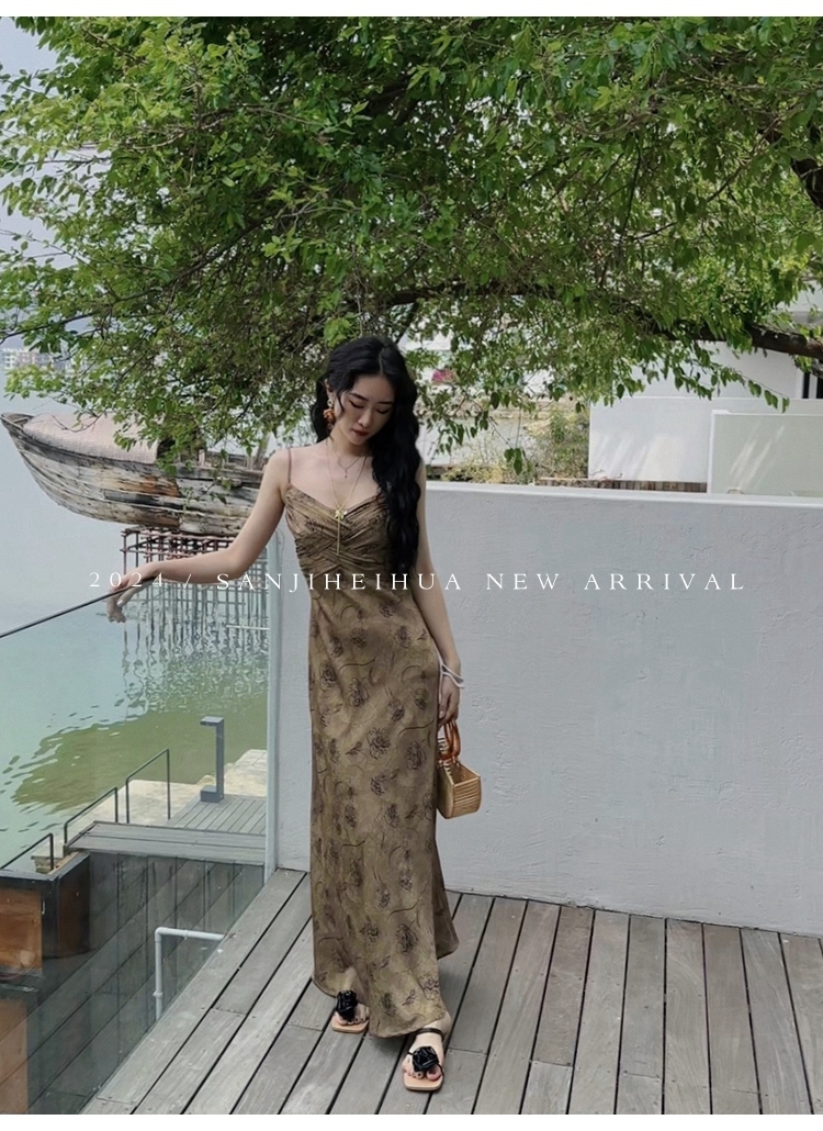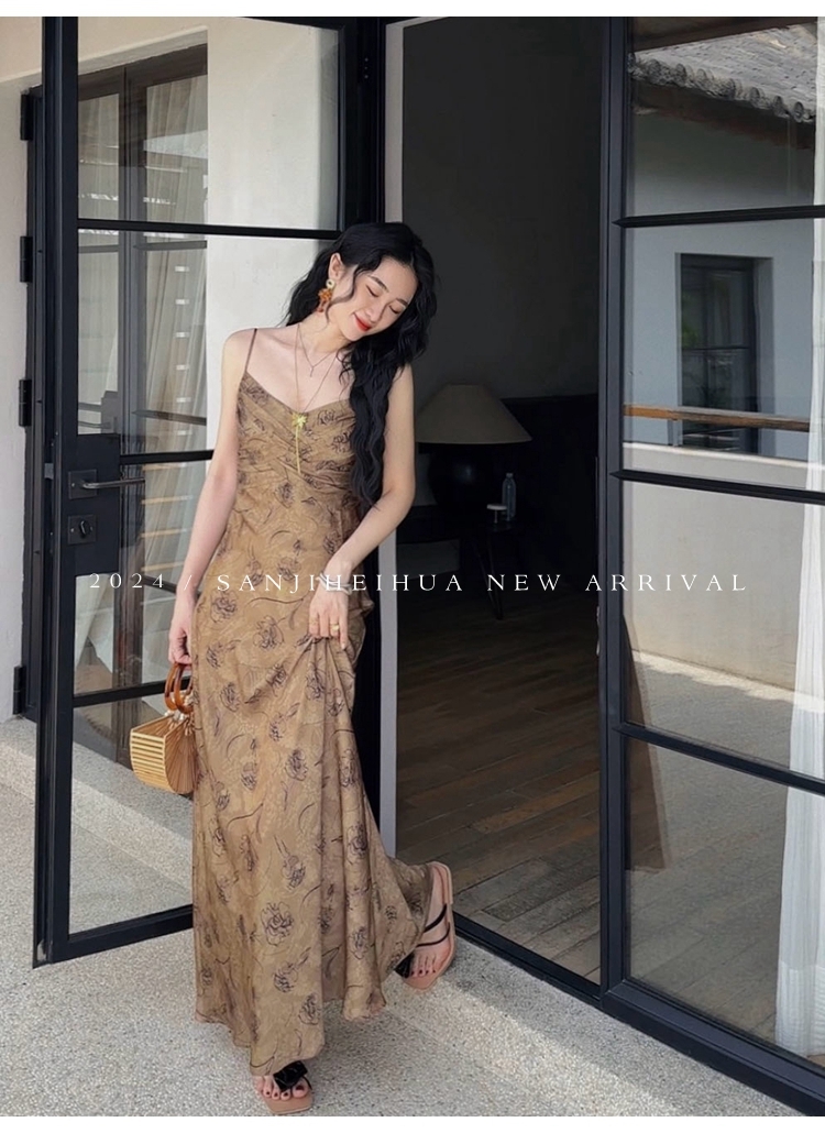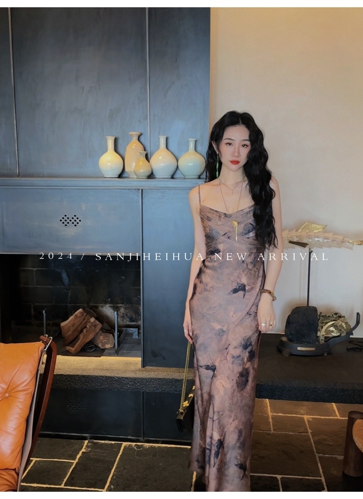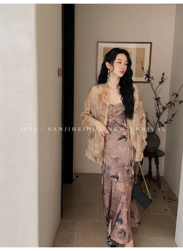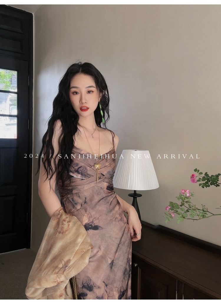 *o-ha-you*【FSJ0068】新中式國風連衣裙2024新夏季吊帶裙南法度假風氣質洋裝-2色