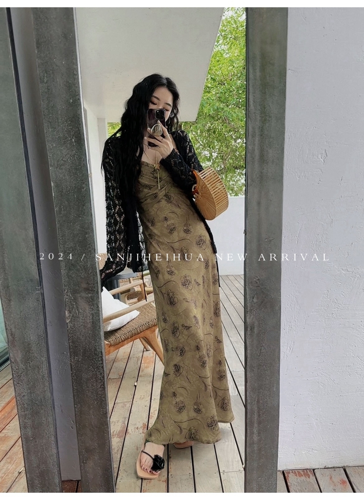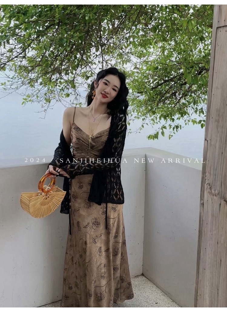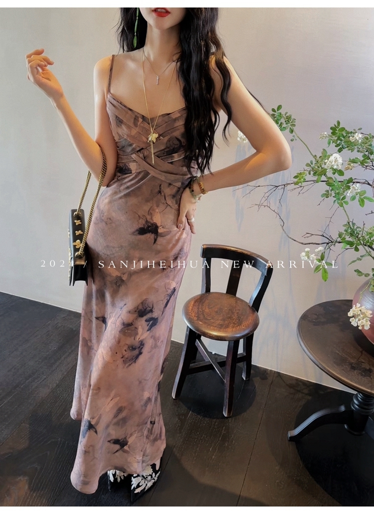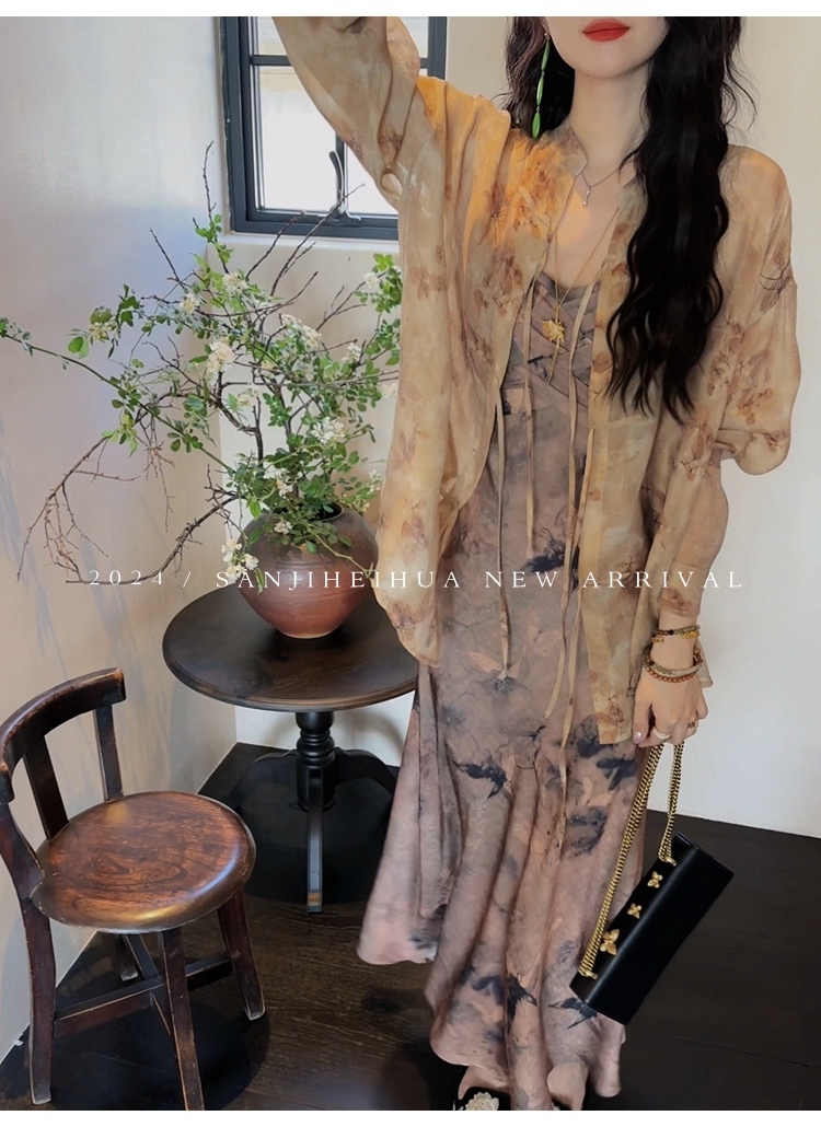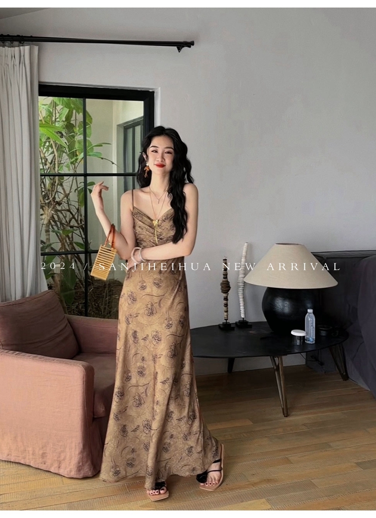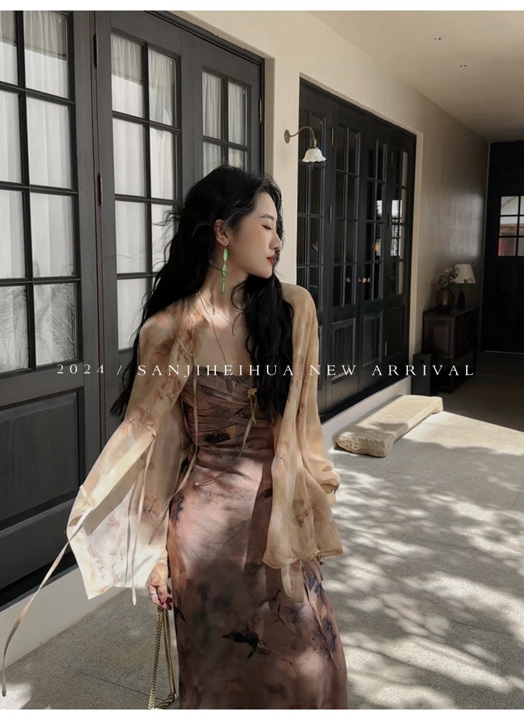 *o-ha-you*【FSJ0068】新中式國風連衣裙2024新夏季吊帶裙南法度假風氣質洋裝-2色