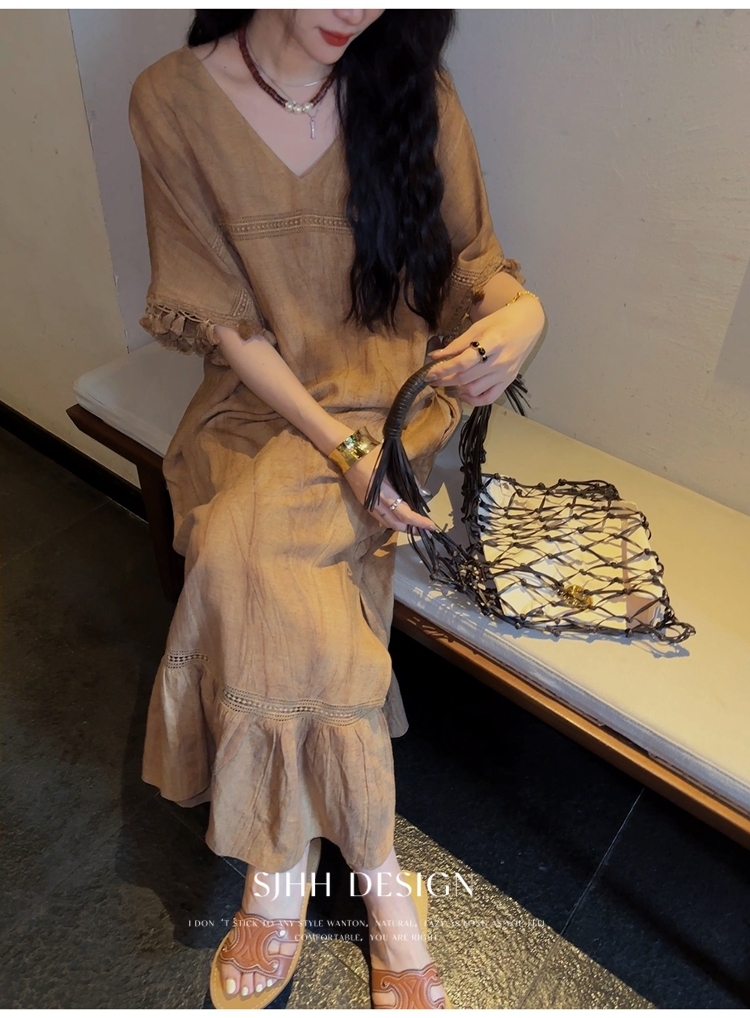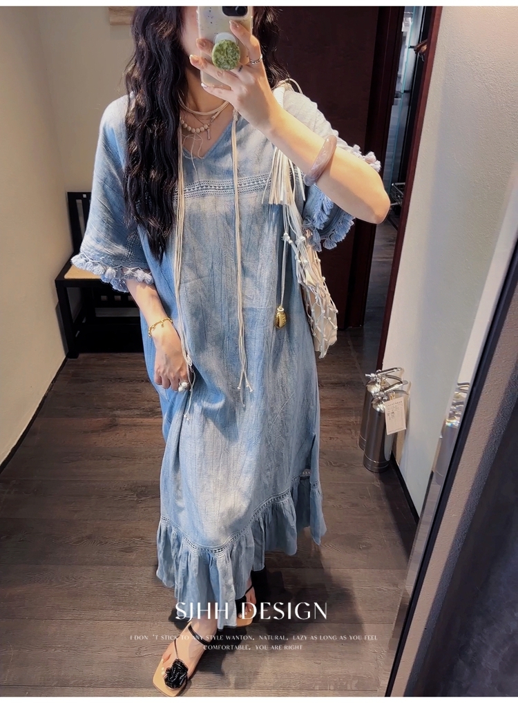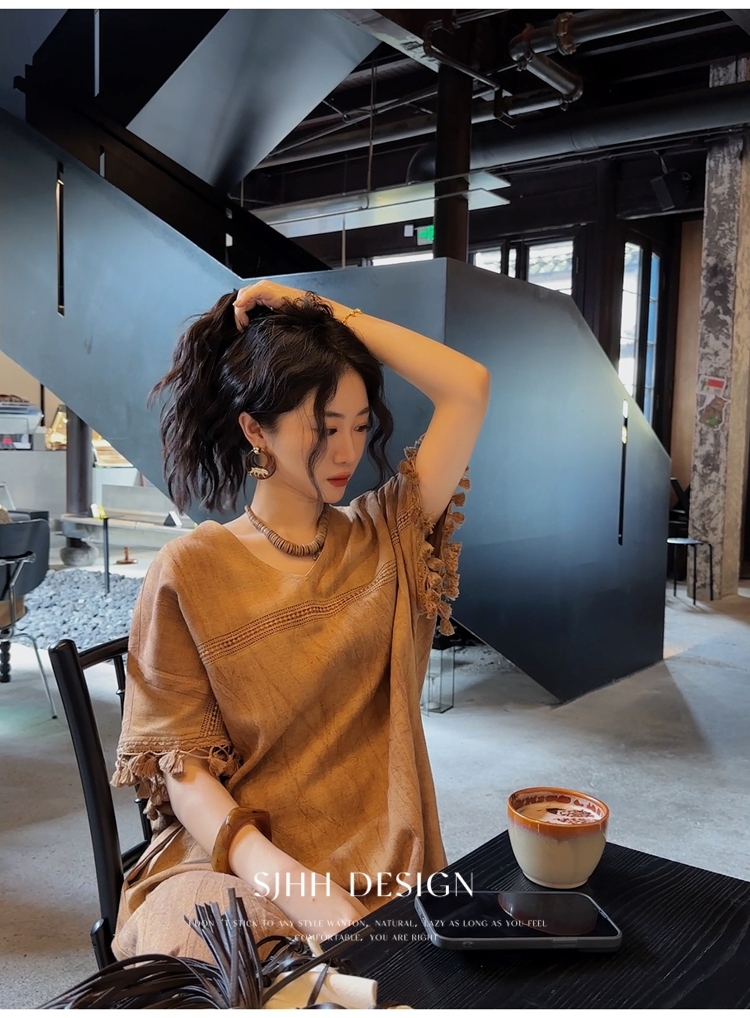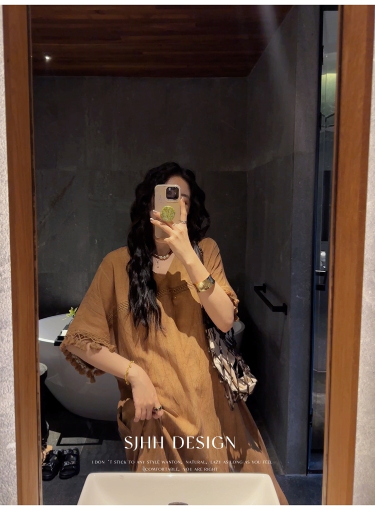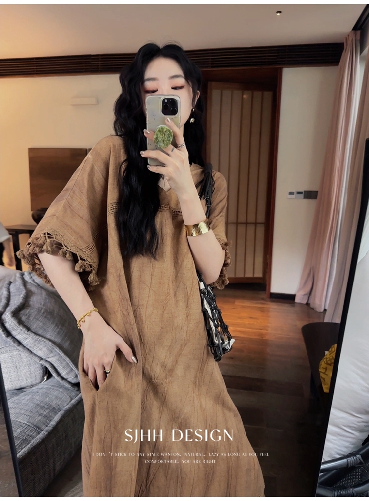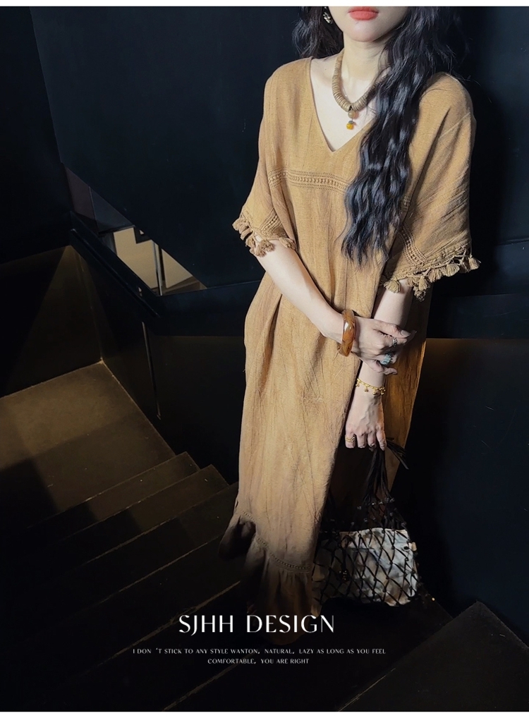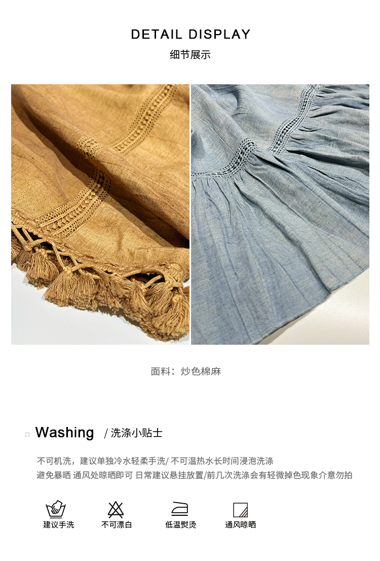 *o-ha-you*【FSJ0080】【午後漫步】慵懶風流蘇邊炒色裙洋裝