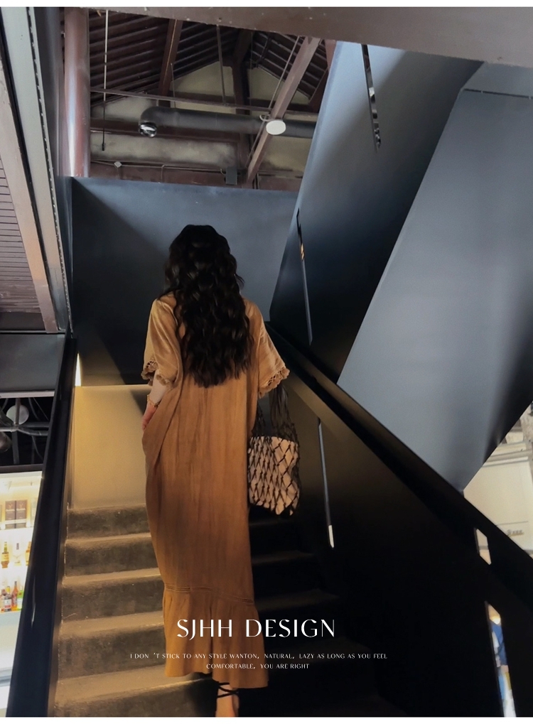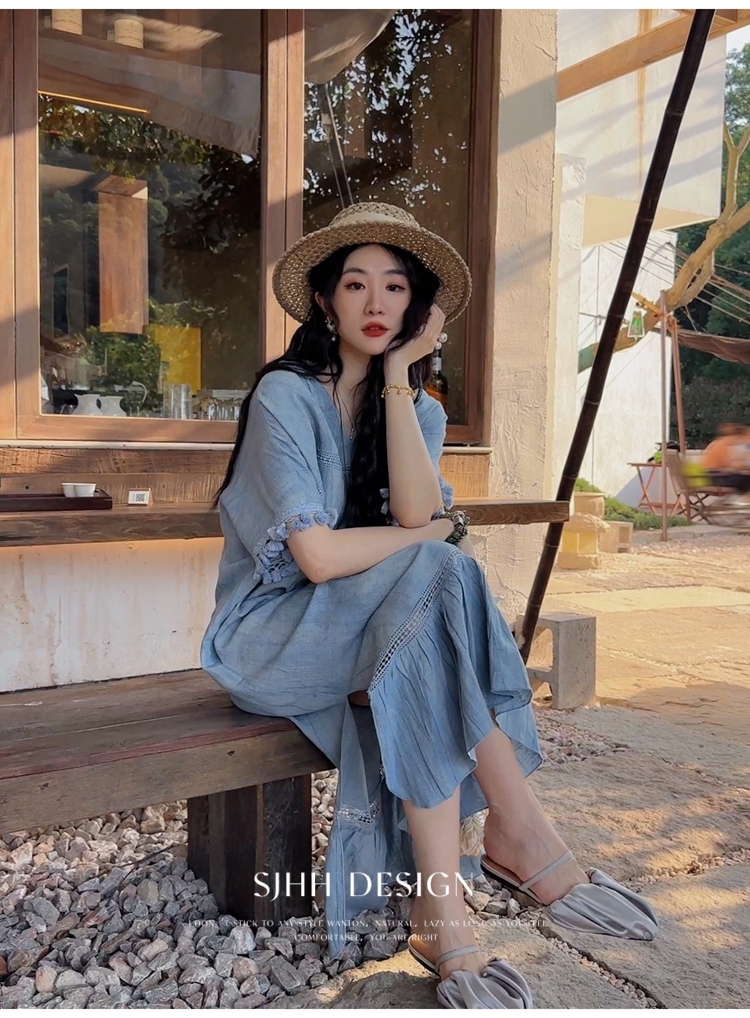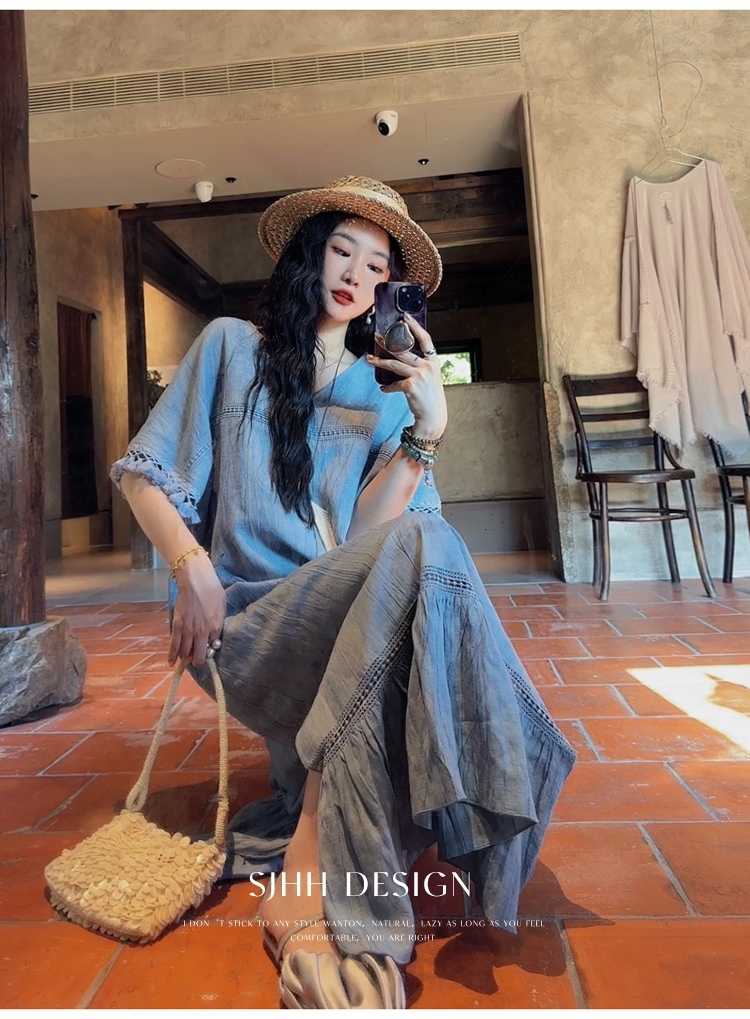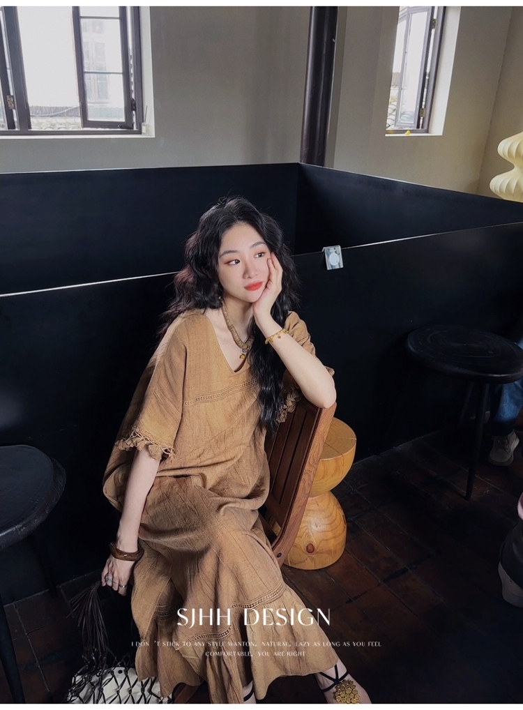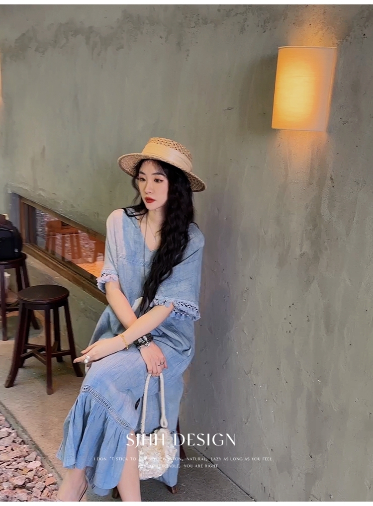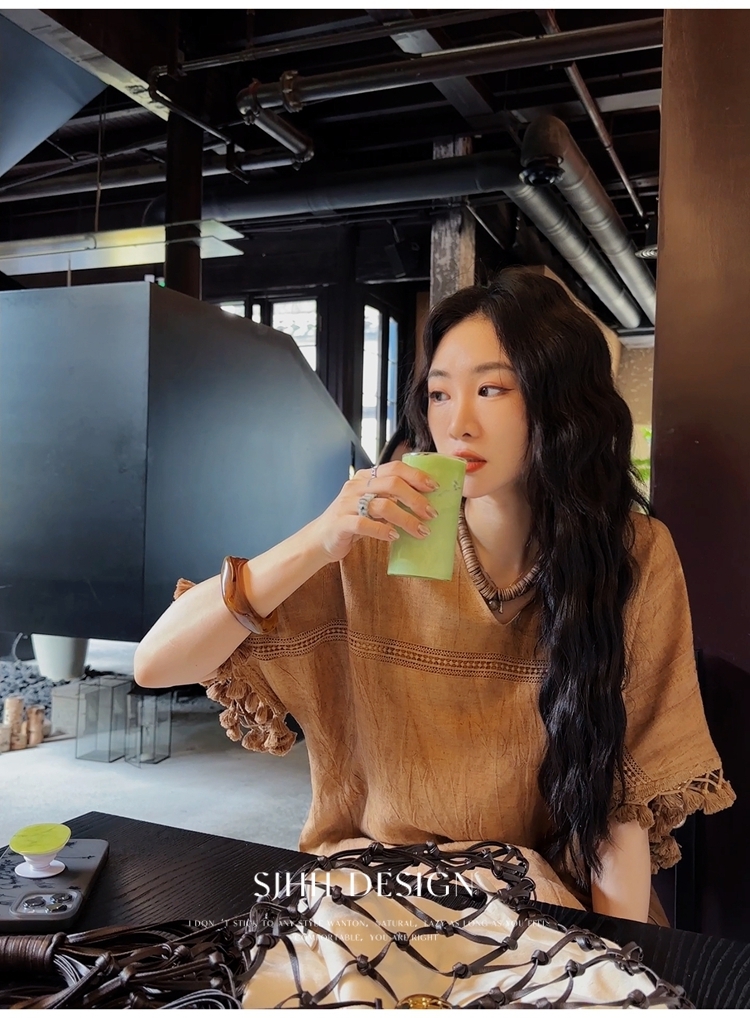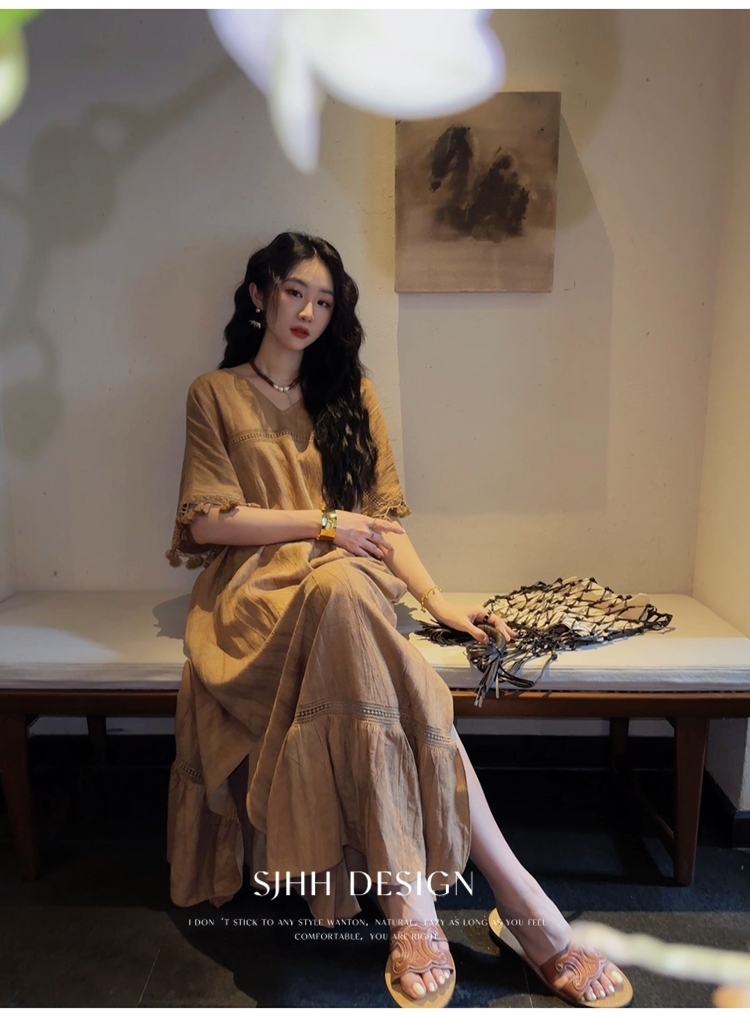 *o-ha-you*【FSJ0080】【午後漫步】慵懶風流蘇邊炒色裙洋裝