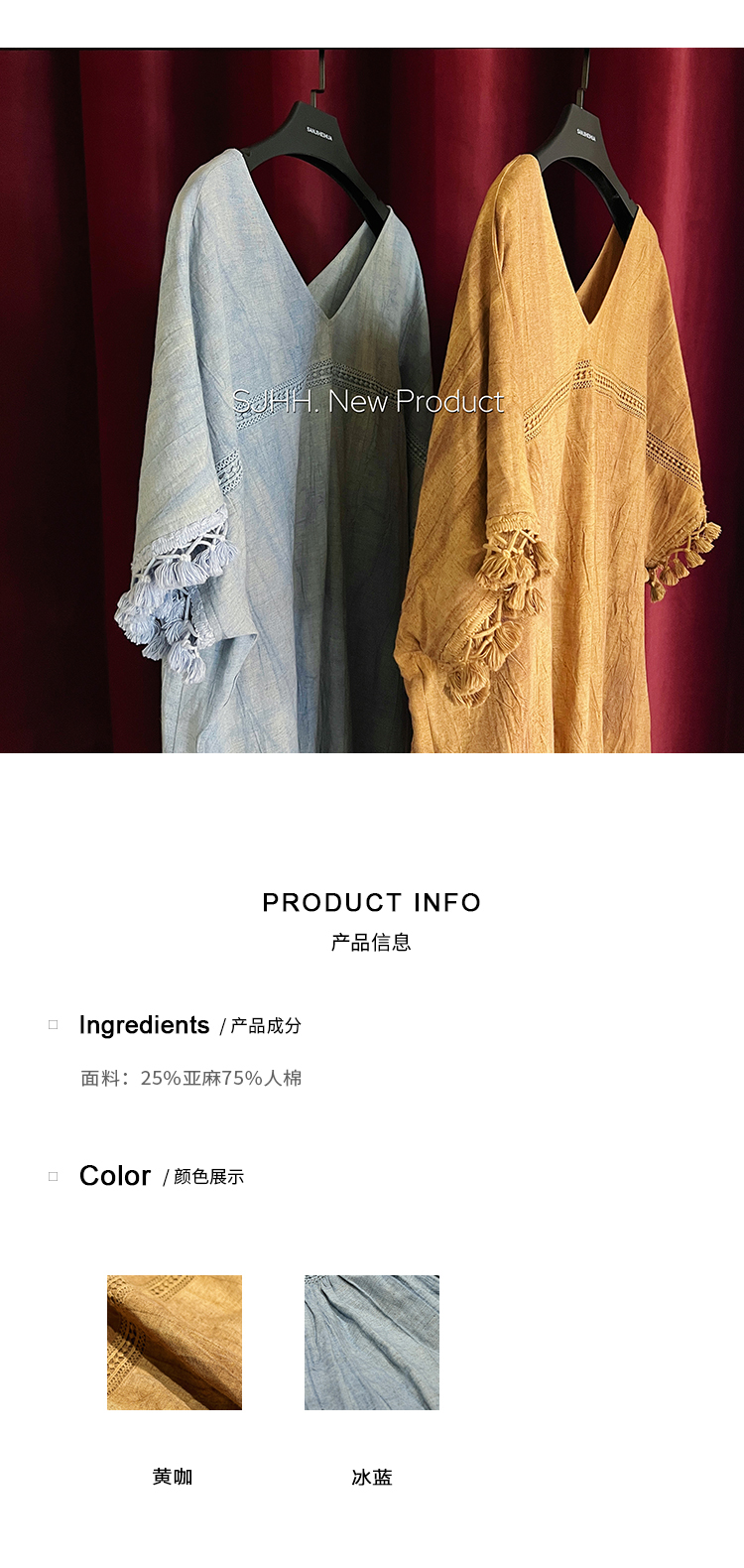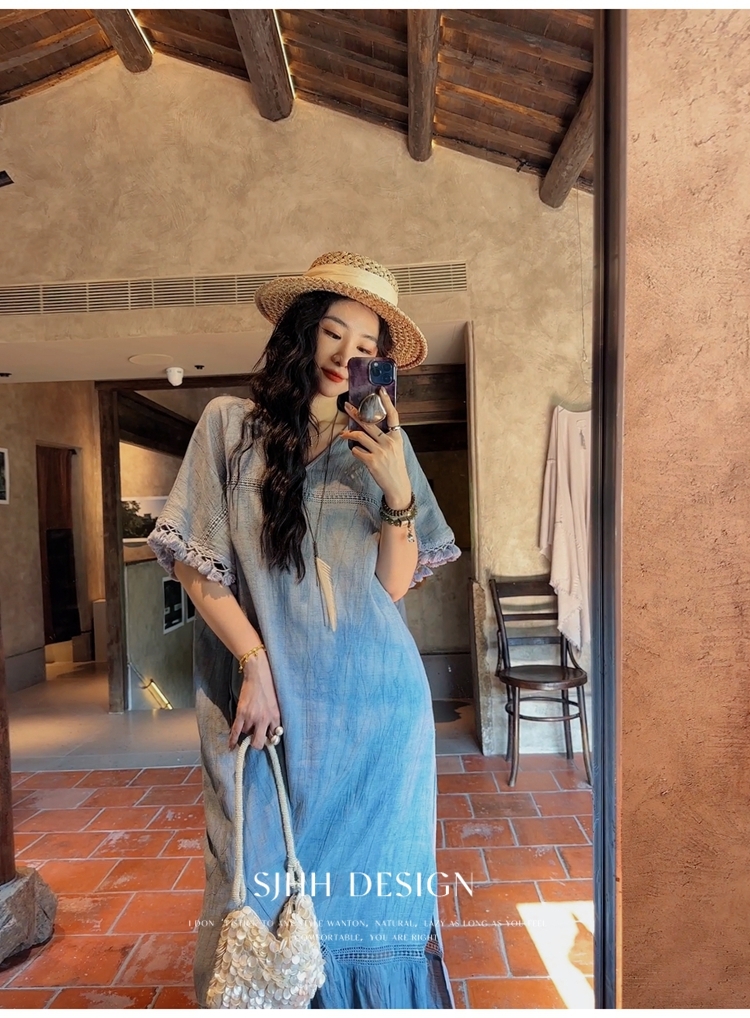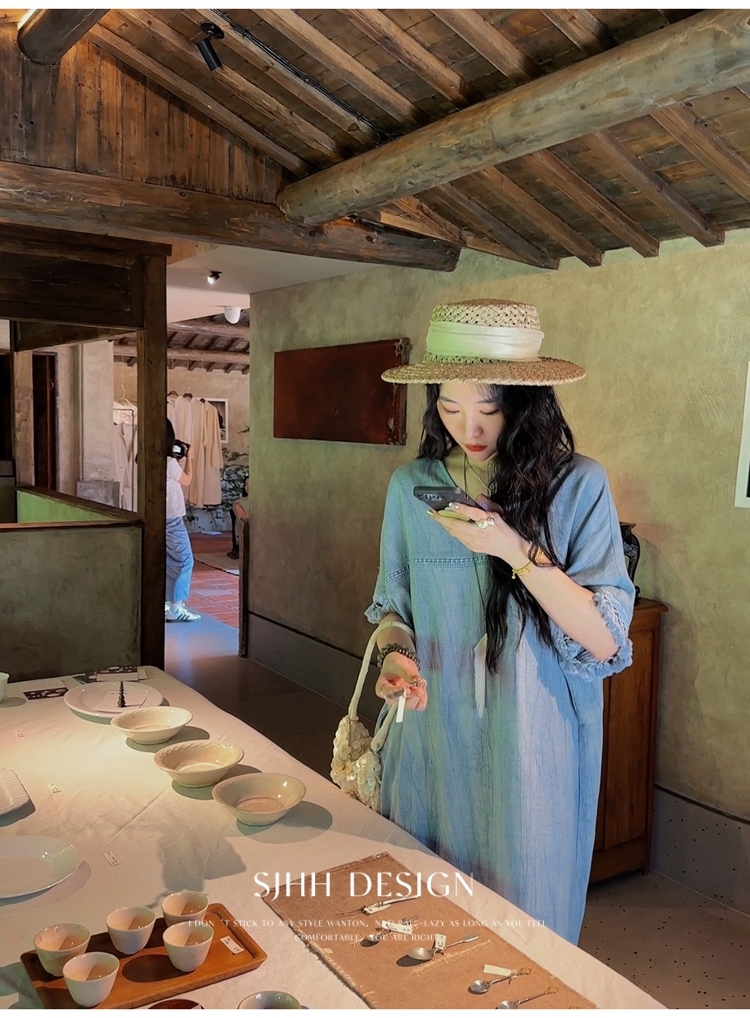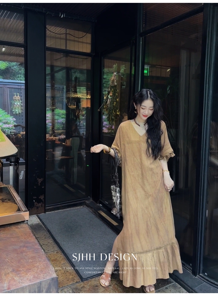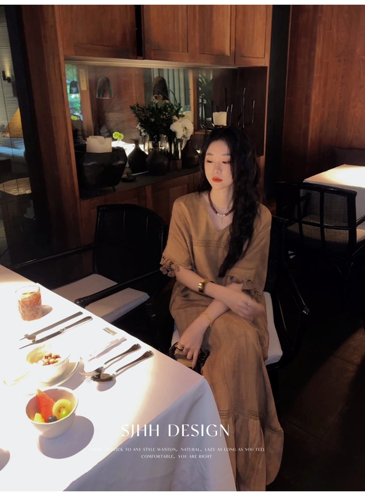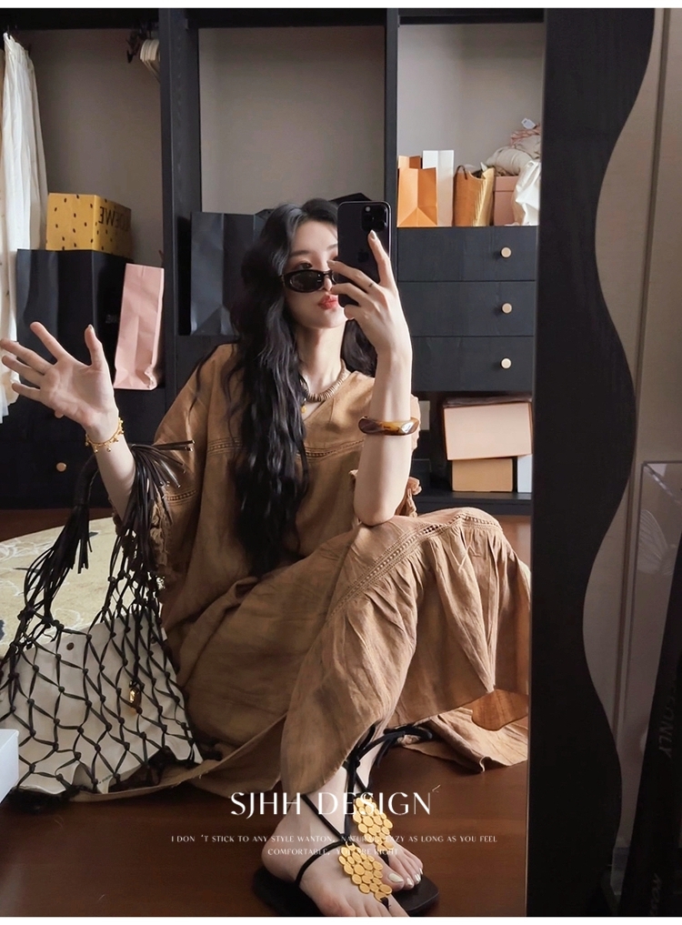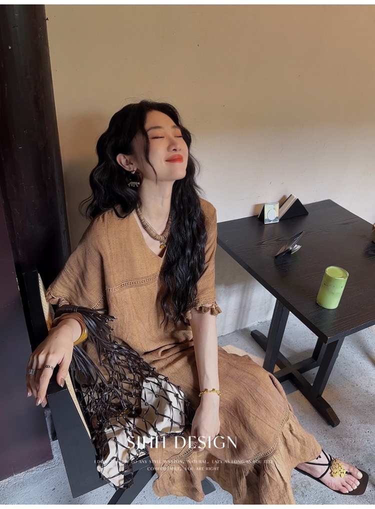 *o-ha-you*【FSJ0080】【午後漫步】慵懶風流蘇邊炒色裙洋裝