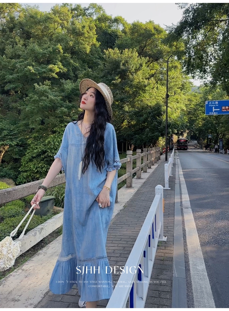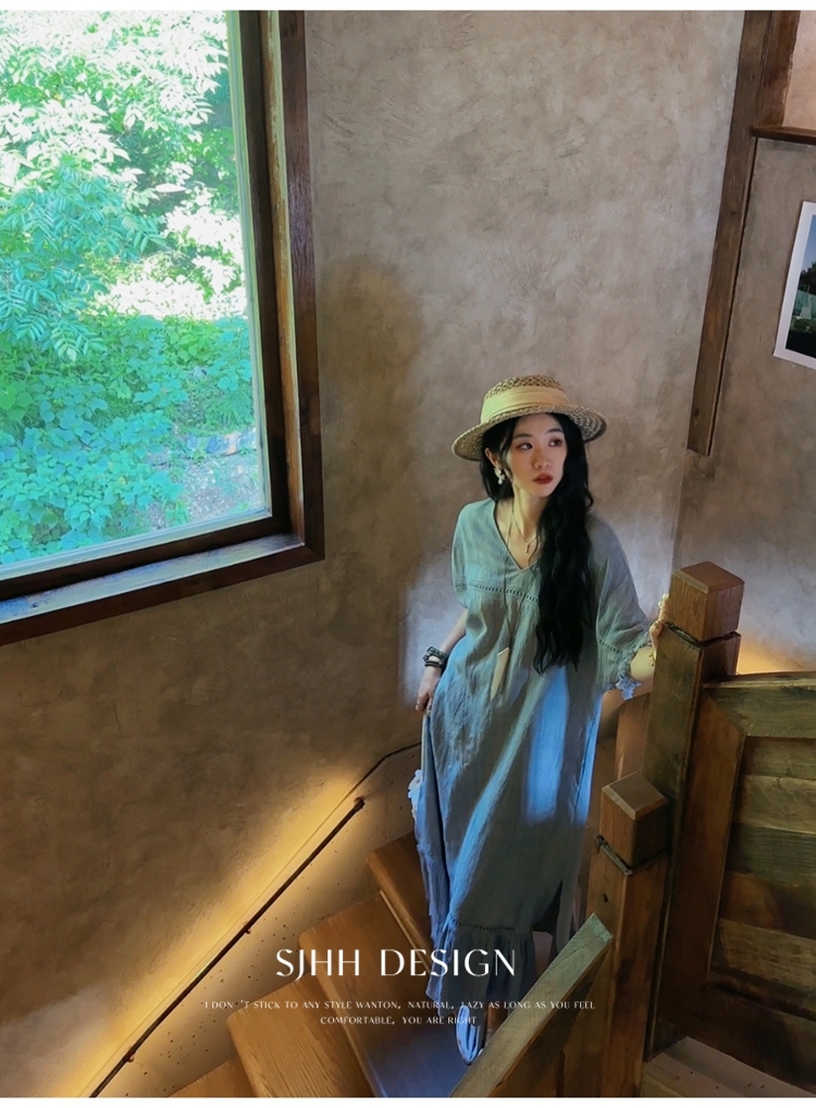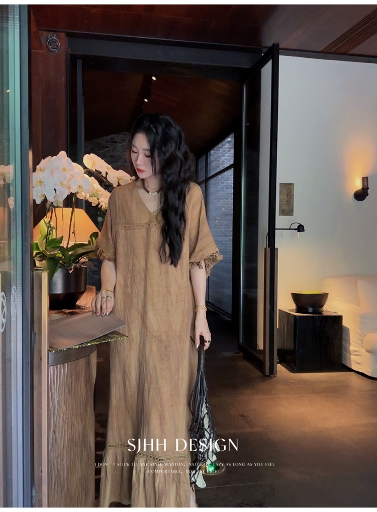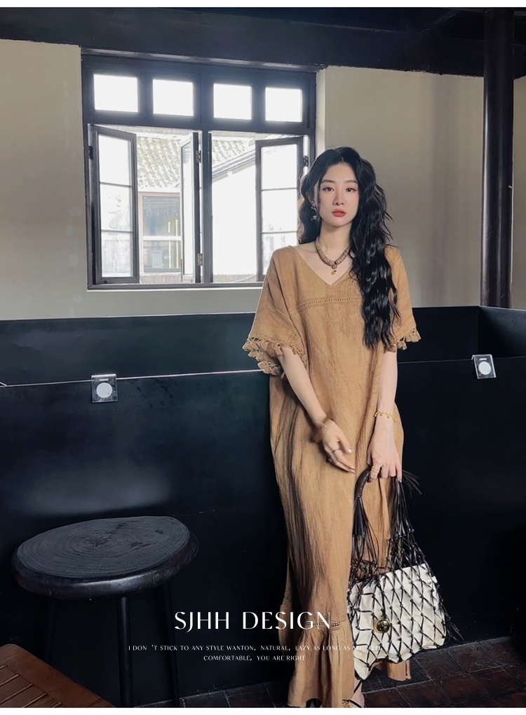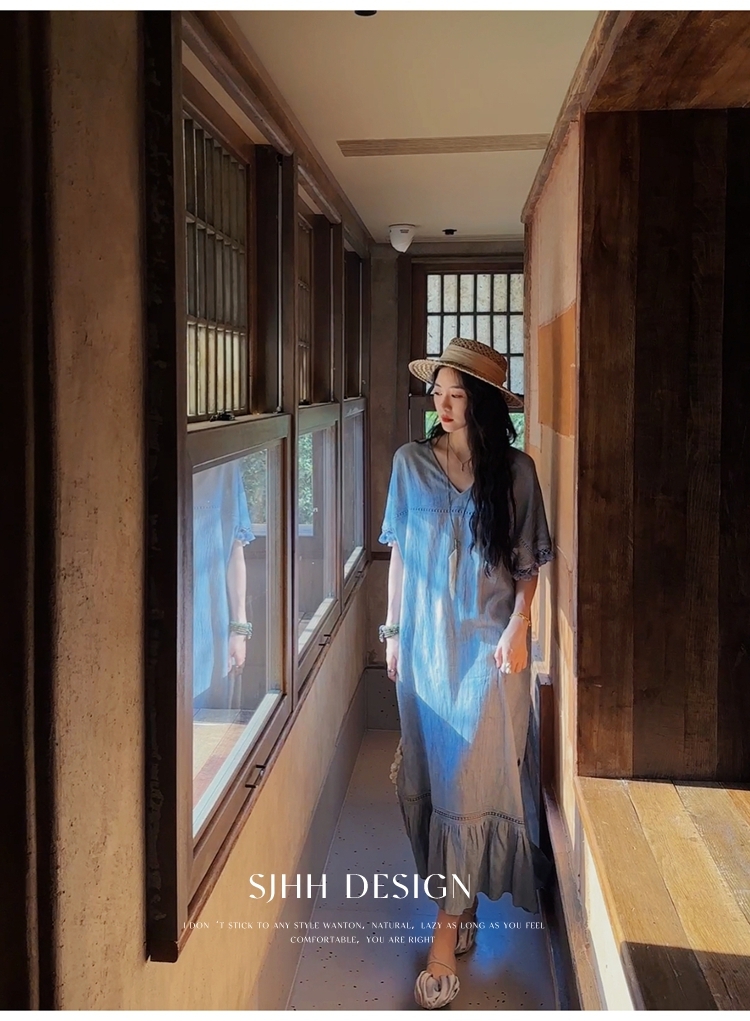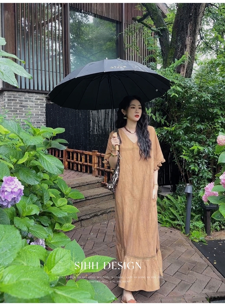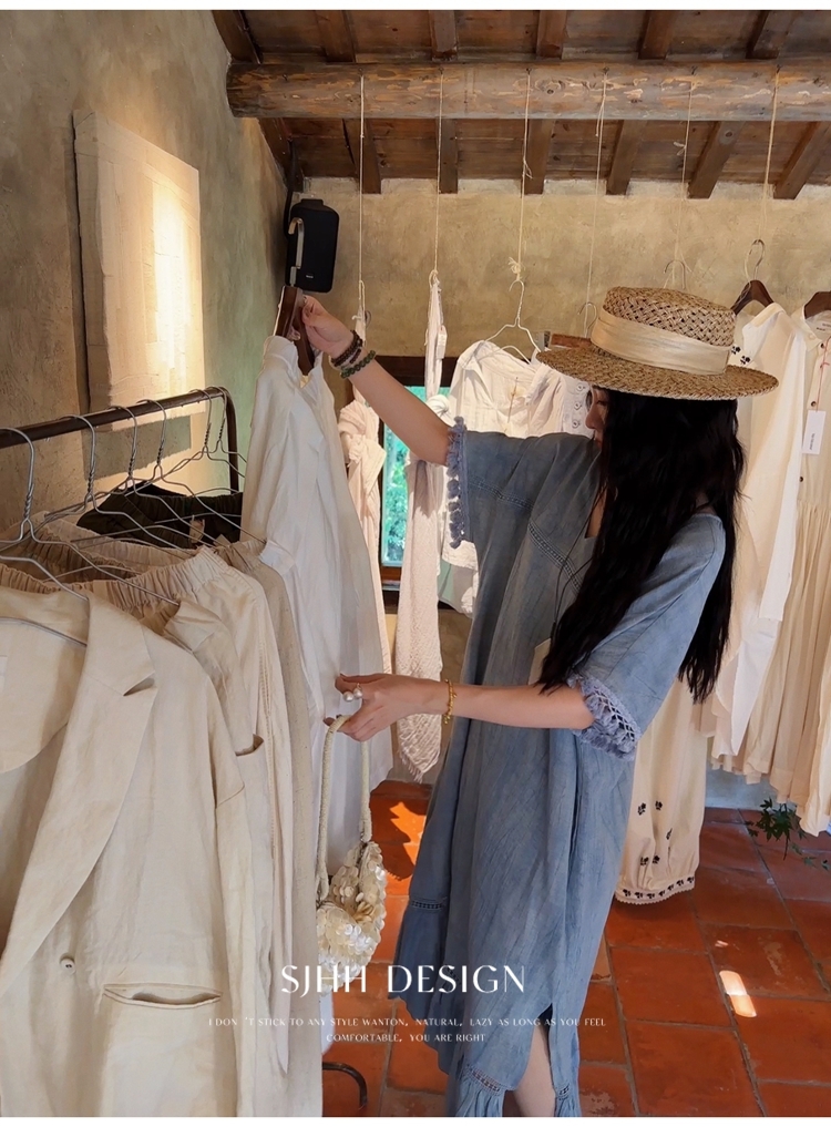 *o-ha-you*【FSJ0080】【午後漫步】慵懶風流蘇邊炒色裙洋裝