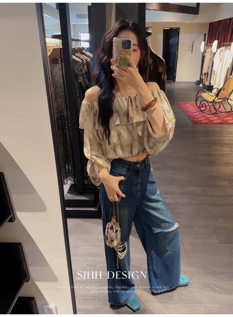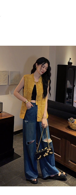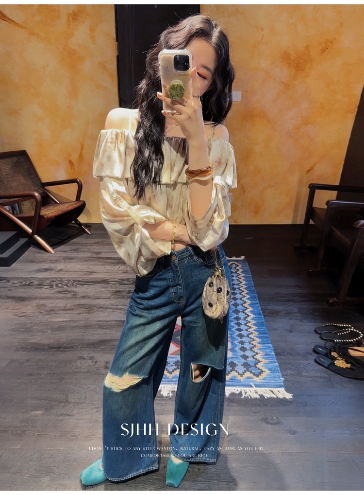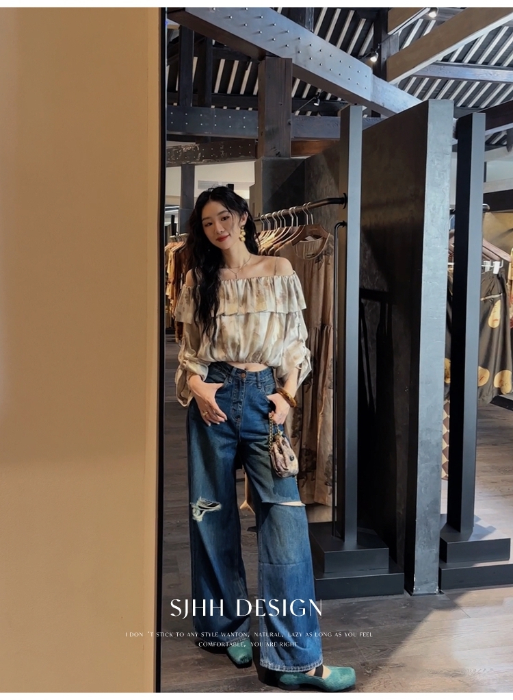 *o-ha-you*【FSJ0091】【鬆弛感】寬鬆闊版破洞牛仔褲