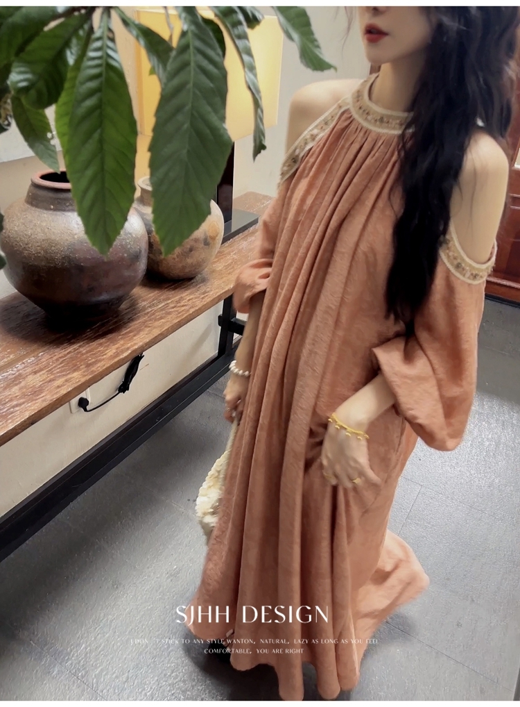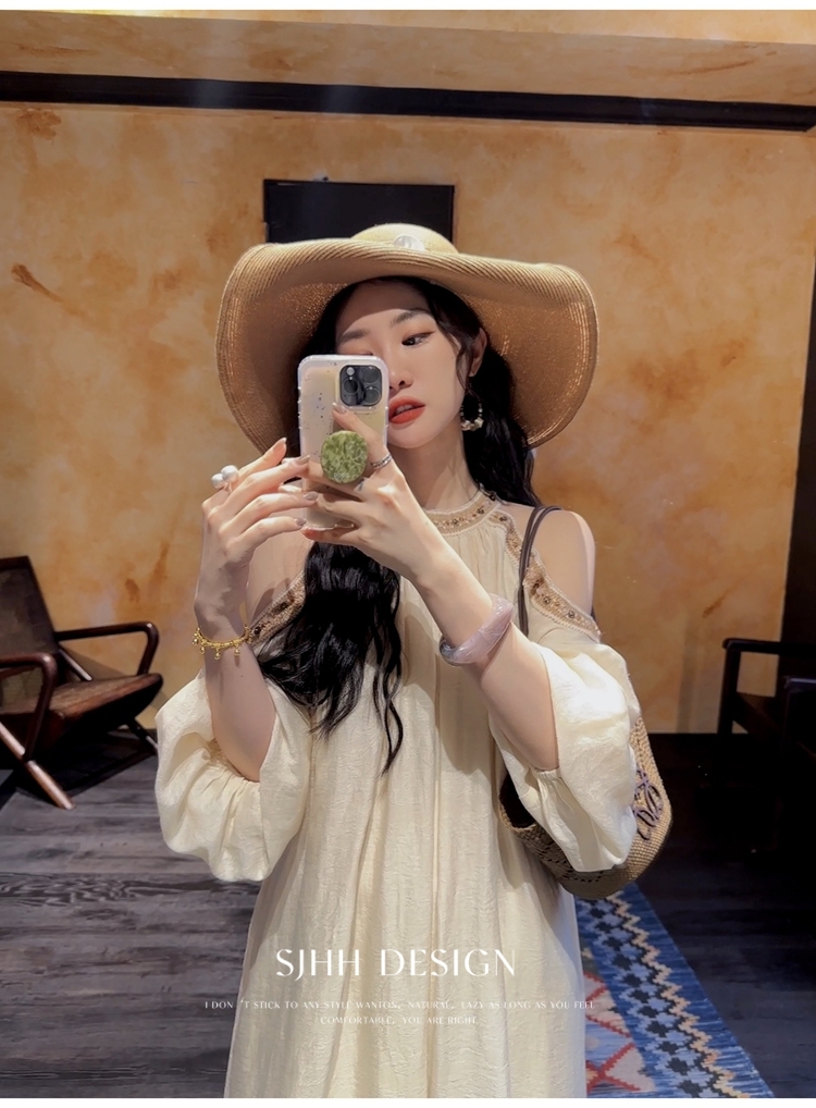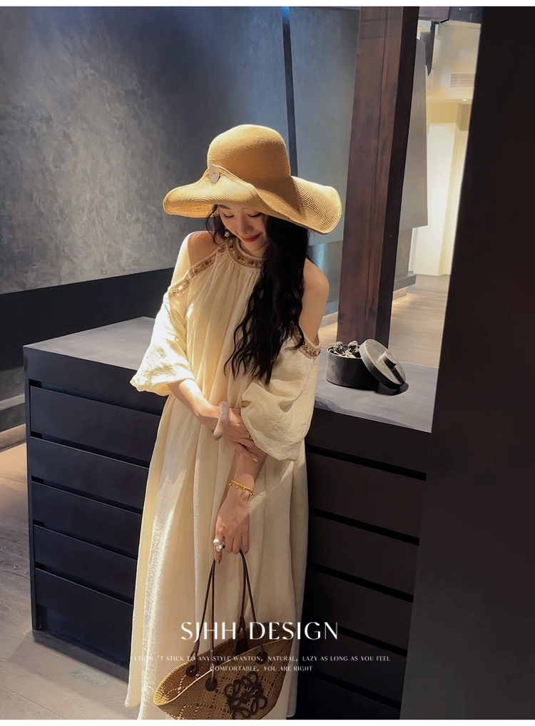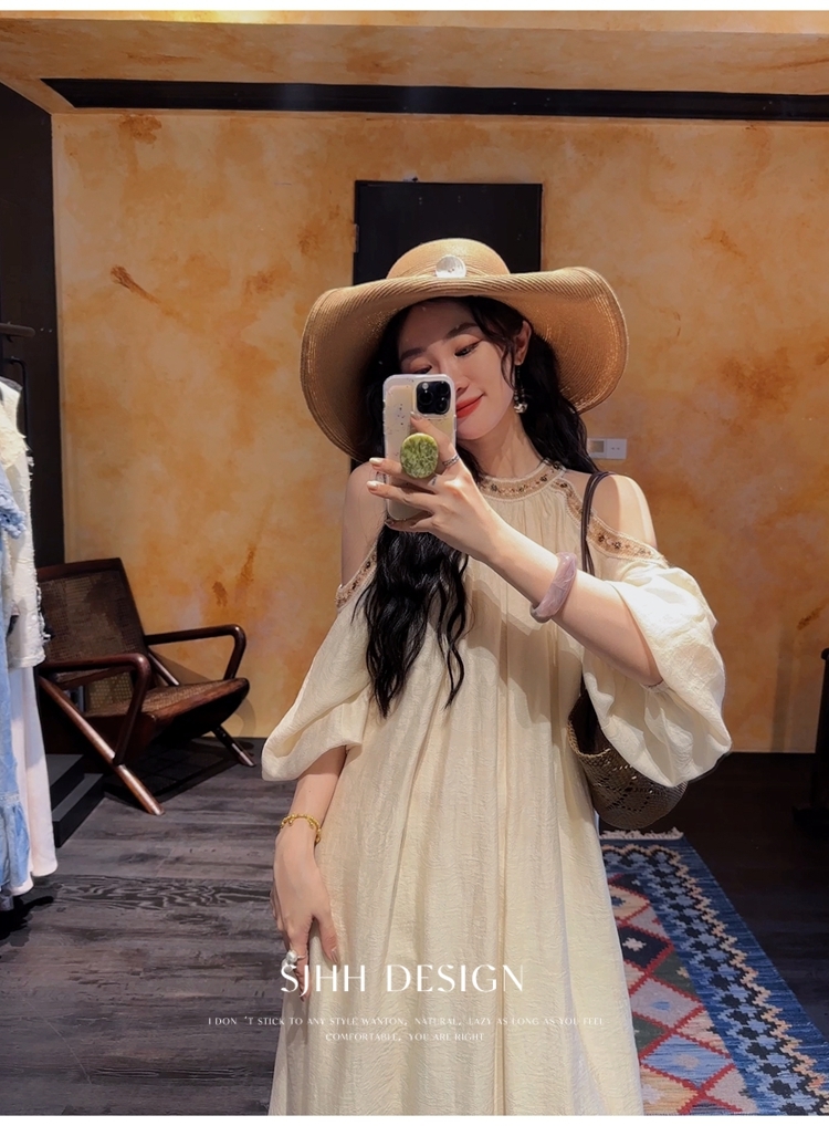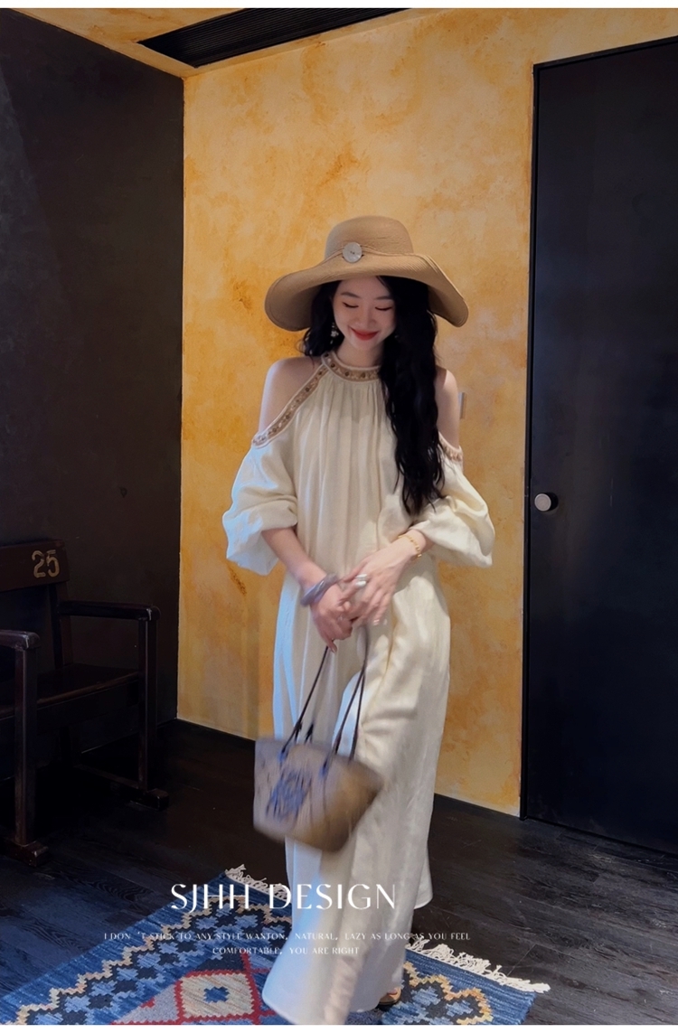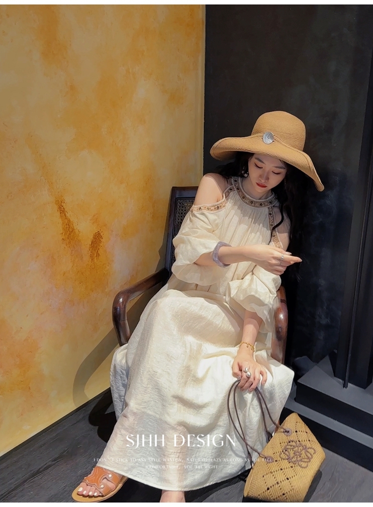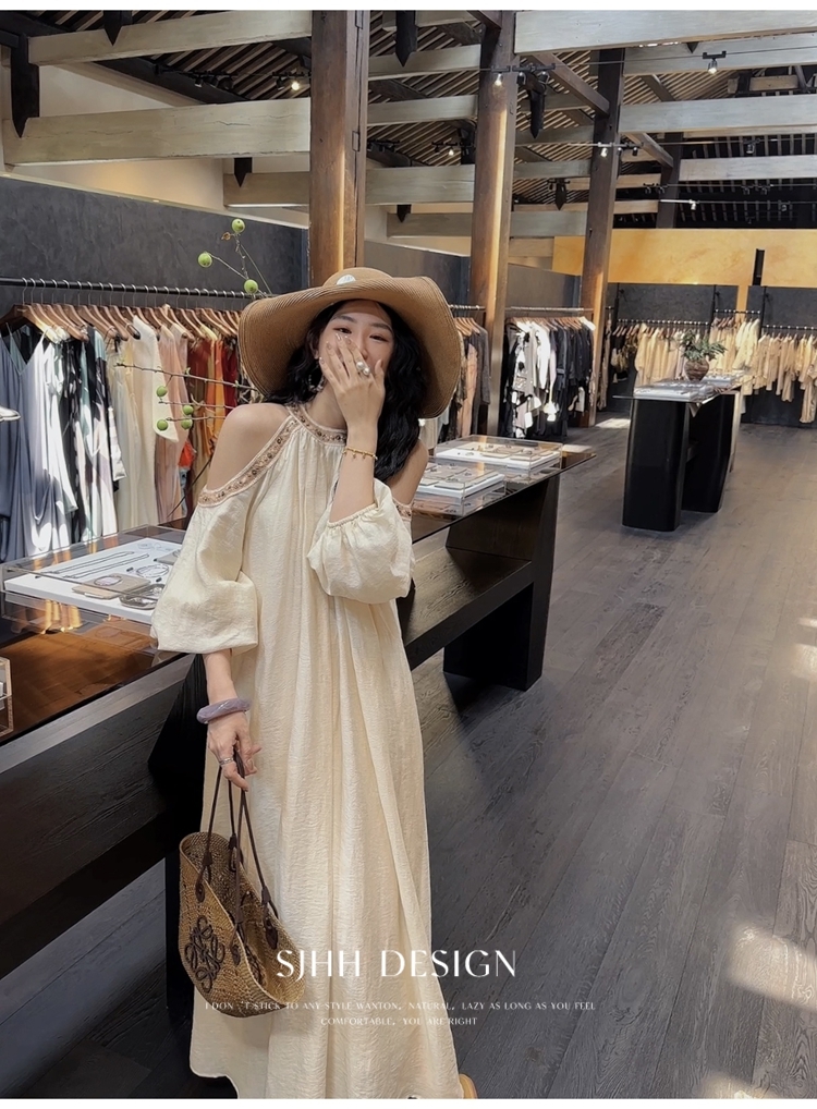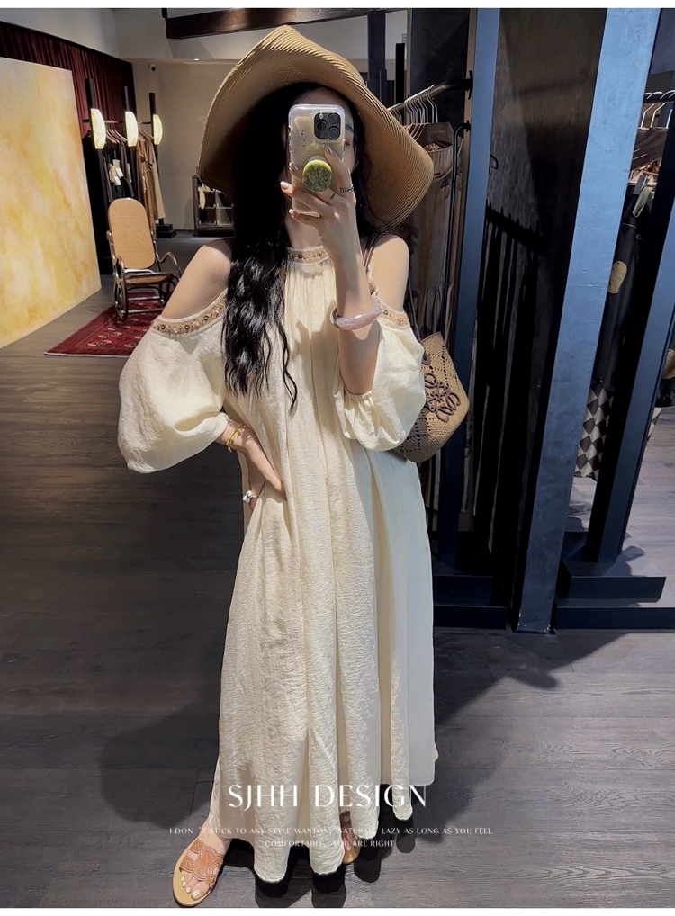 *o-ha-you*【FSJ0092】【詩箋】民族風露肩花邊裙洋裝