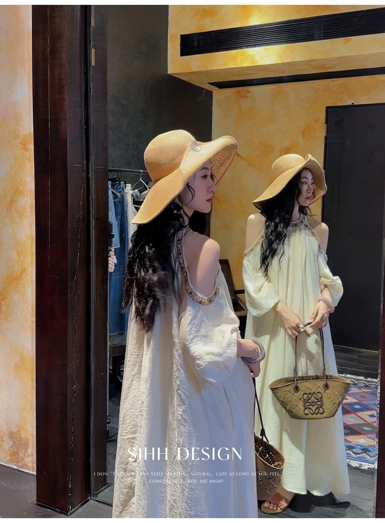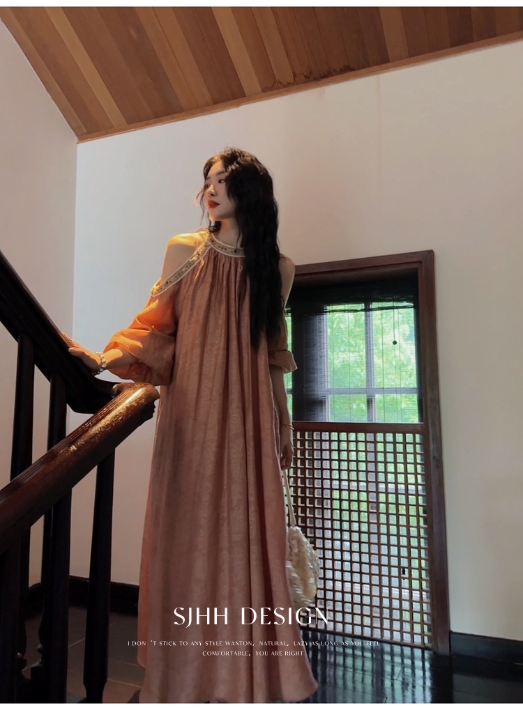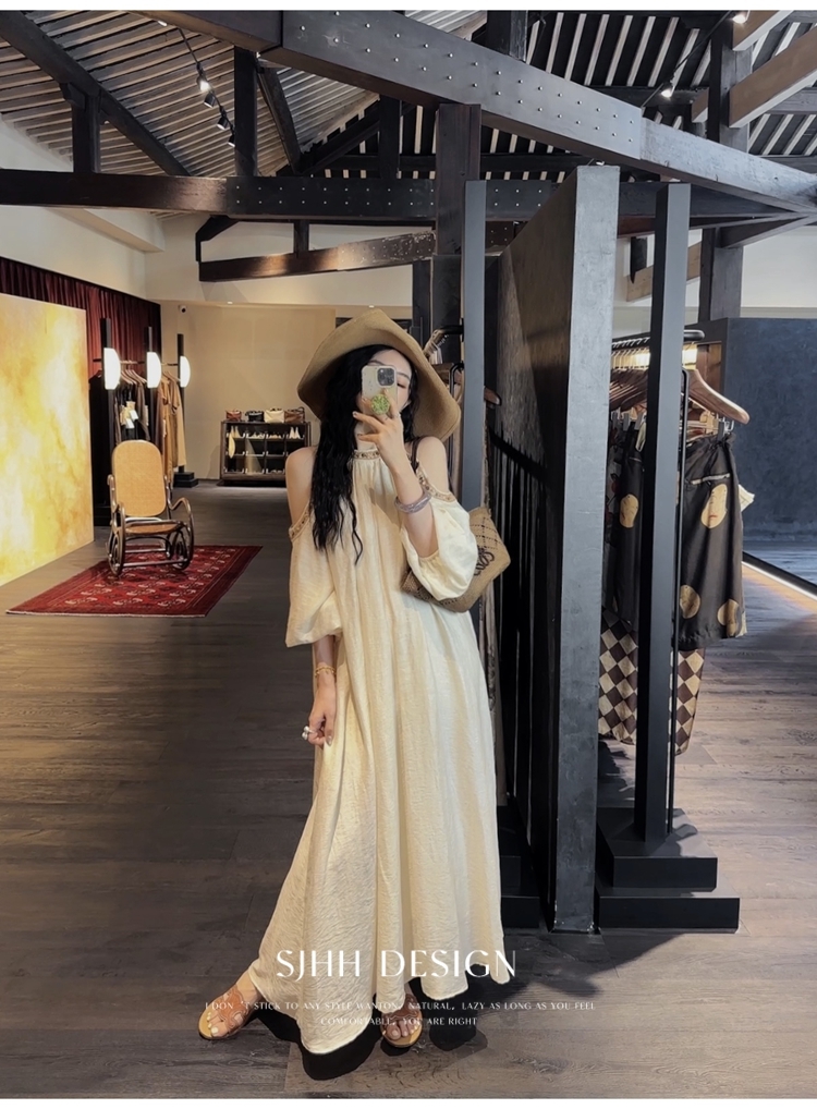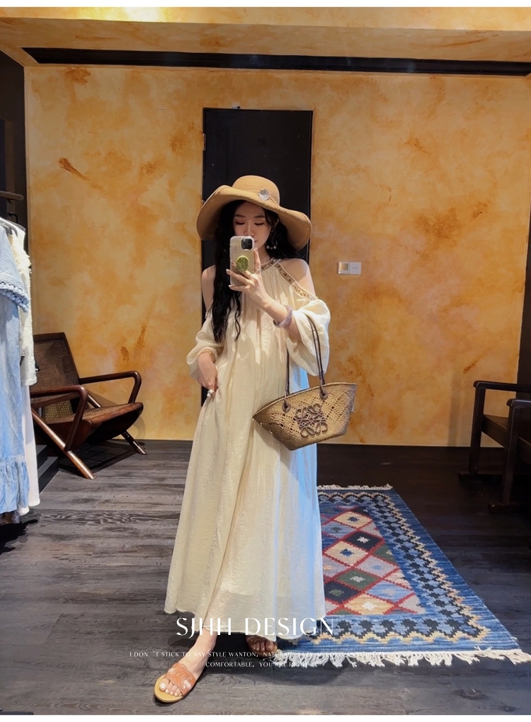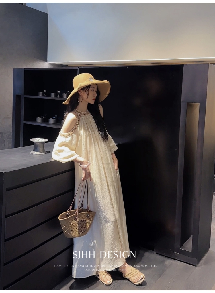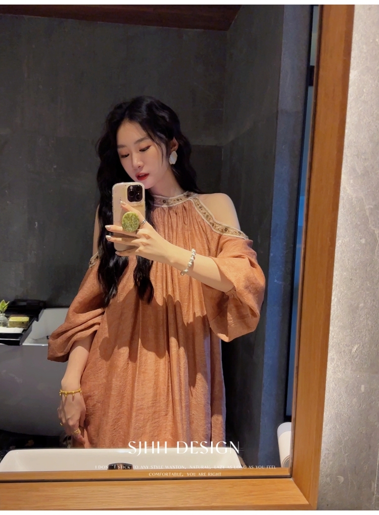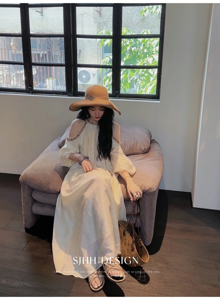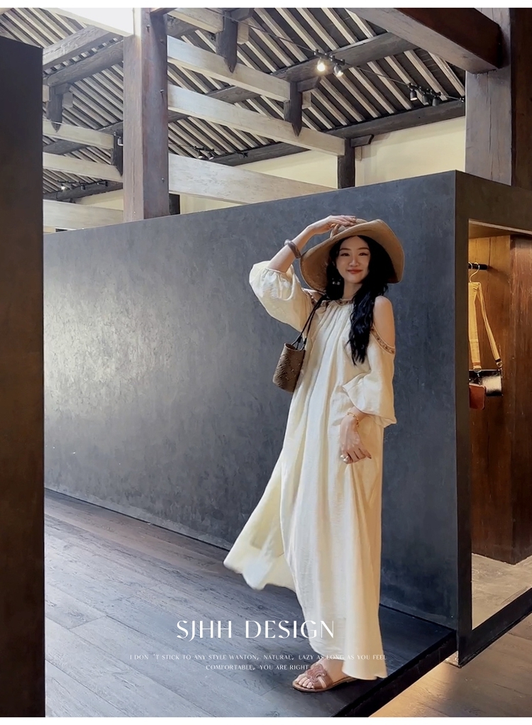 *o-ha-you*【FSJ0092】【詩箋】民族風露肩花邊裙洋裝