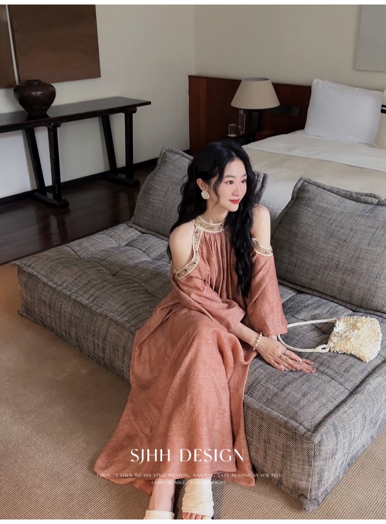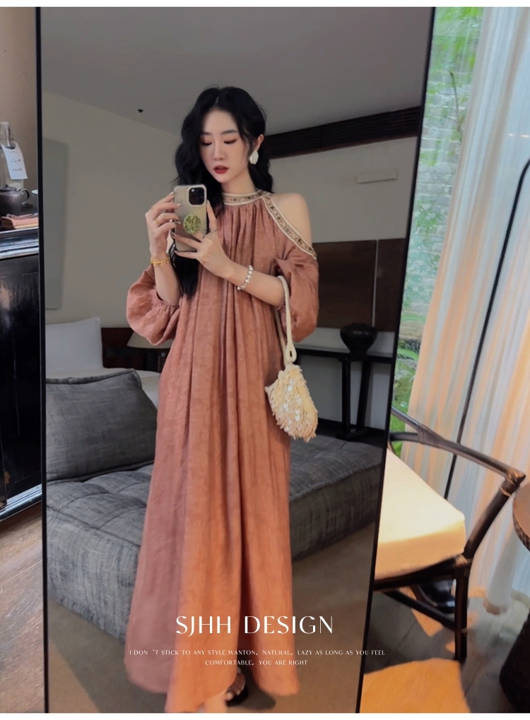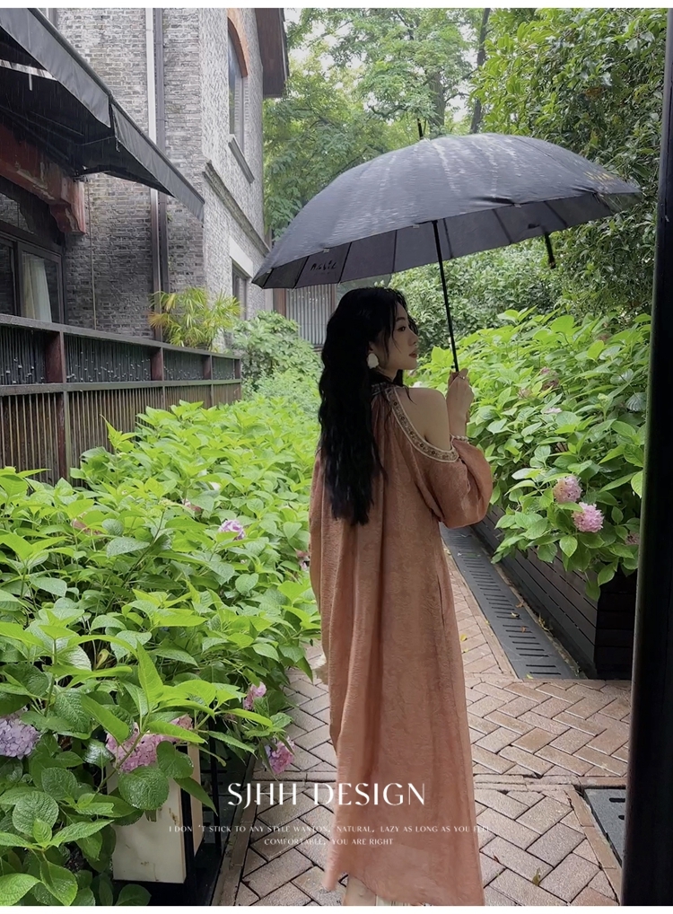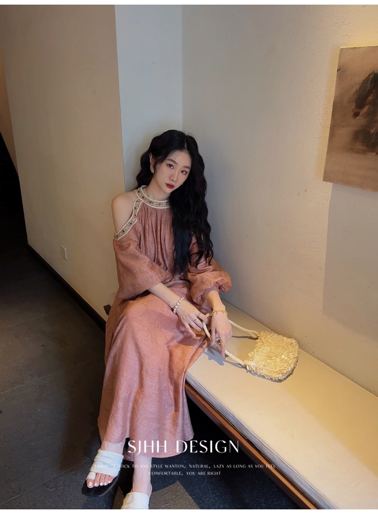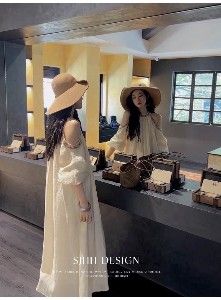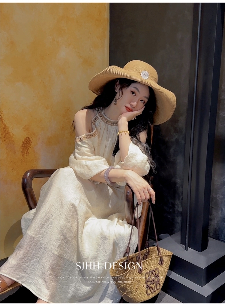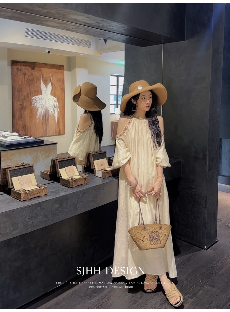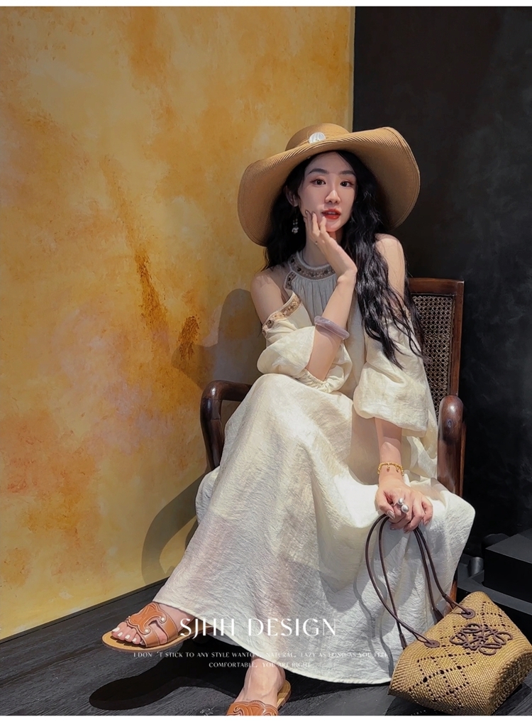 *o-ha-you*【FSJ0092】【詩箋】民族風露肩花邊裙洋裝