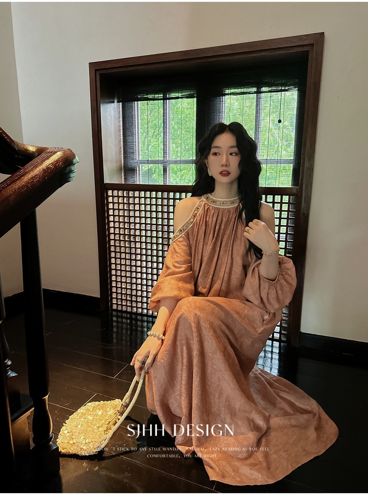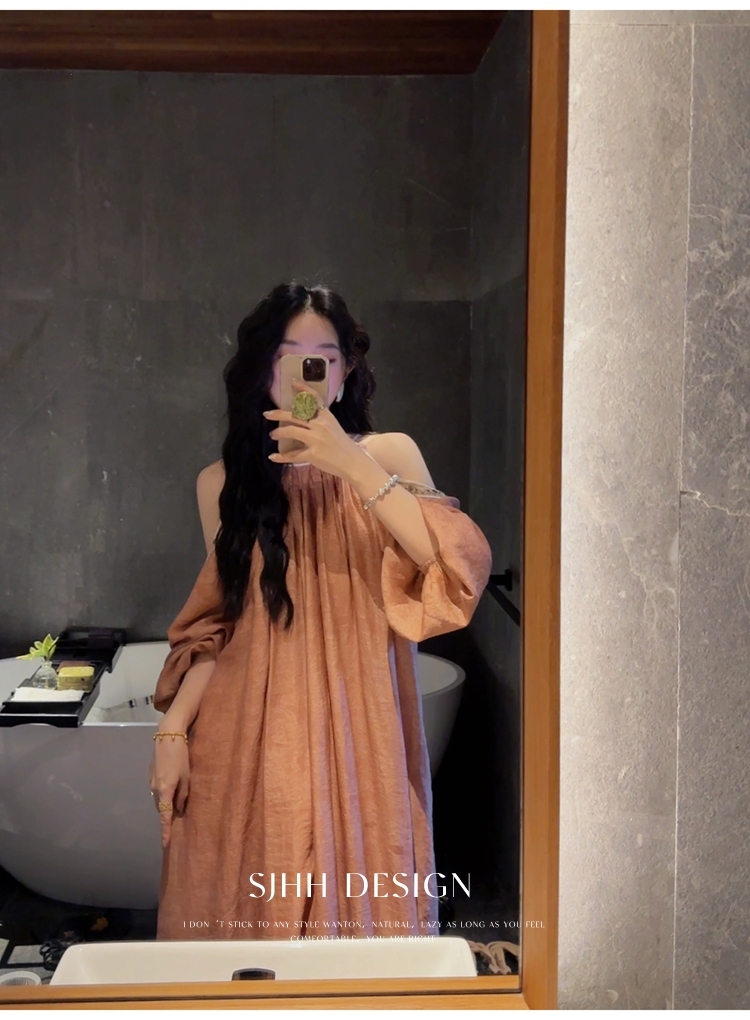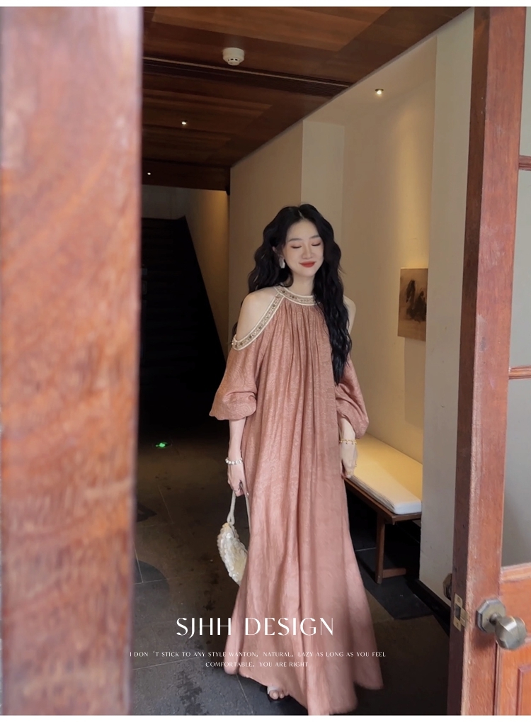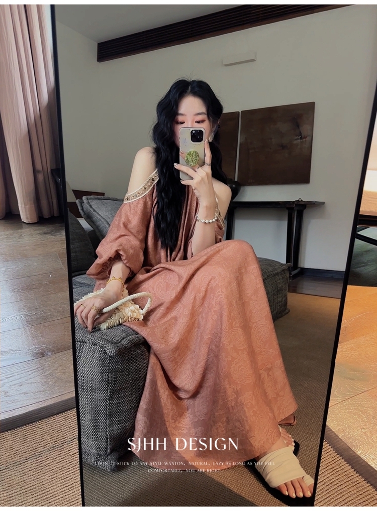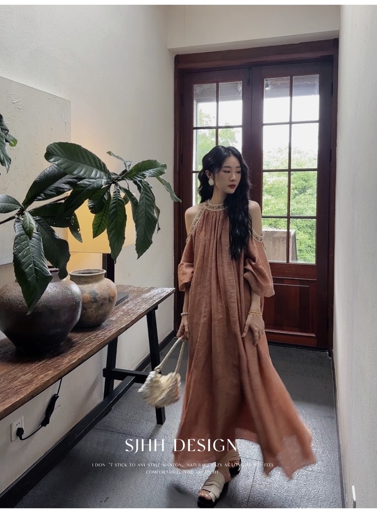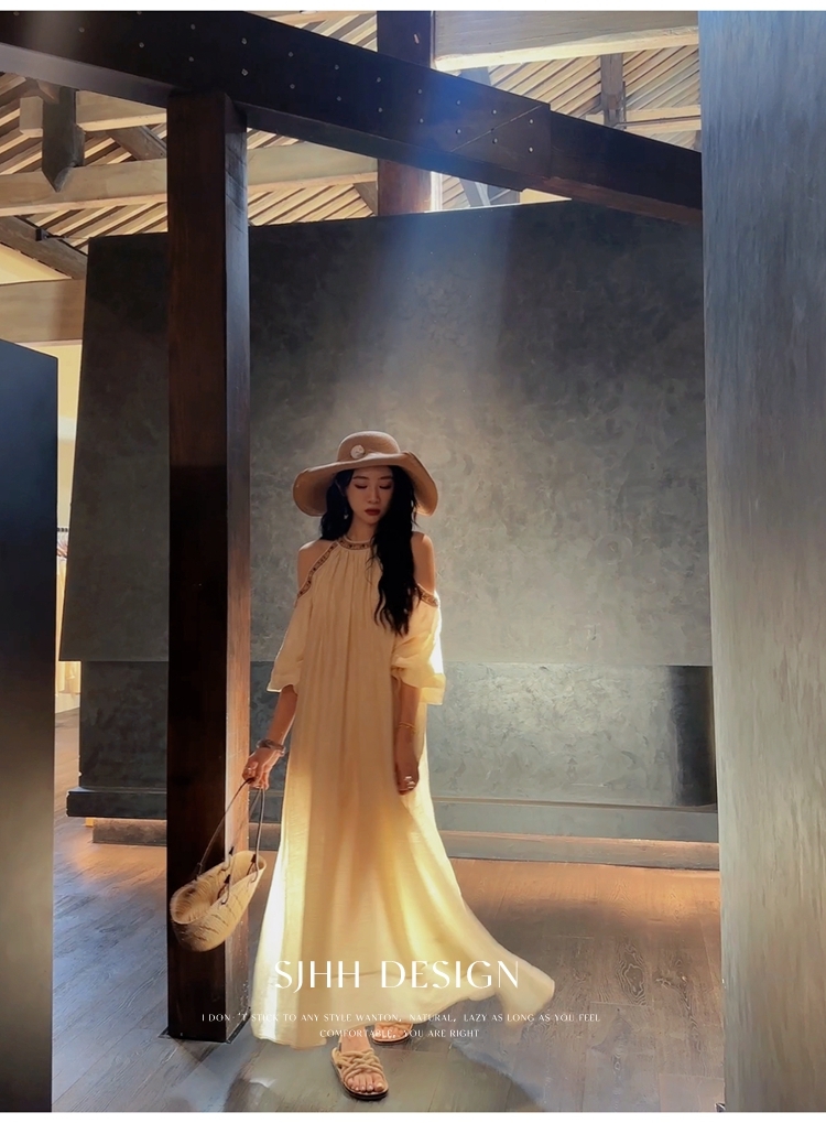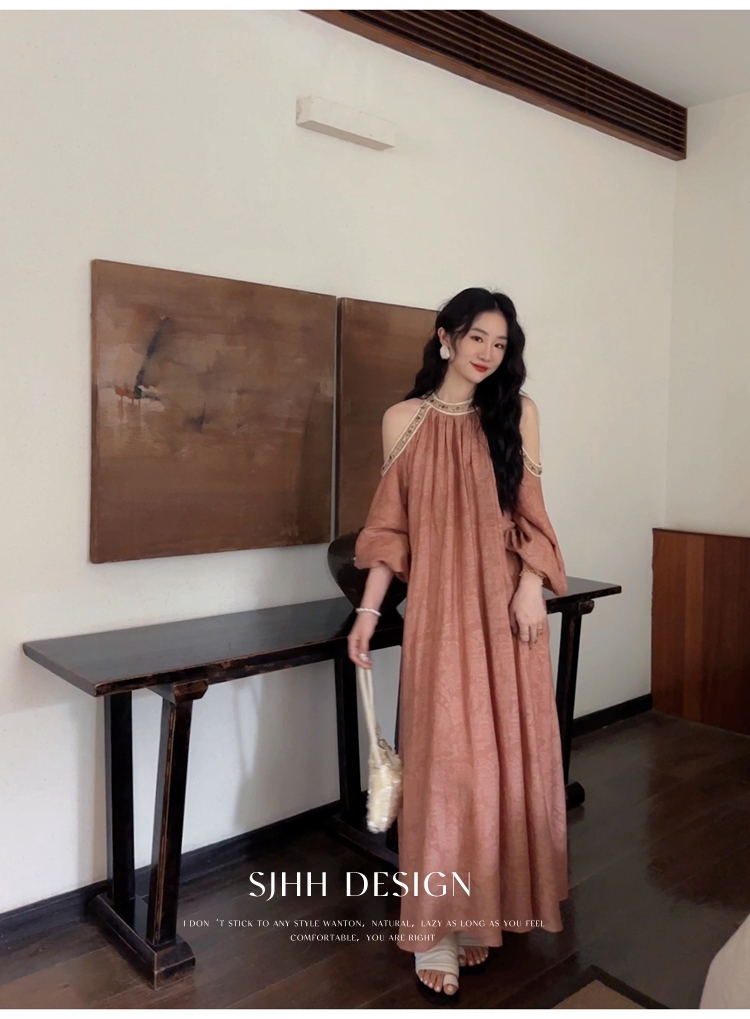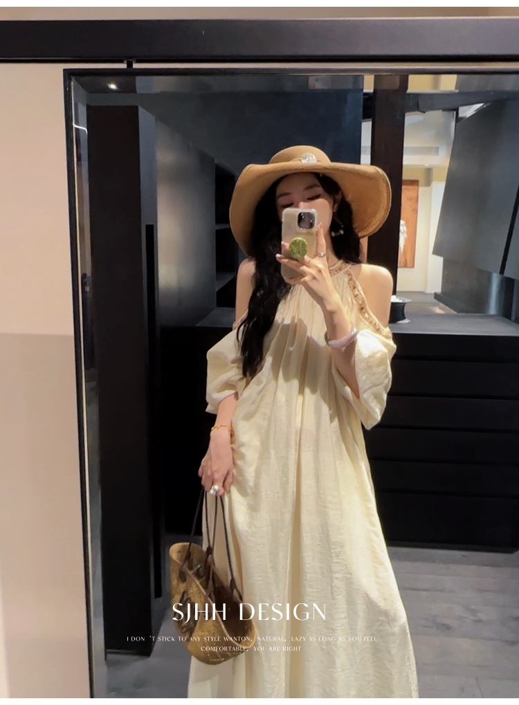 *o-ha-you*【FSJ0092】【詩箋】民族風露肩花邊裙洋裝