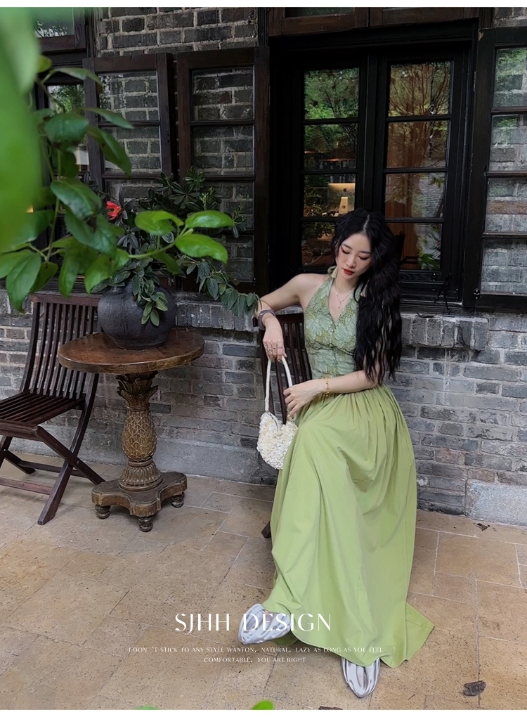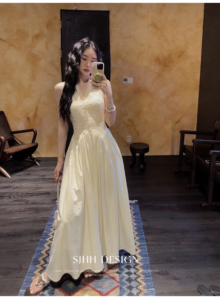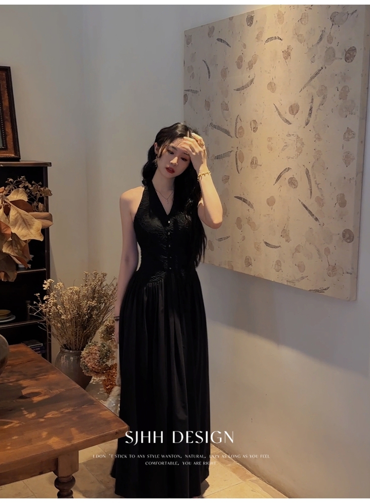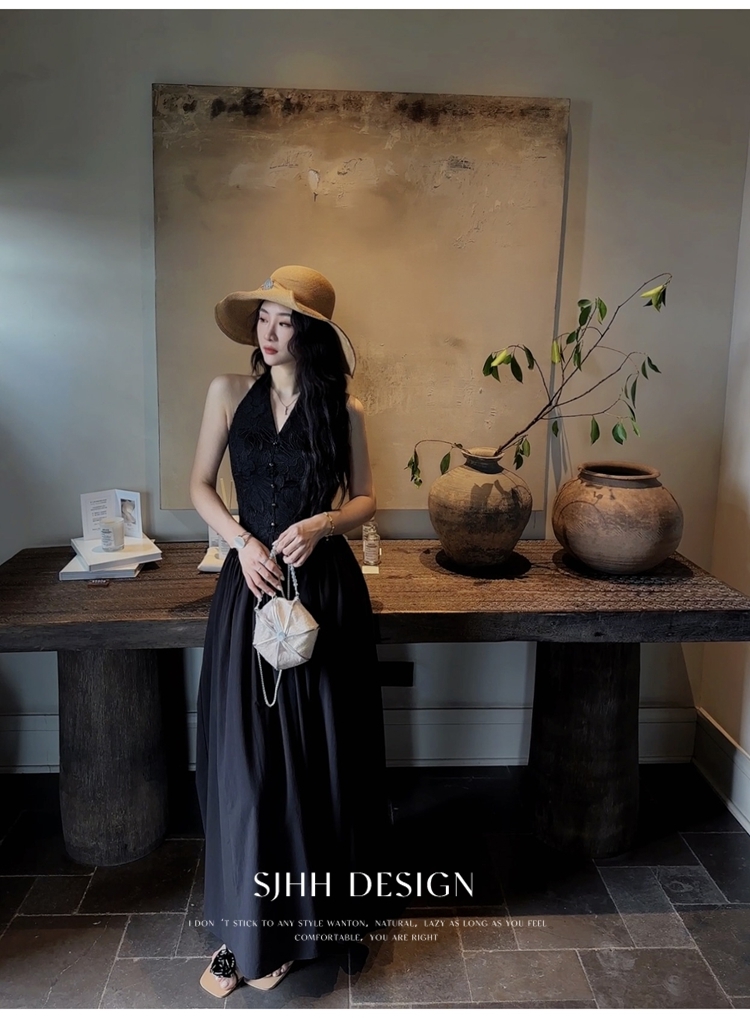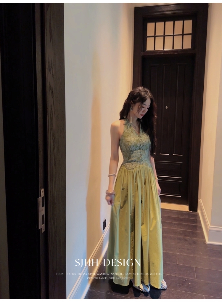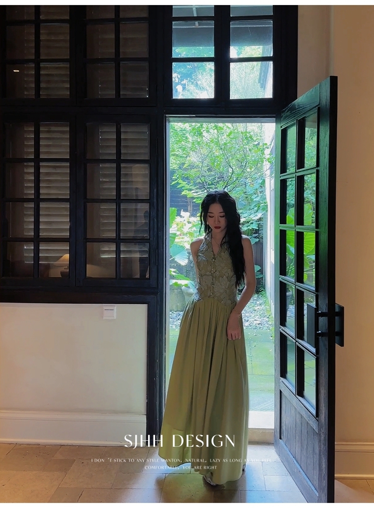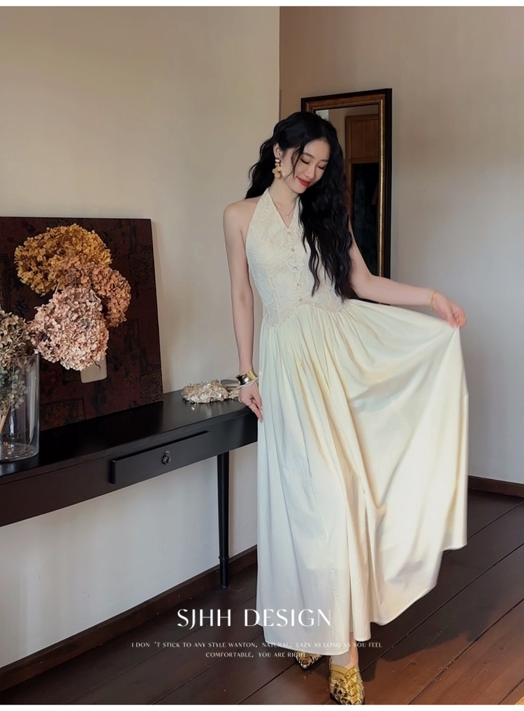 *o-ha-you*【FSJ0102】【序夢】中式刺繡掛脖連衣裙洋裝