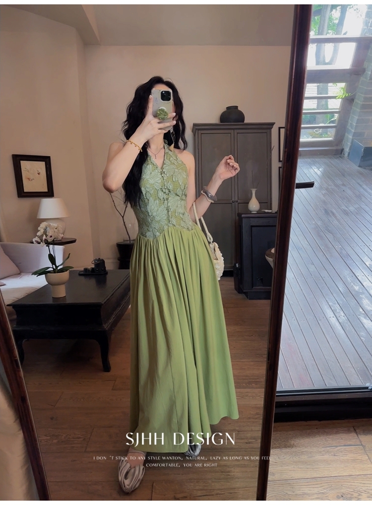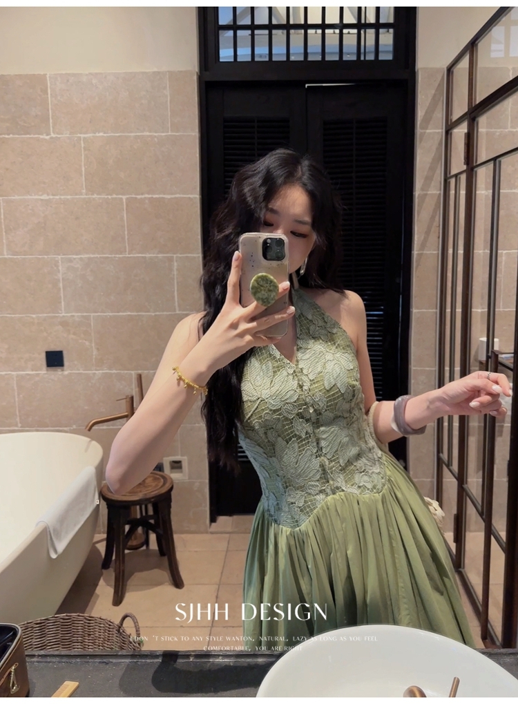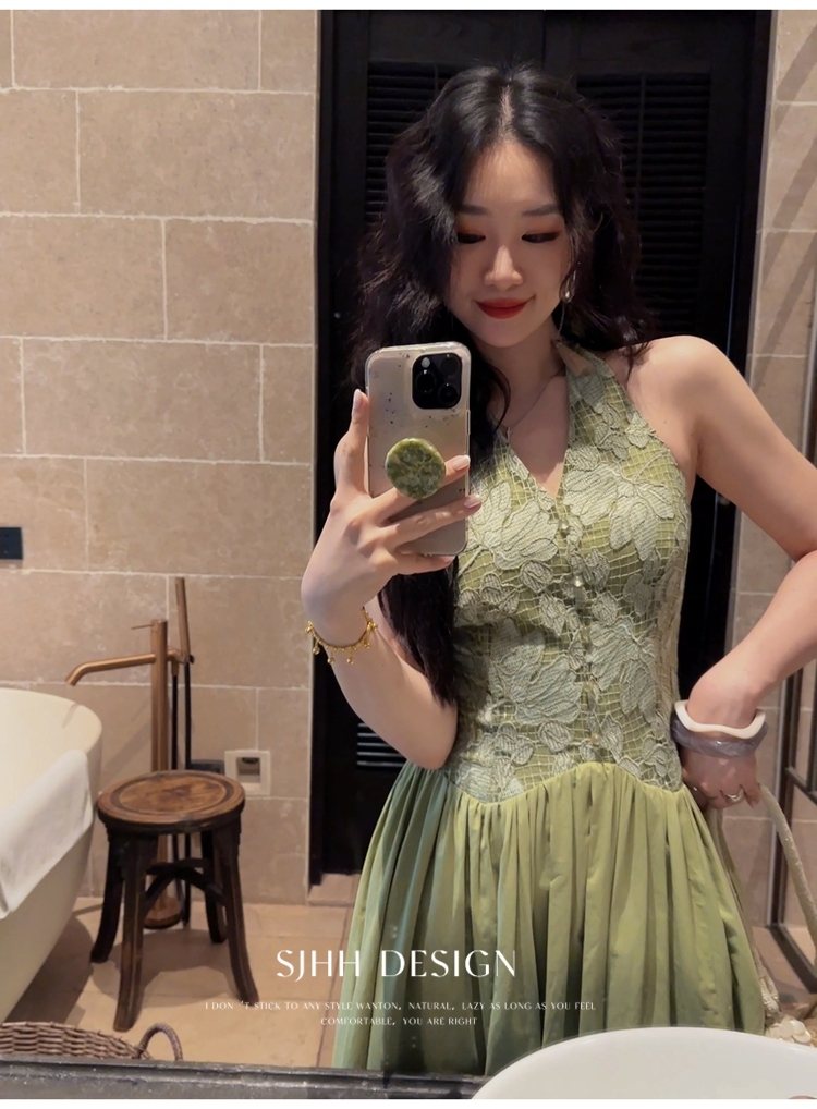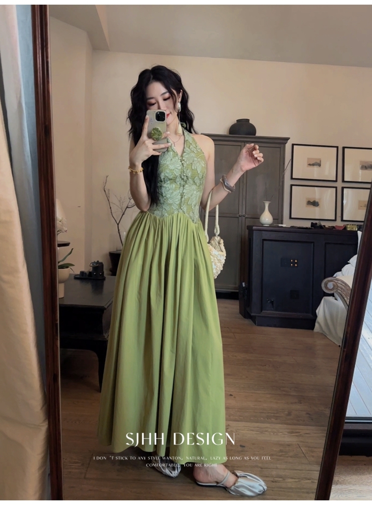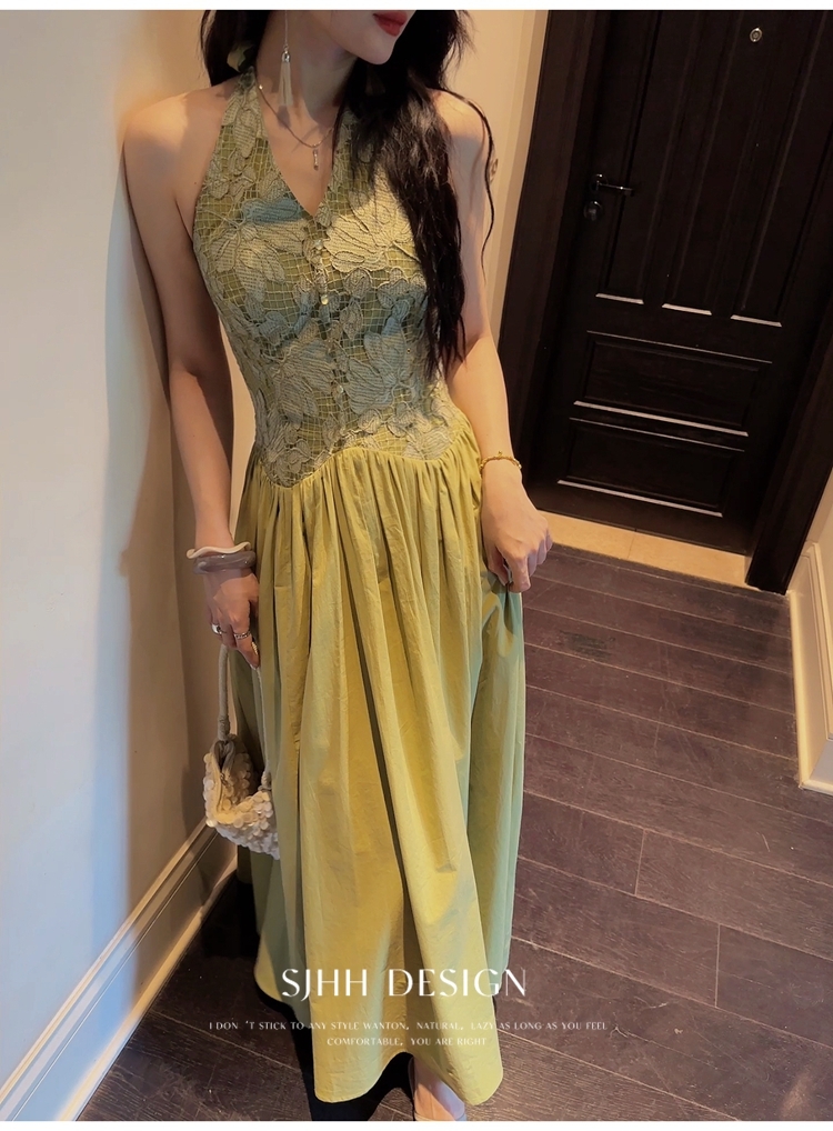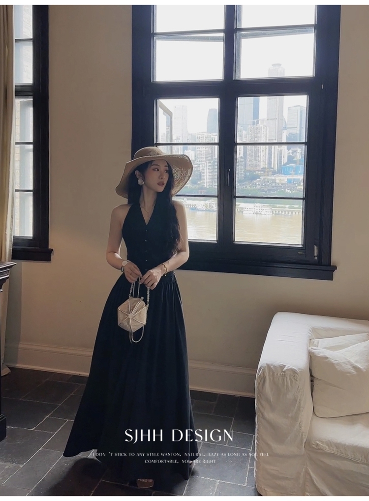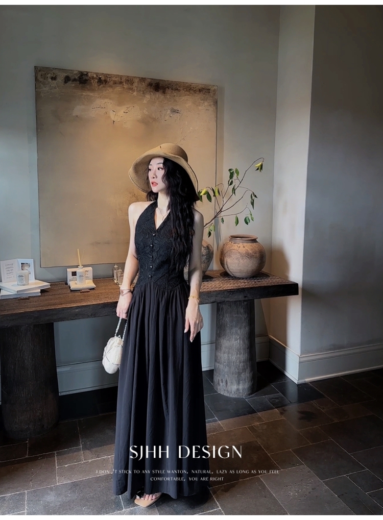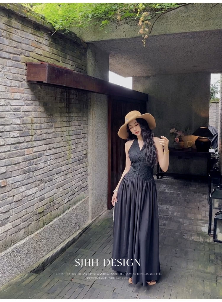 *o-ha-you*【FSJ0102】【序夢】中式刺繡掛脖連衣裙洋裝