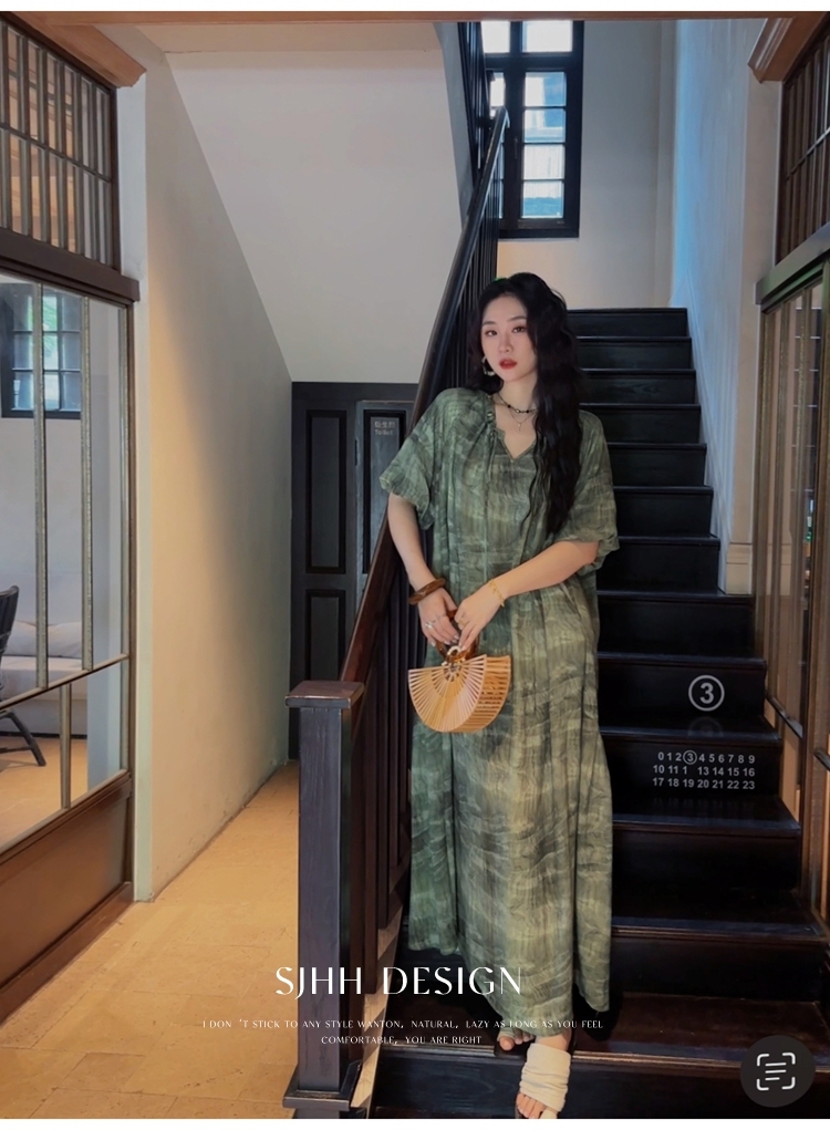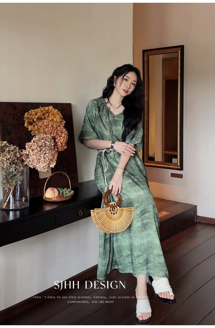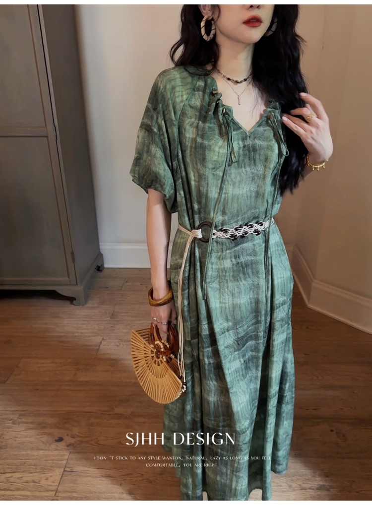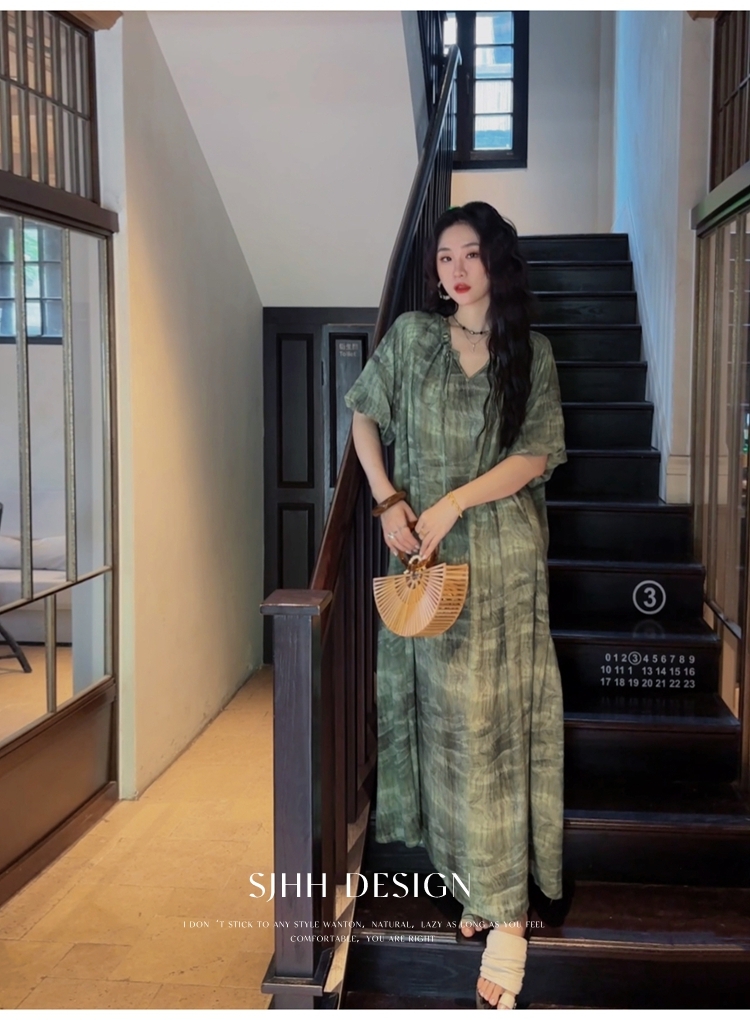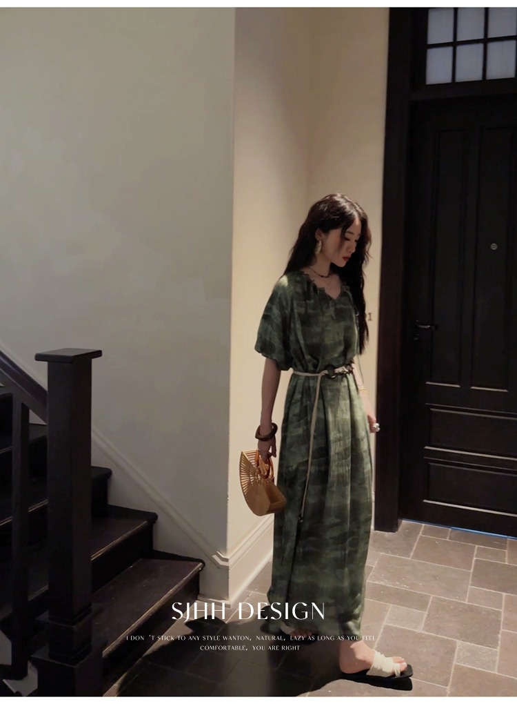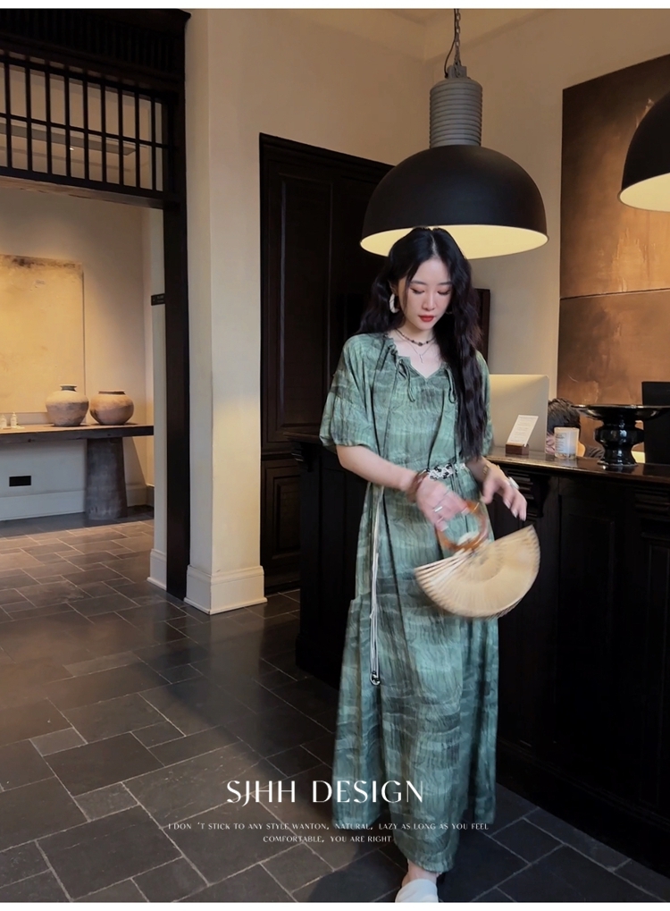 *o-ha-you*【FSJ0106】【夏風】寬鬆慵懶風抽繩連衣裙洋裝