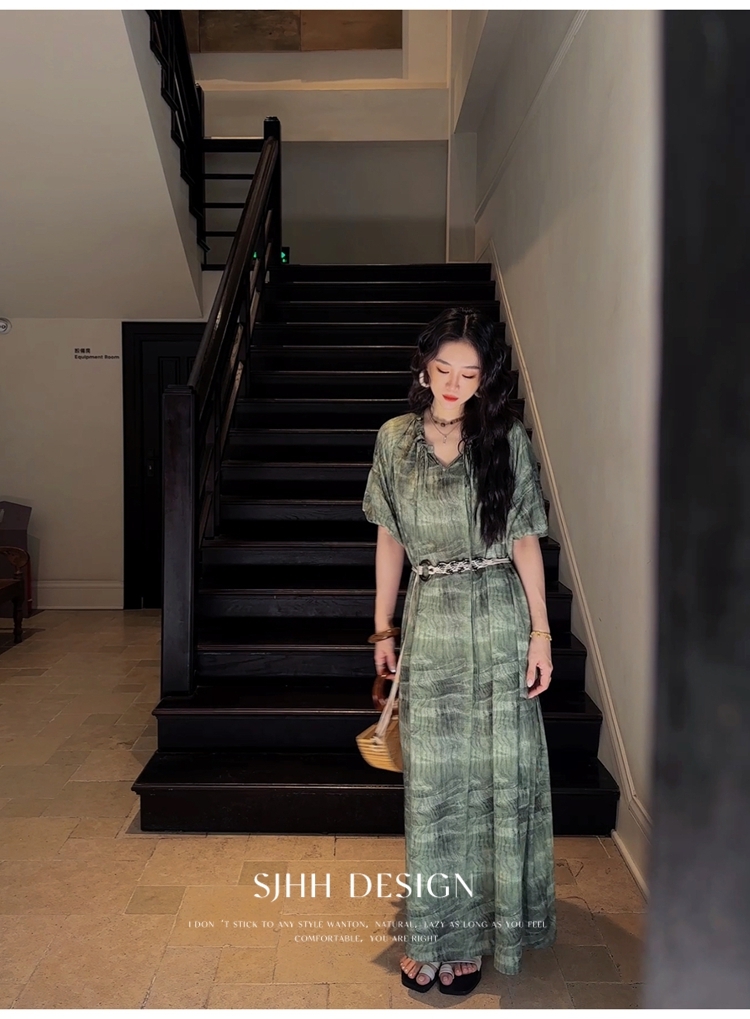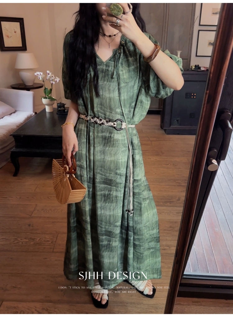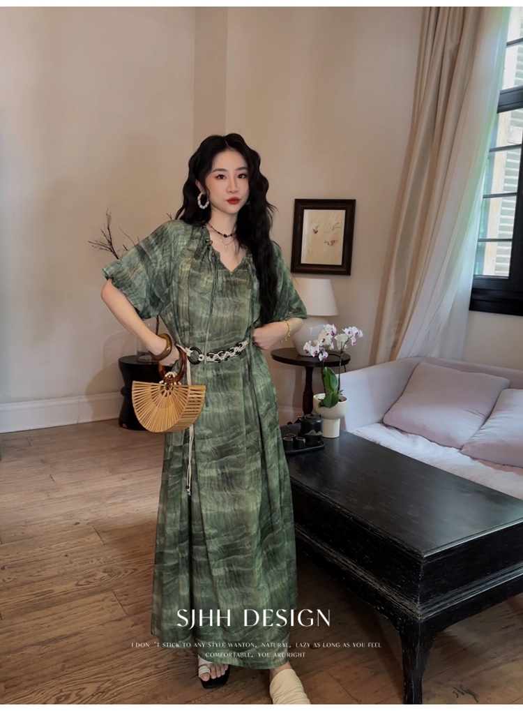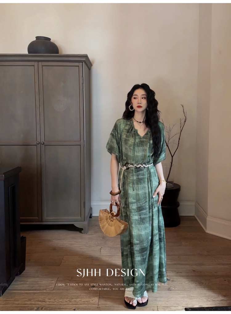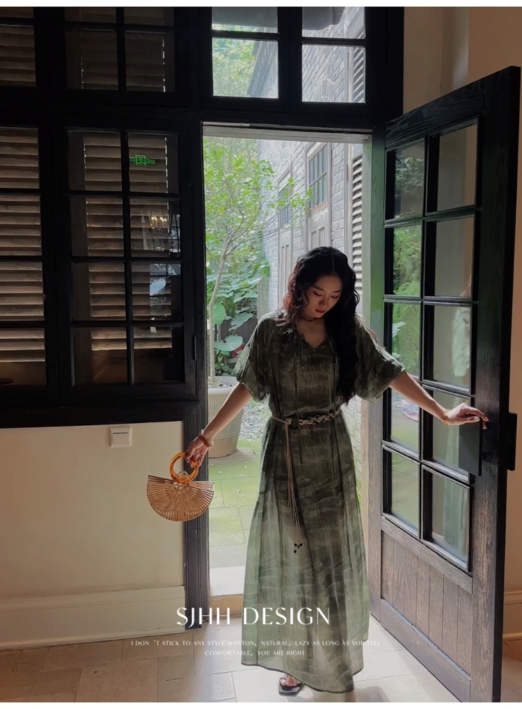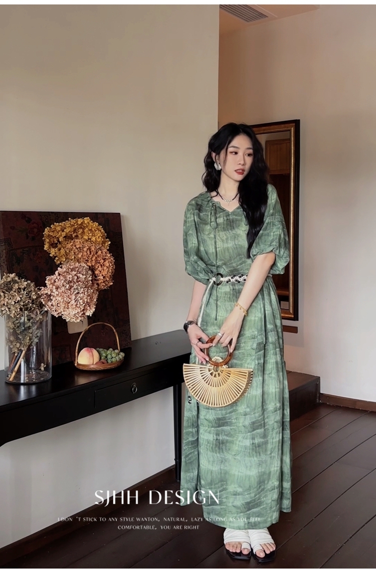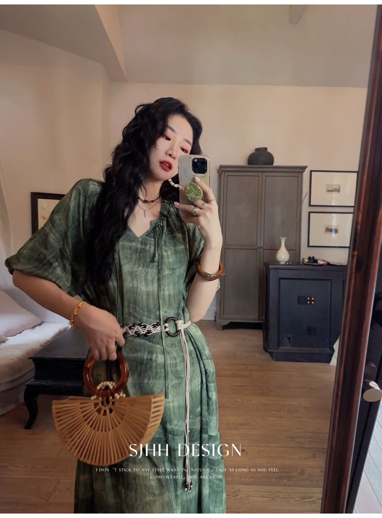 *o-ha-you*【FSJ0106】【夏風】寬鬆慵懶風抽繩連衣裙洋裝