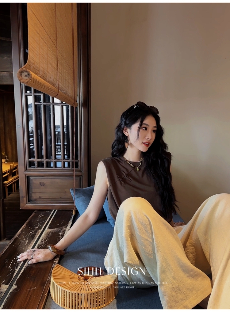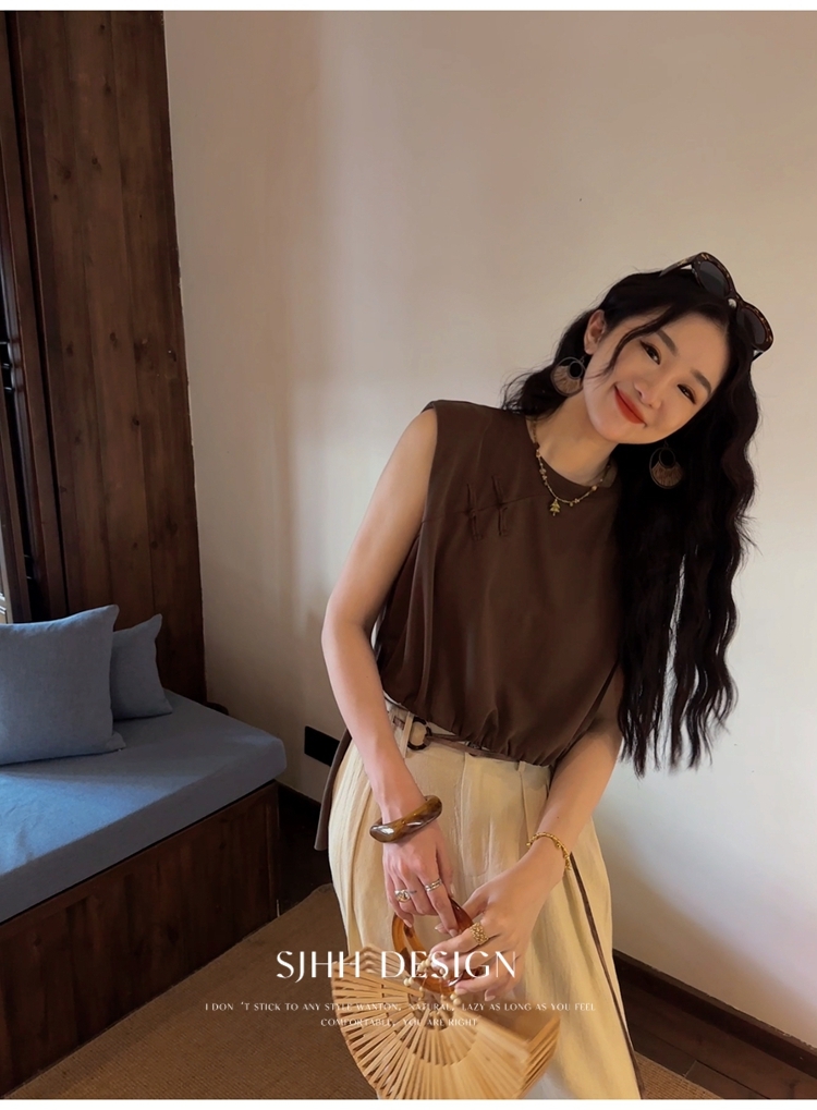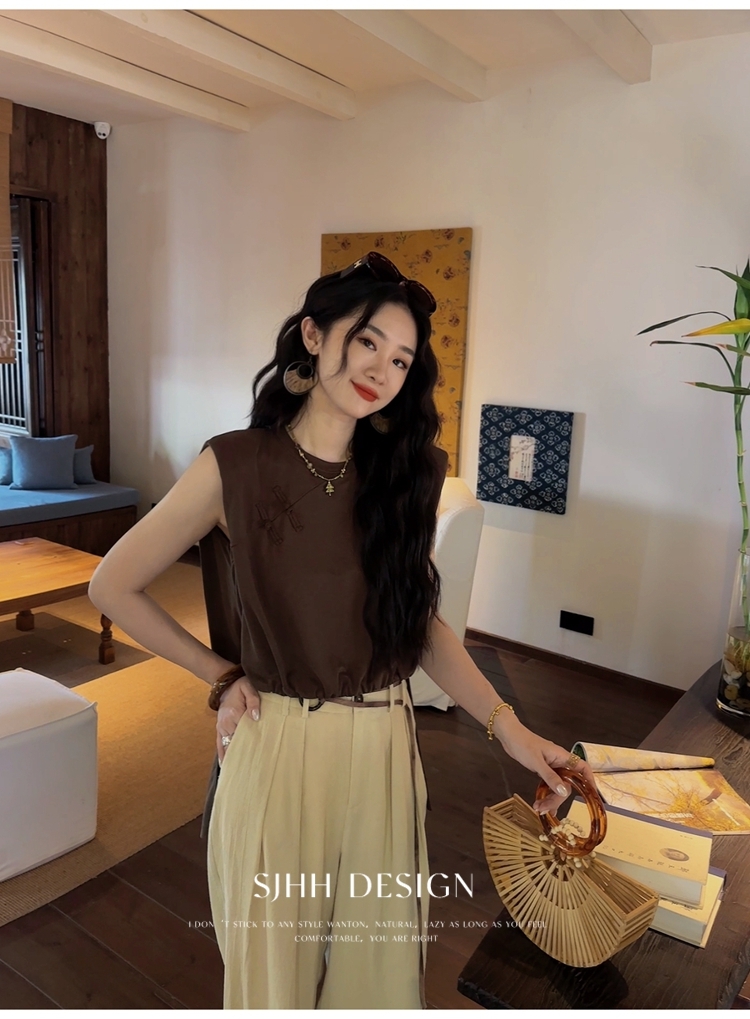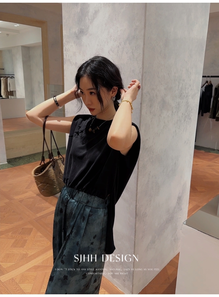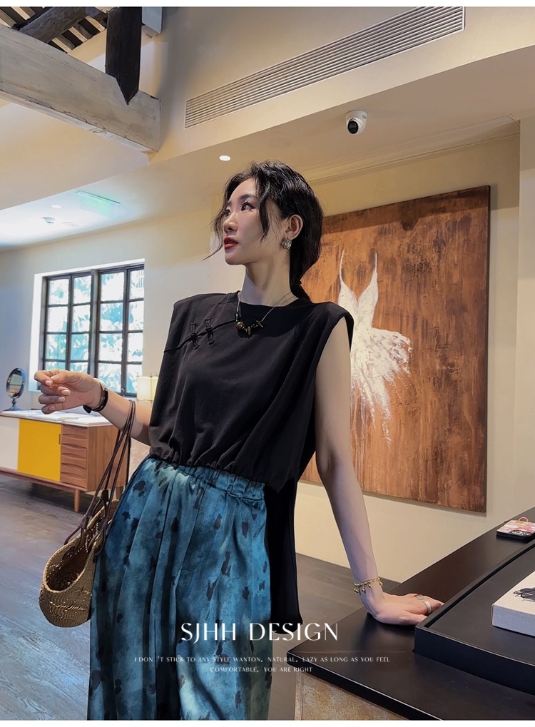 *o-ha-you*【FSJ0110】【尋意】設計款中式墊肩無袖T恤
