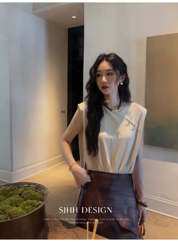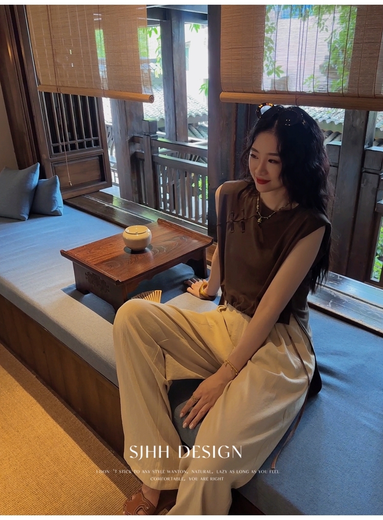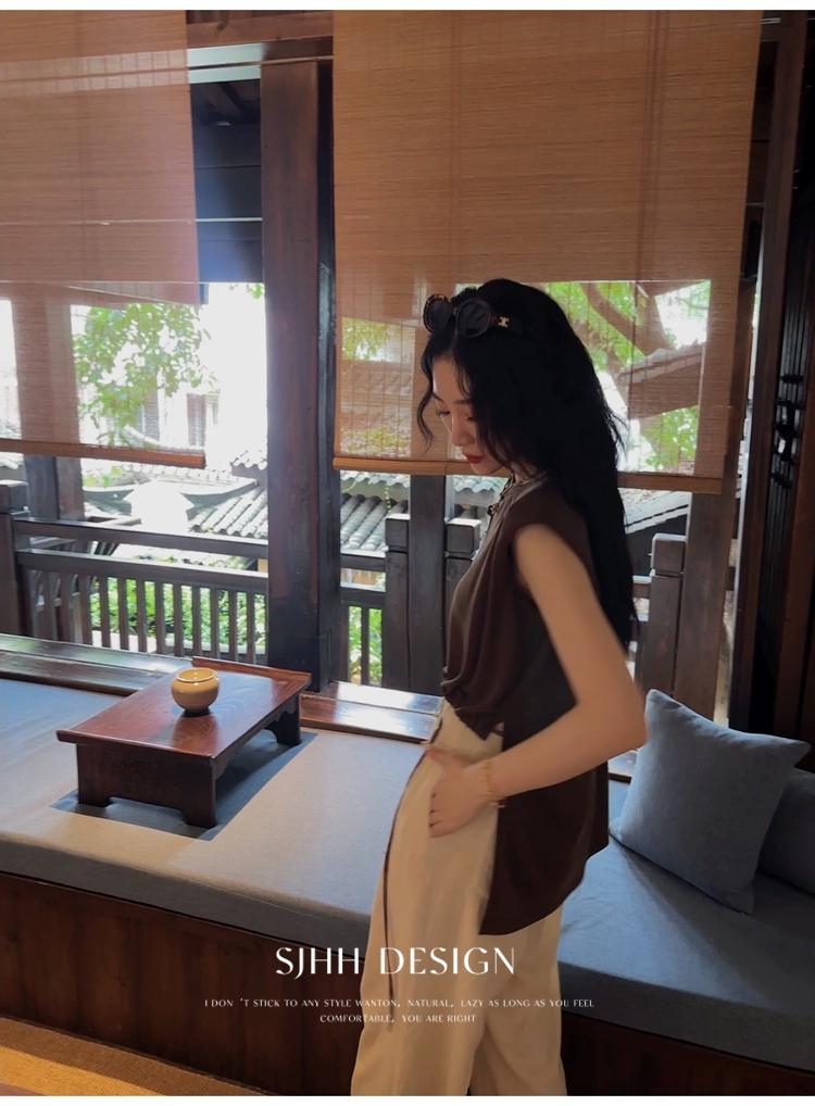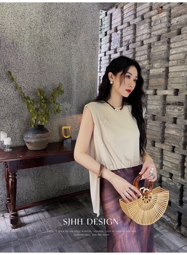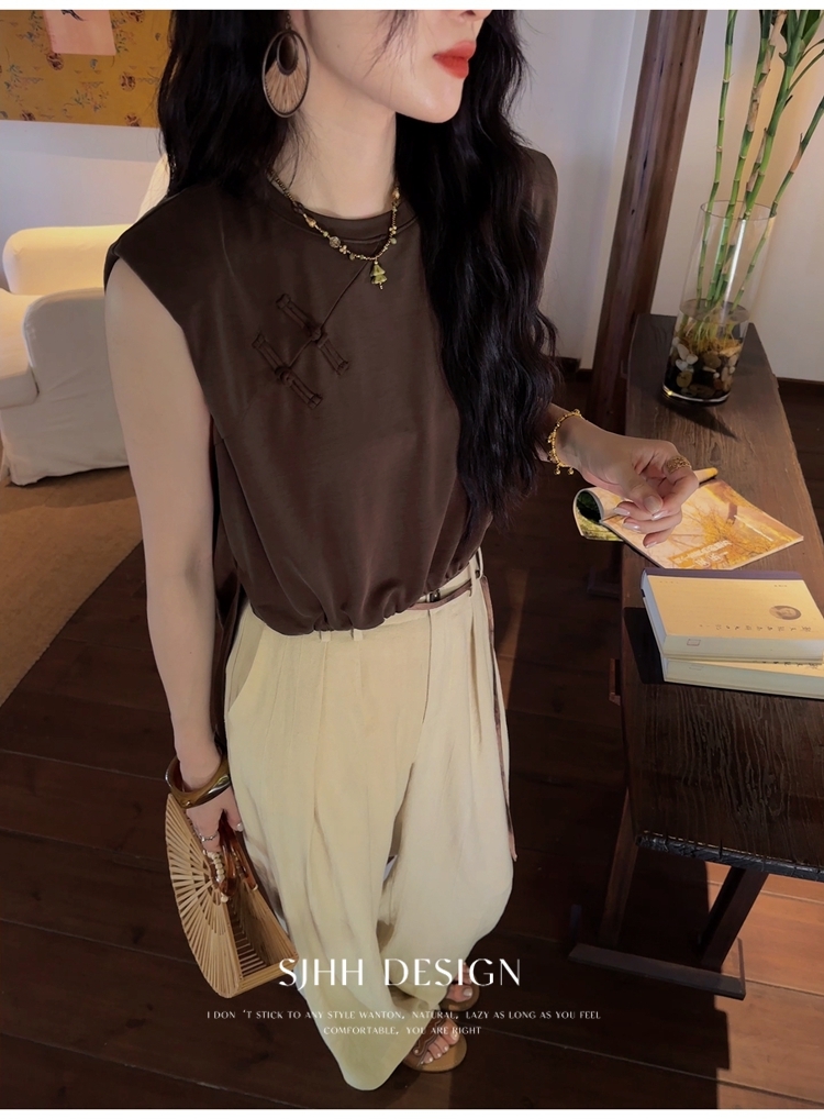 *o-ha-you*【FSJ0110】【尋意】設計款中式墊肩無袖T恤