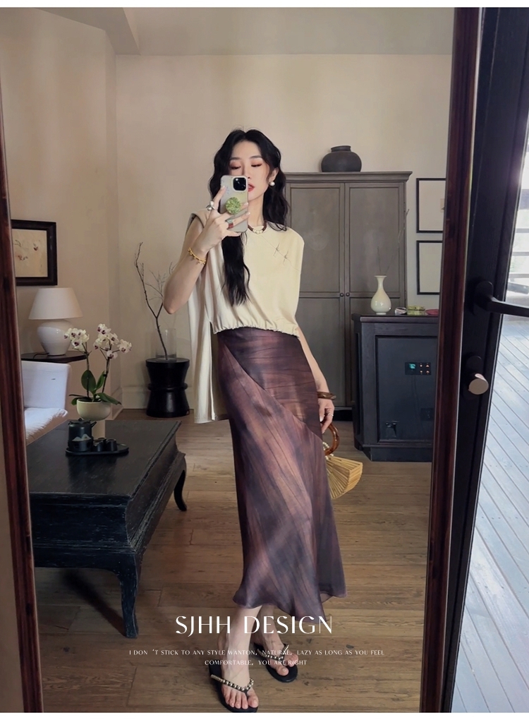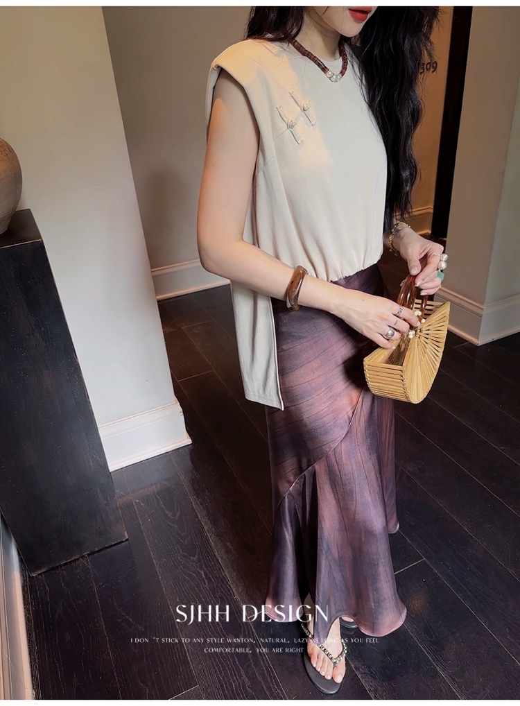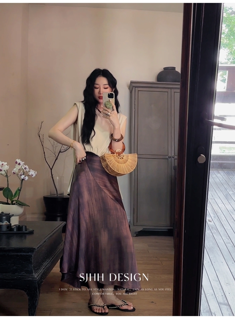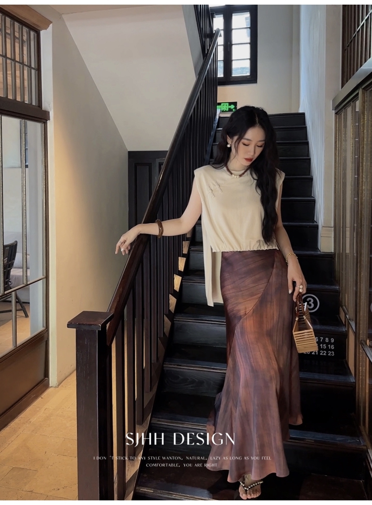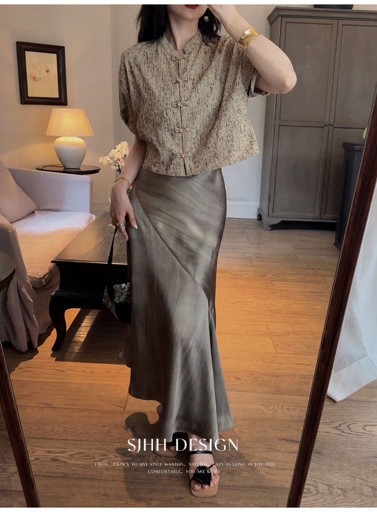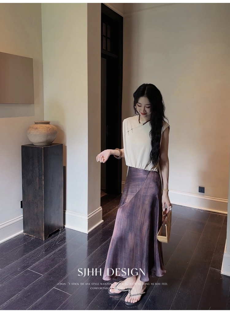 *o-ha-you*【FSJ0114】【畫卷】新中式中國風斜浪半裙
