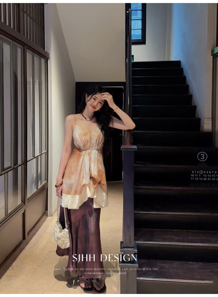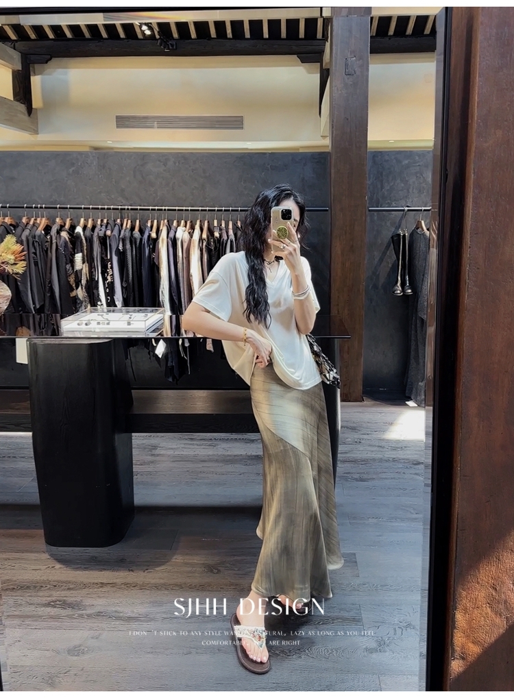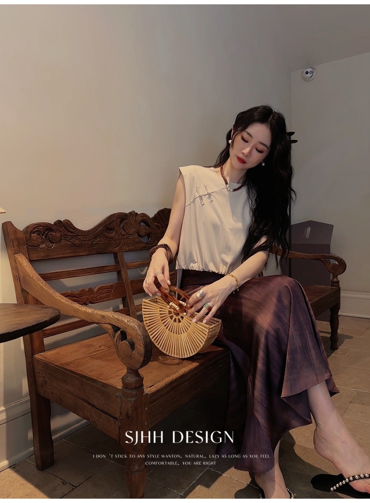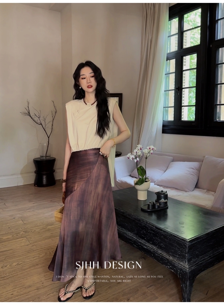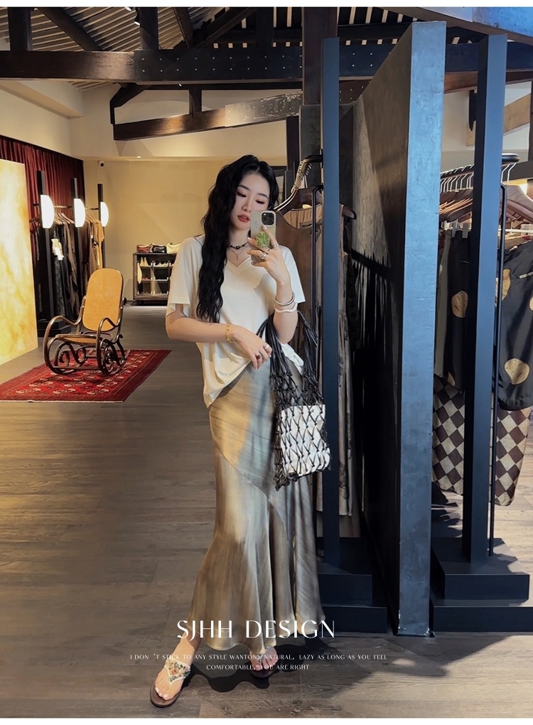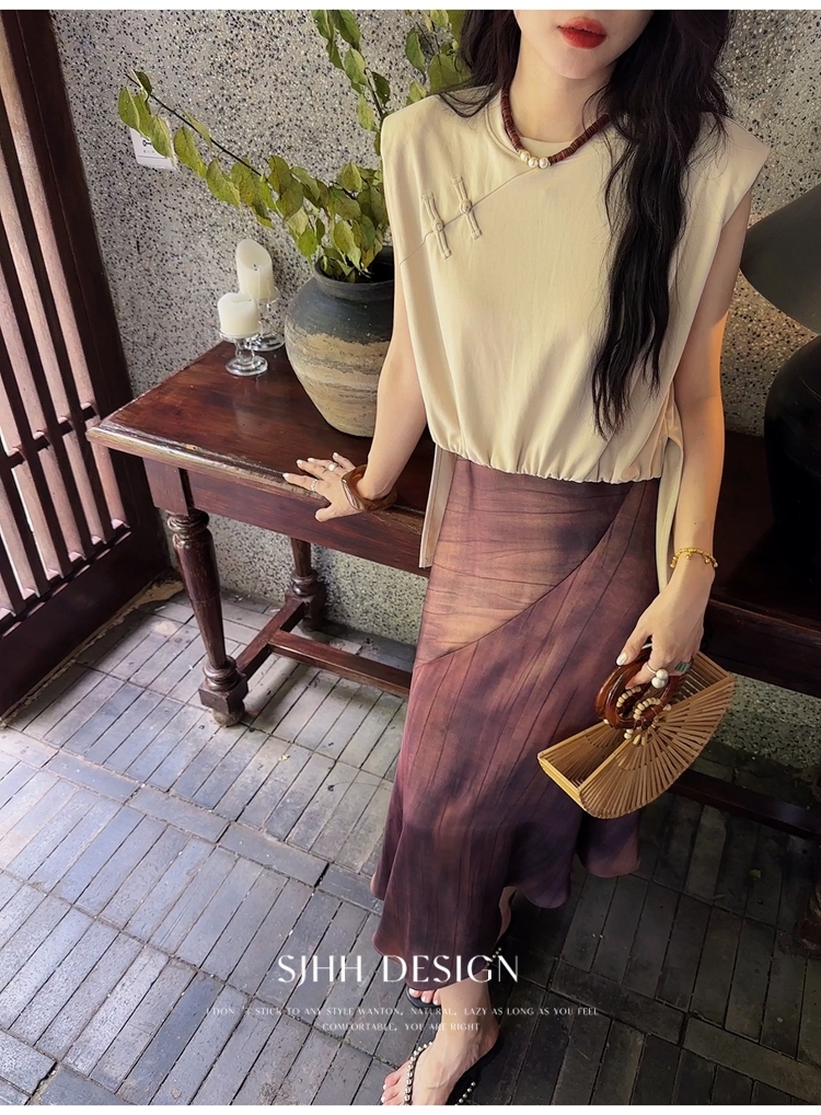*o-ha-you*【FSJ0114】【畫卷】新中式中國風斜浪半裙