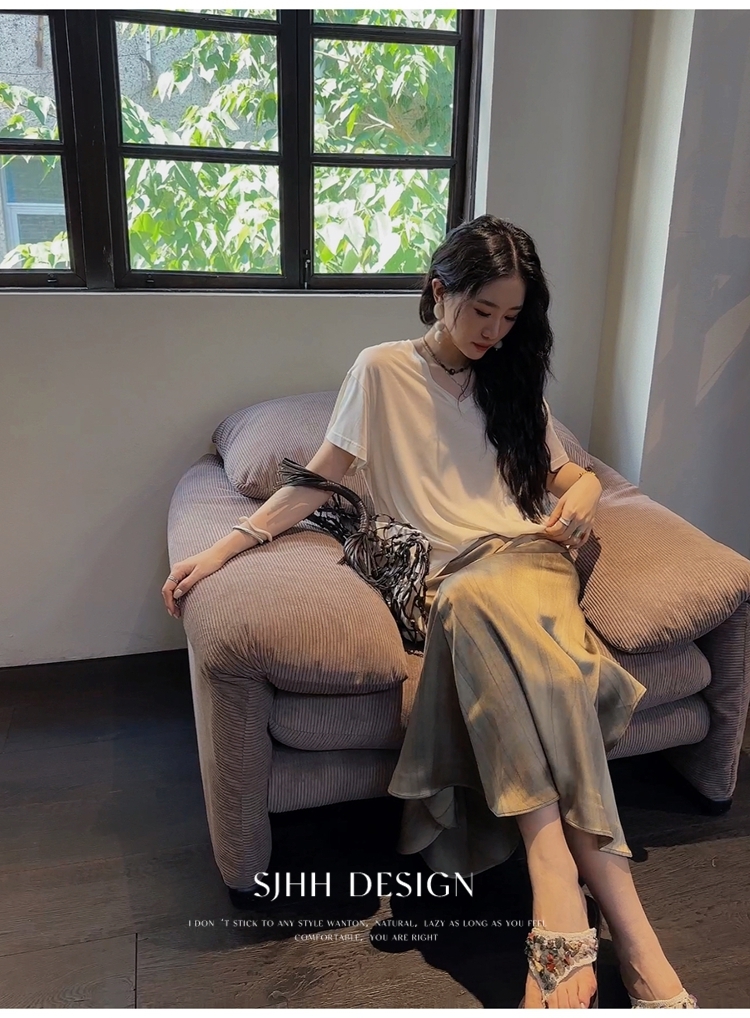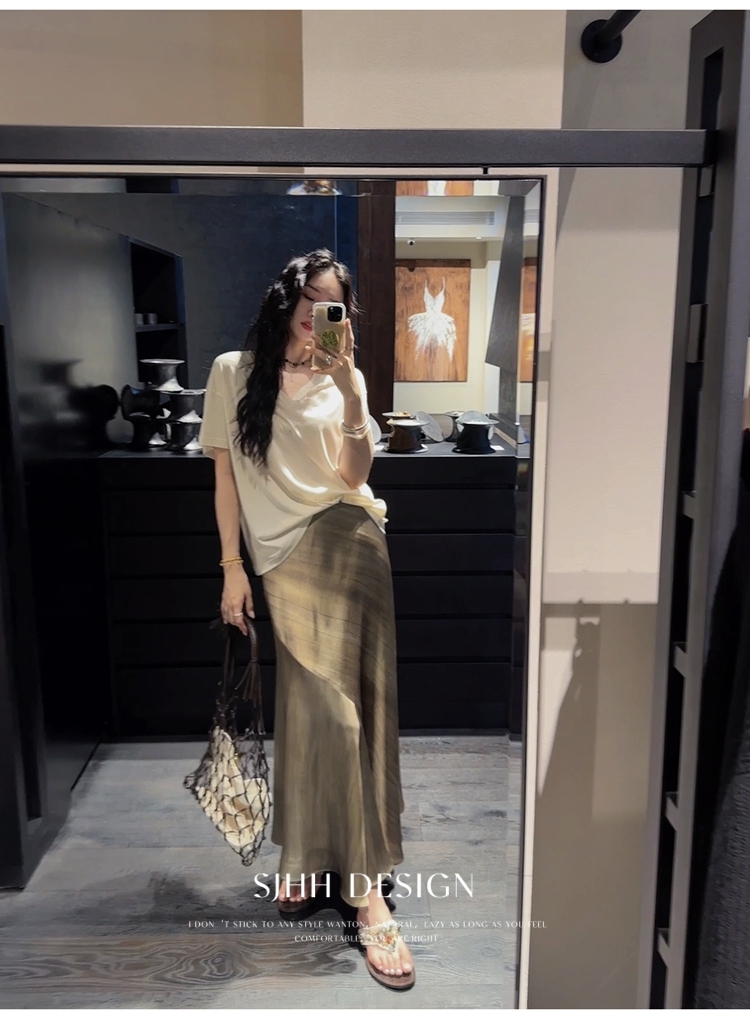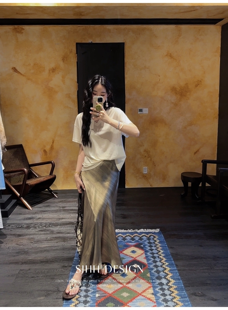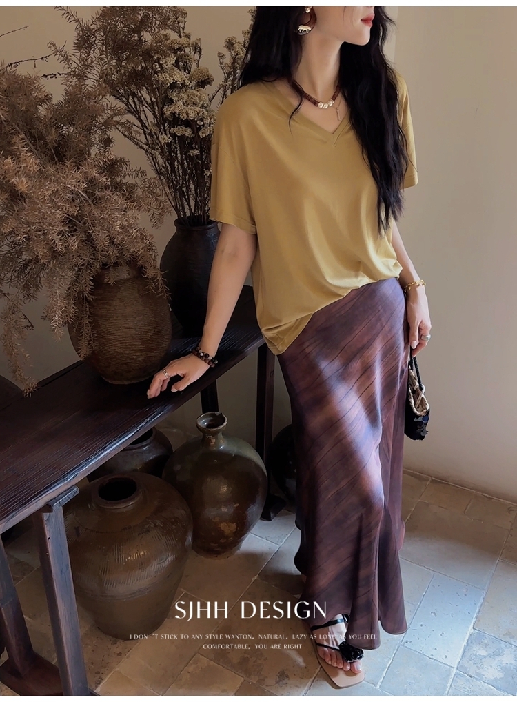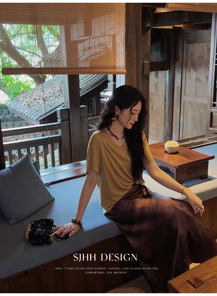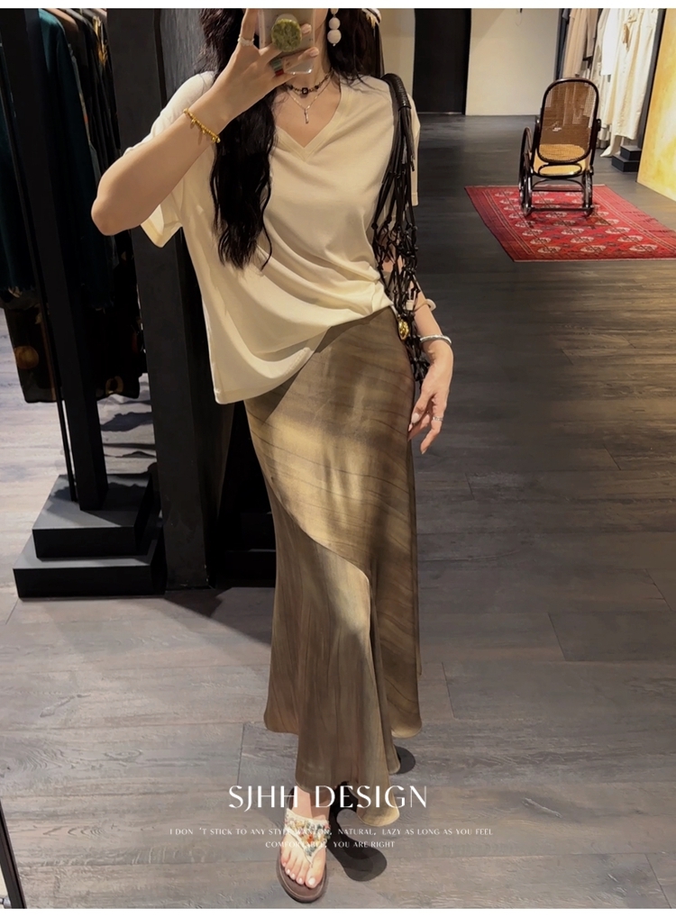 *o-ha-you*【FSJ0114】【畫卷】新中式中國風斜浪半裙