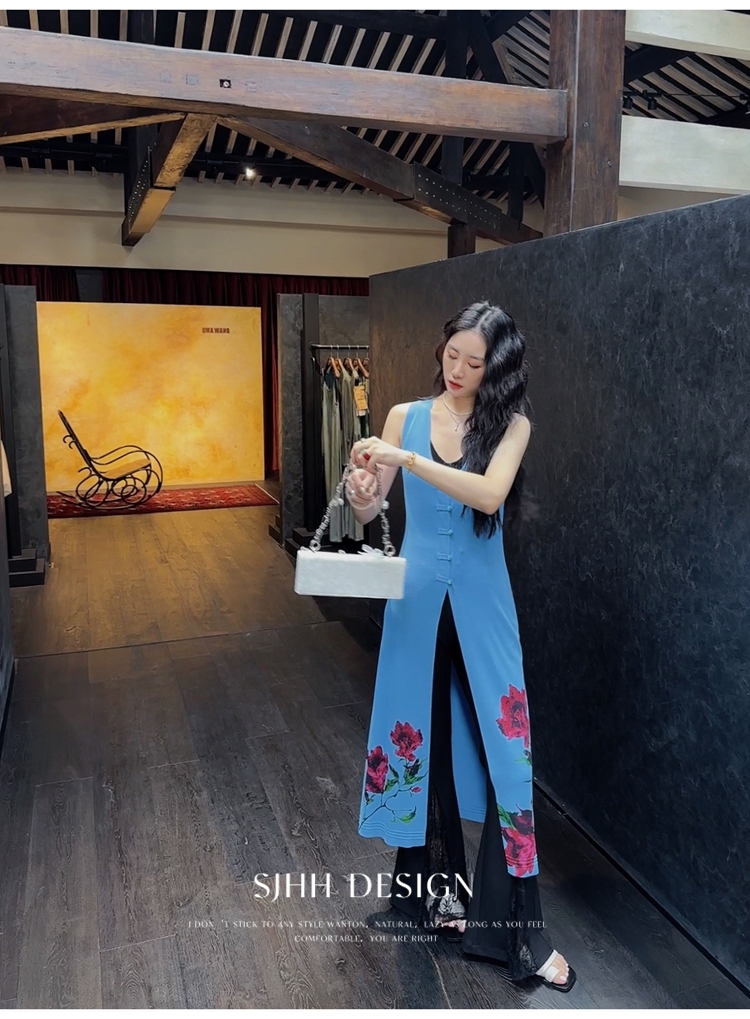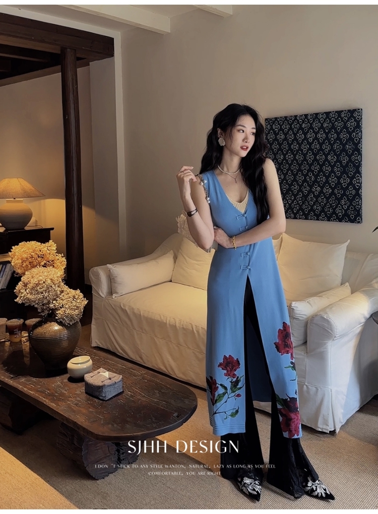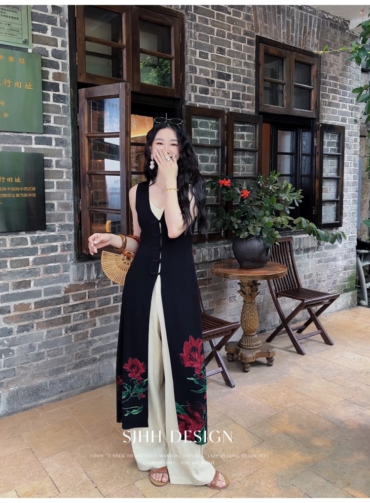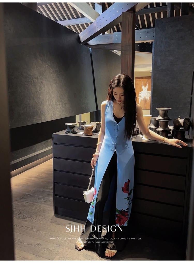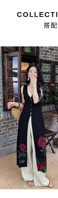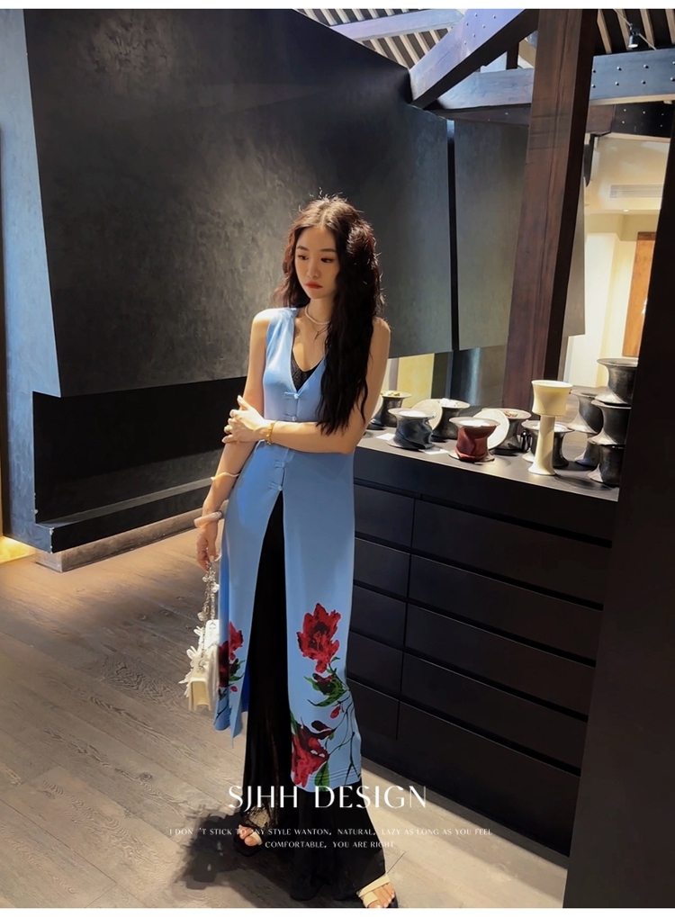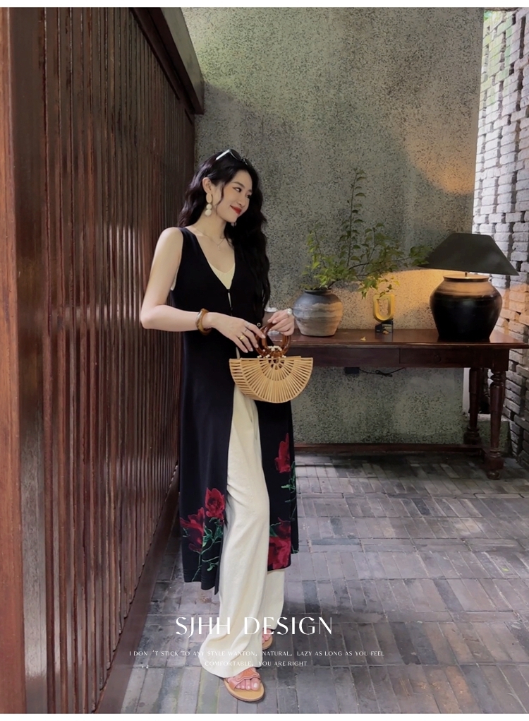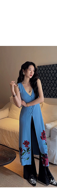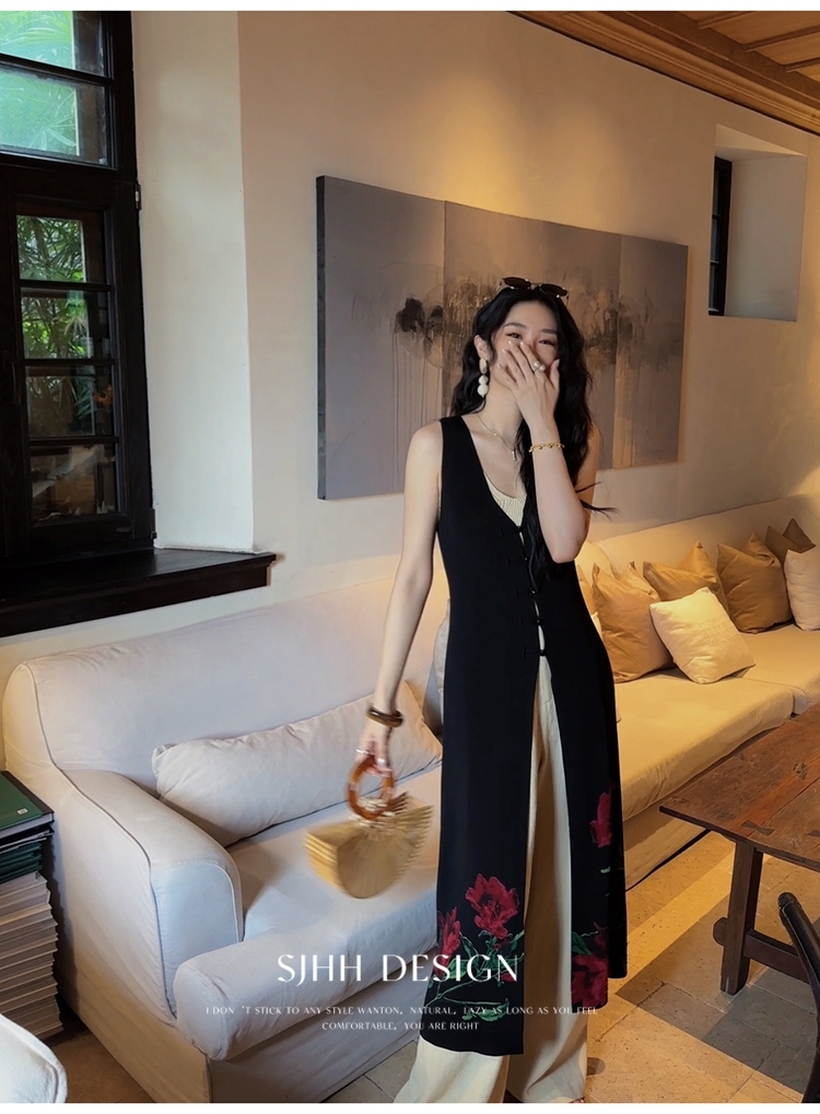 *o-ha-you*【FSJ0115】【玫瑰曲】設計款印花針織長開襟衫