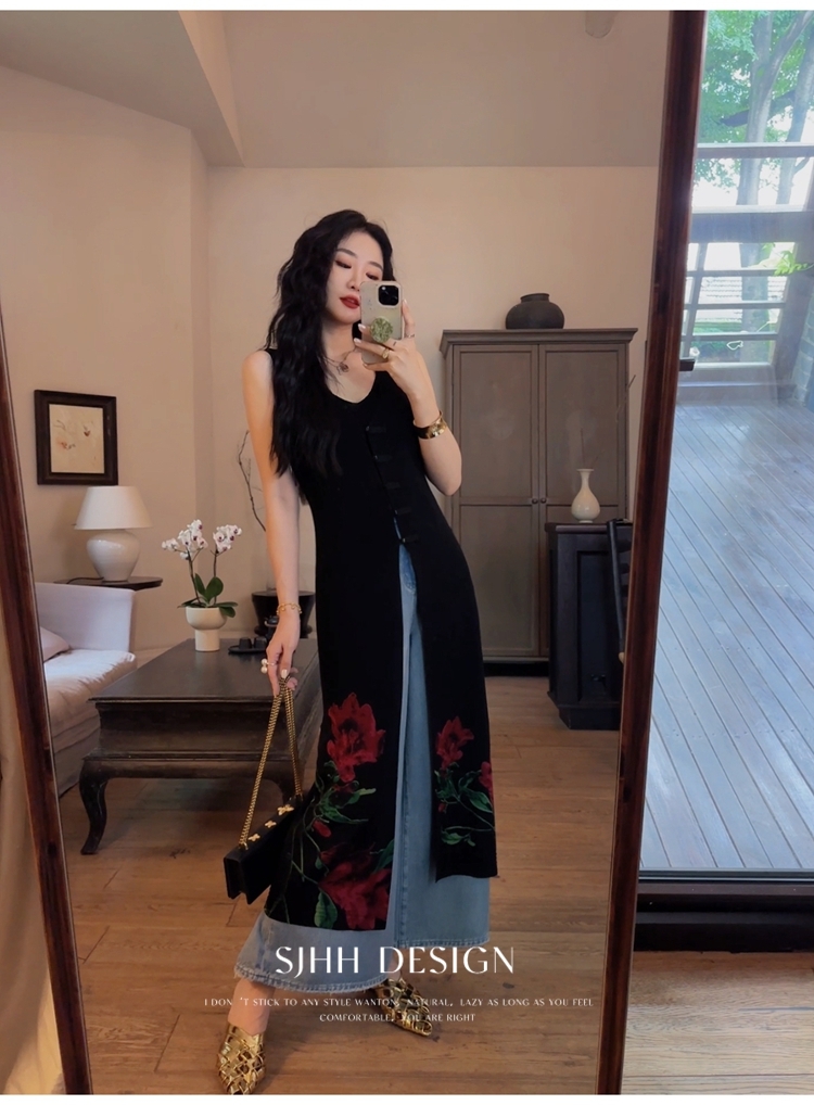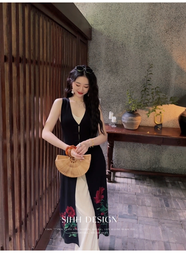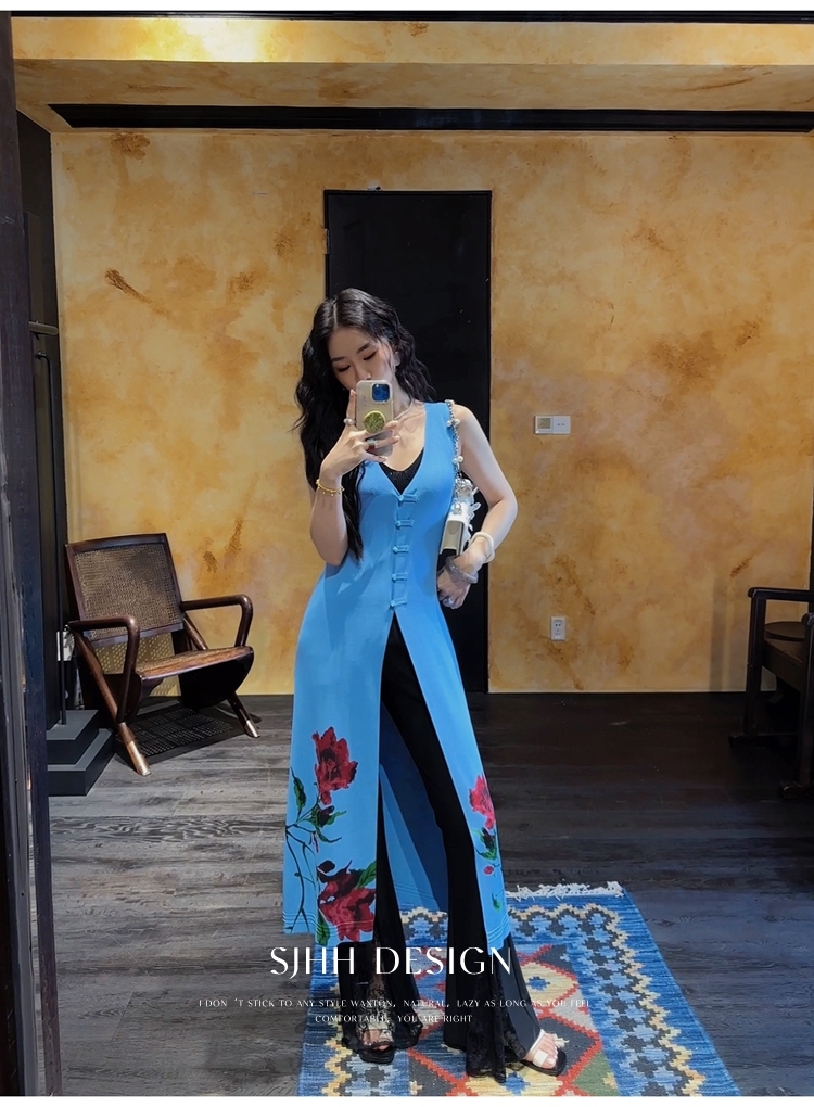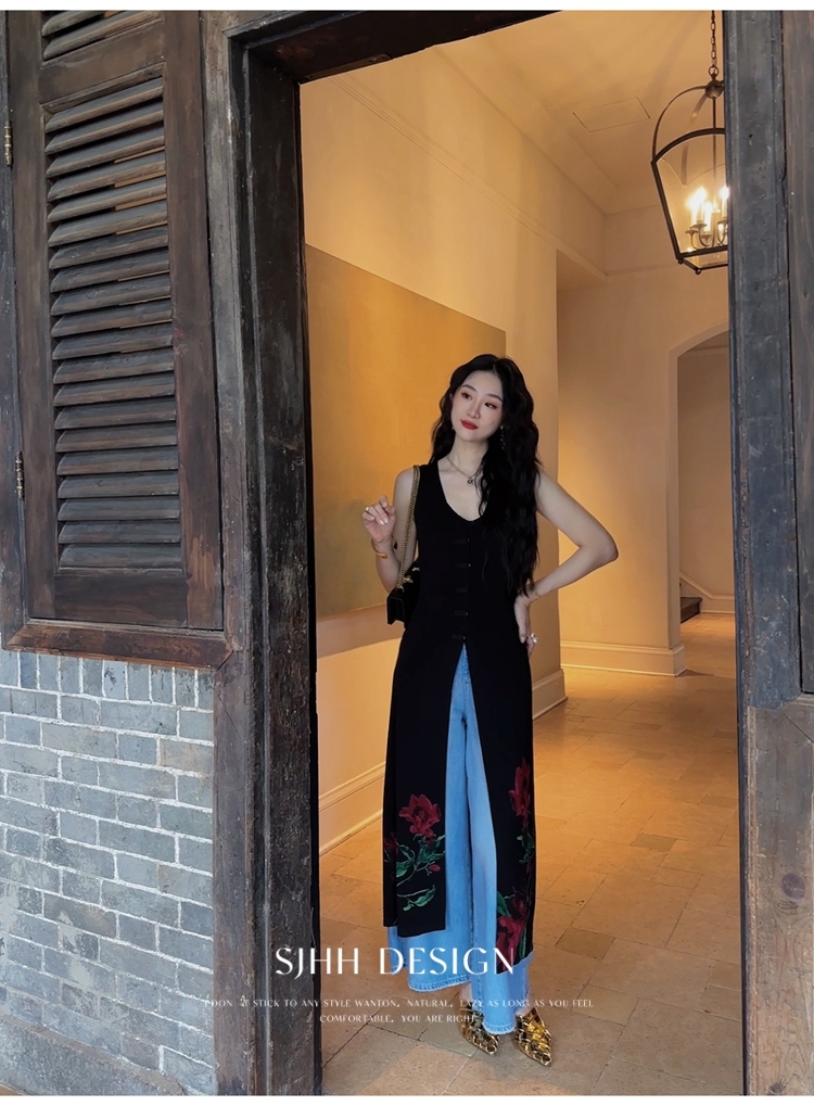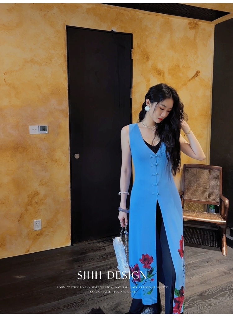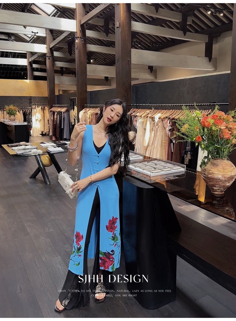*o-ha-you*【FSJ0115】【玫瑰曲】設計款印花針織長開襟衫