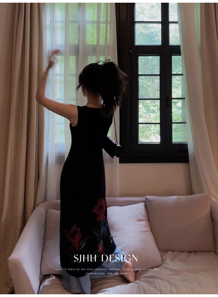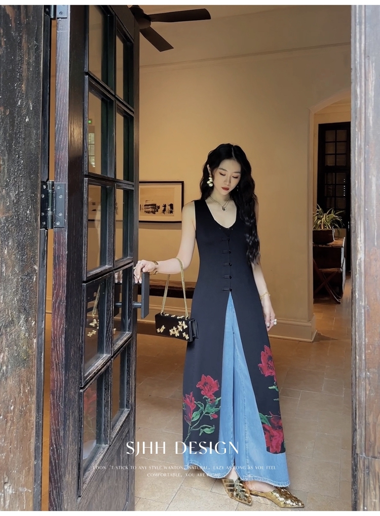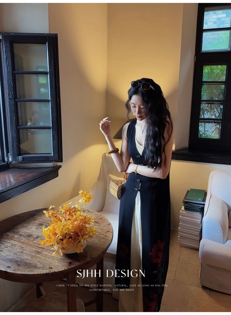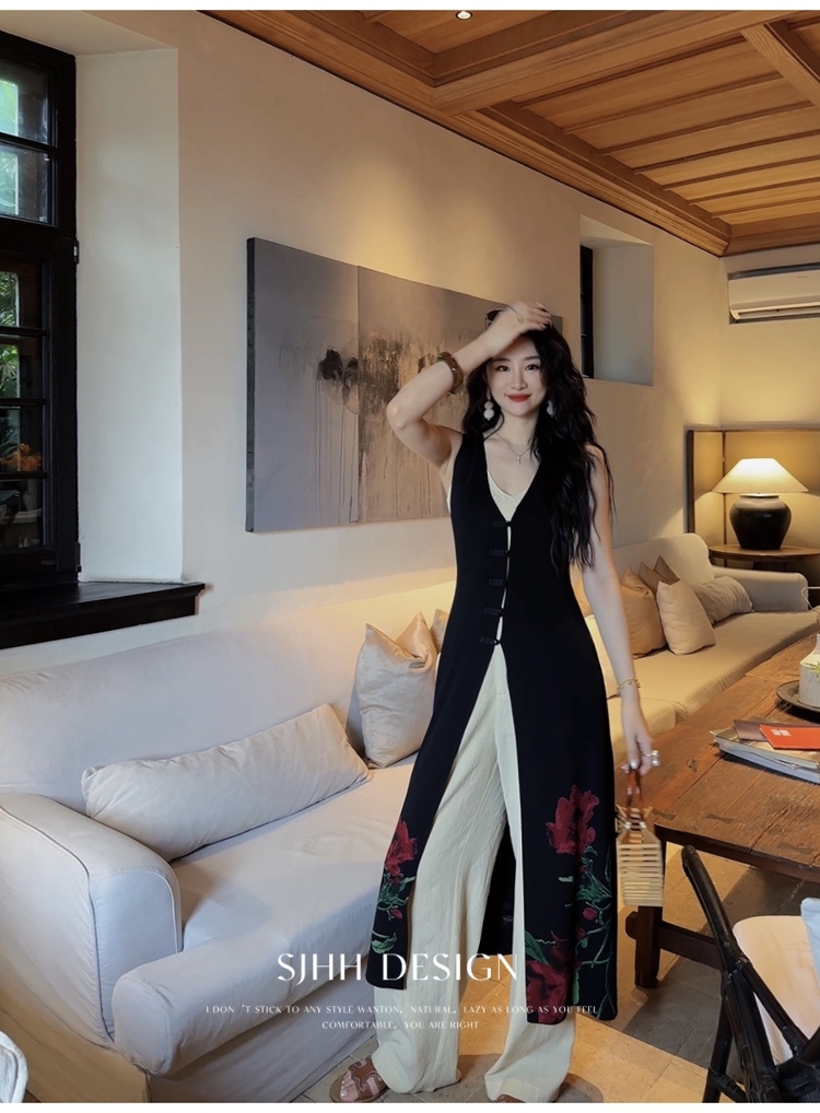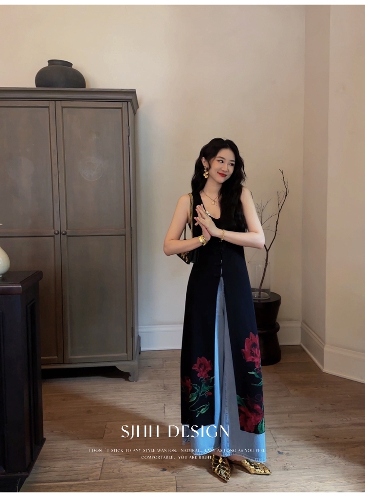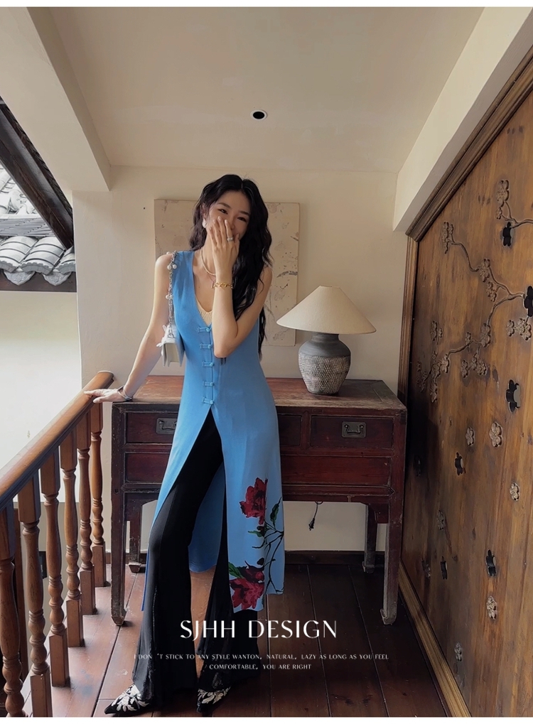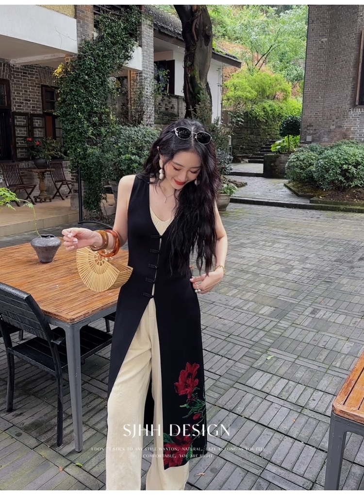 *o-ha-you*【FSJ0115】【玫瑰曲】設計款印花針織長開襟衫