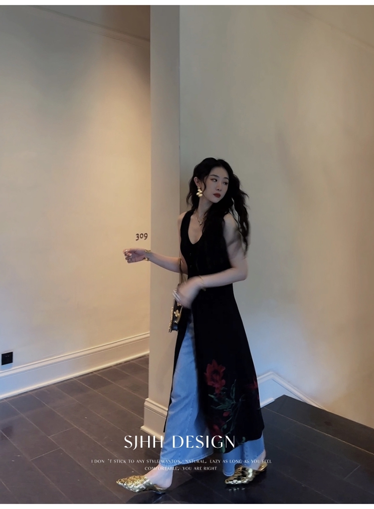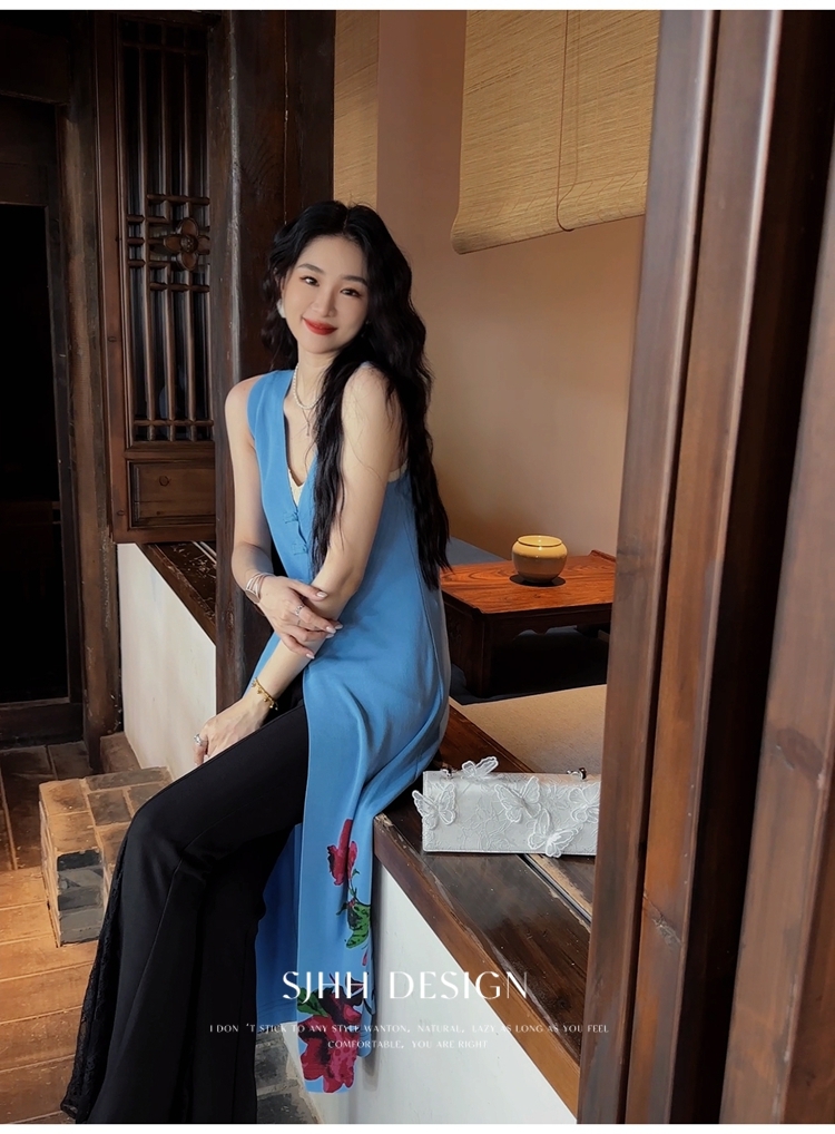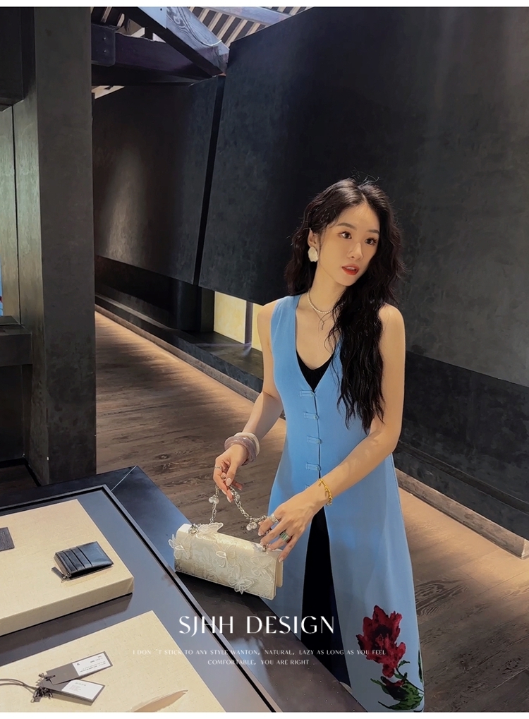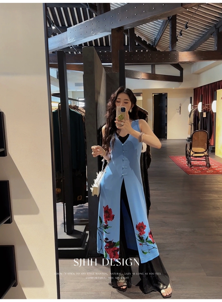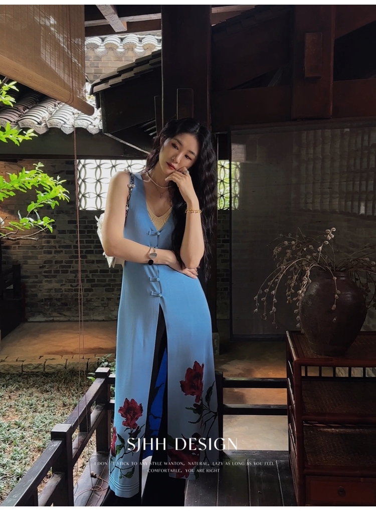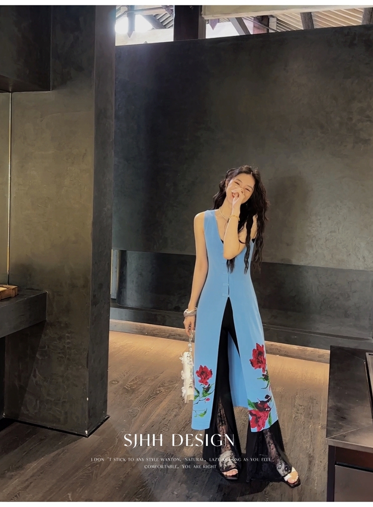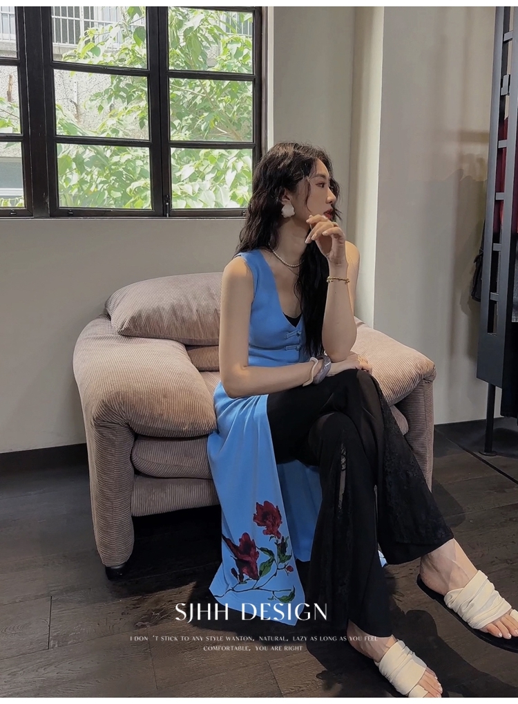 *o-ha-you*【FSJ0115】【玫瑰曲】設計款印花針織長開襟衫